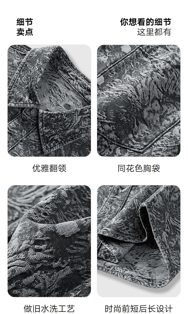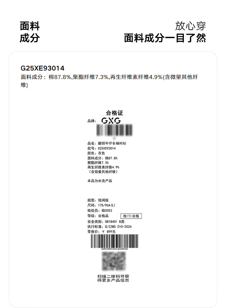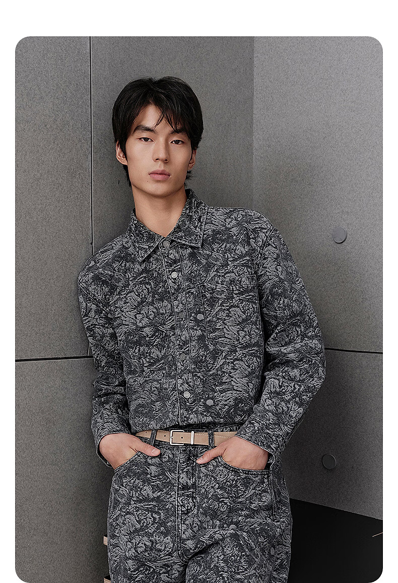 GXG Men's Wear Same Style Full Print Denim Shirt Men's Long Sleeve Jacket 25th Autumn New Product G25XE93014 Gray XL