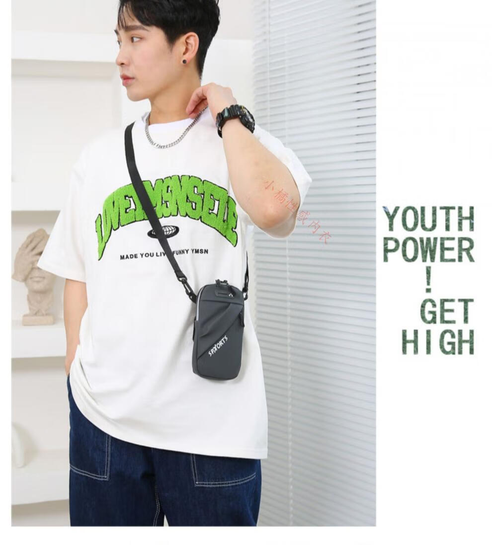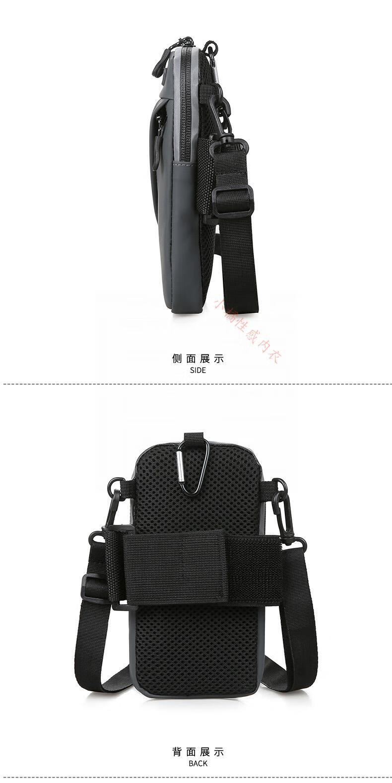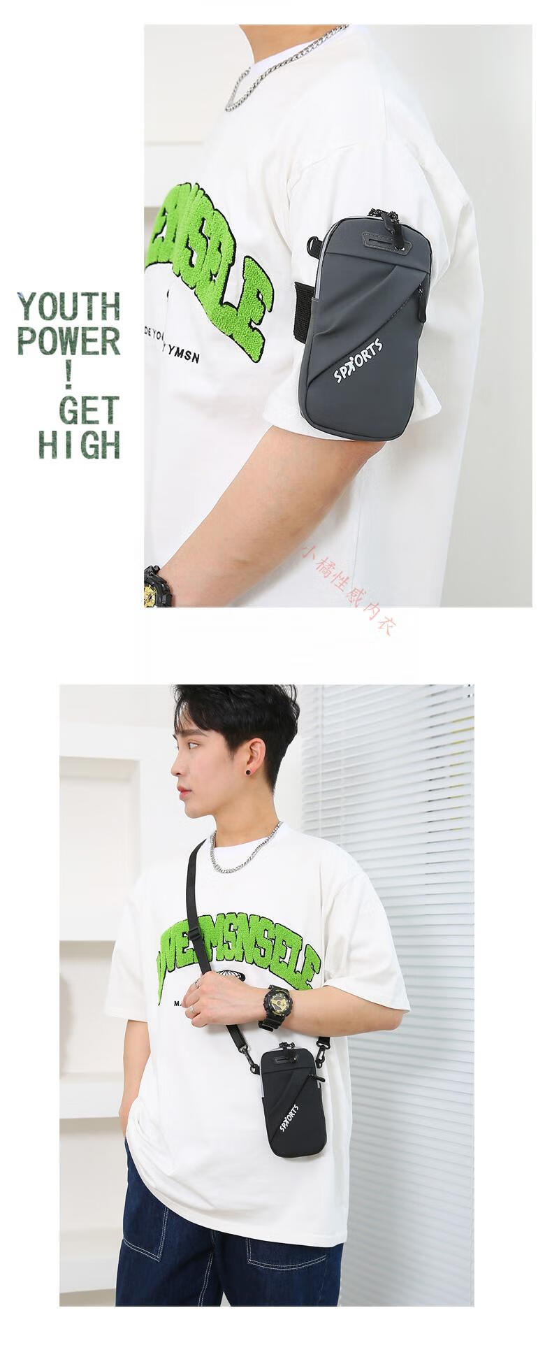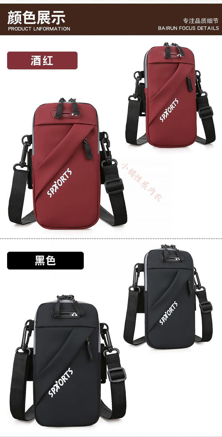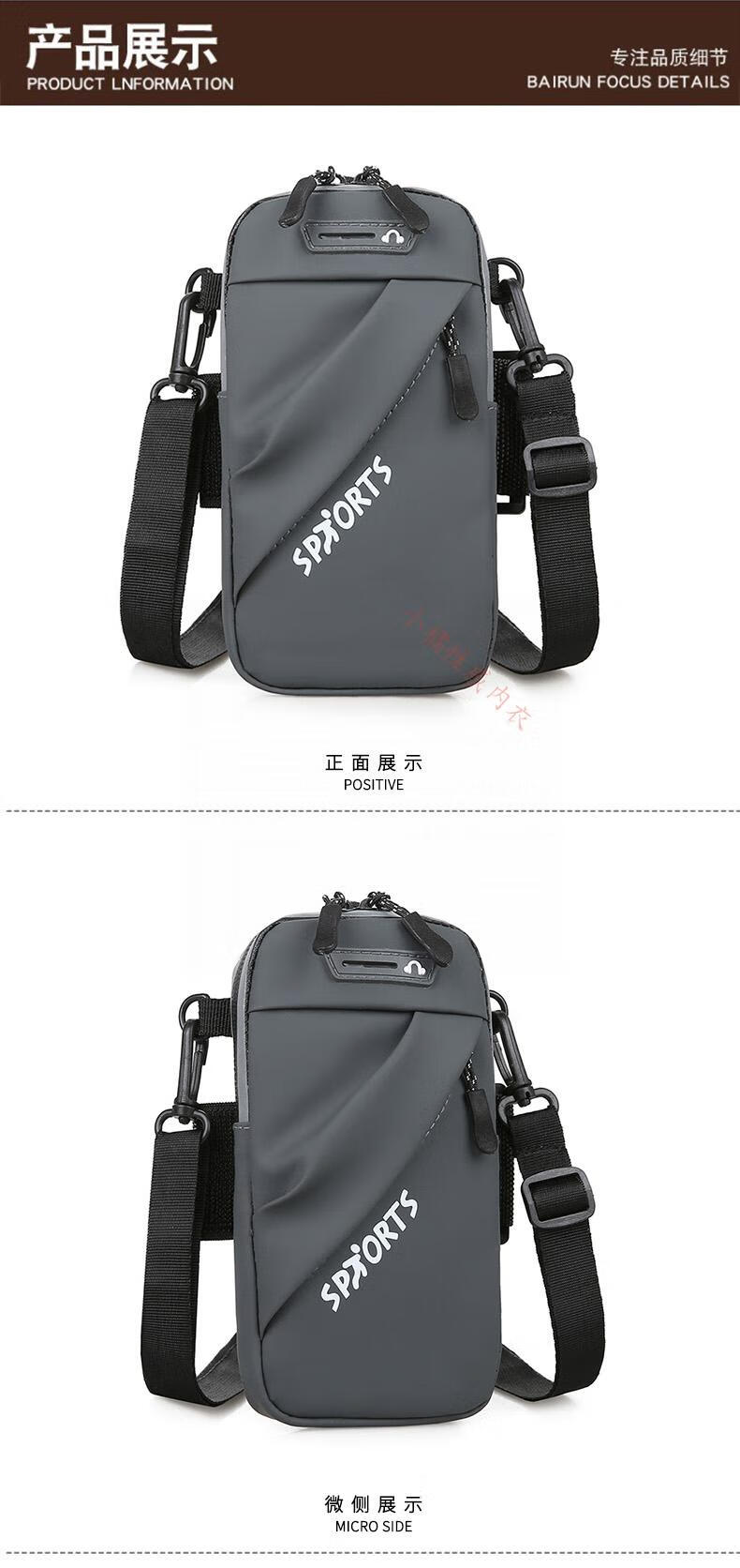 Japanese fashion mobile phone bag running sports arm bag vertical mini hanging belt double zipper shoulder bag casual oblique black