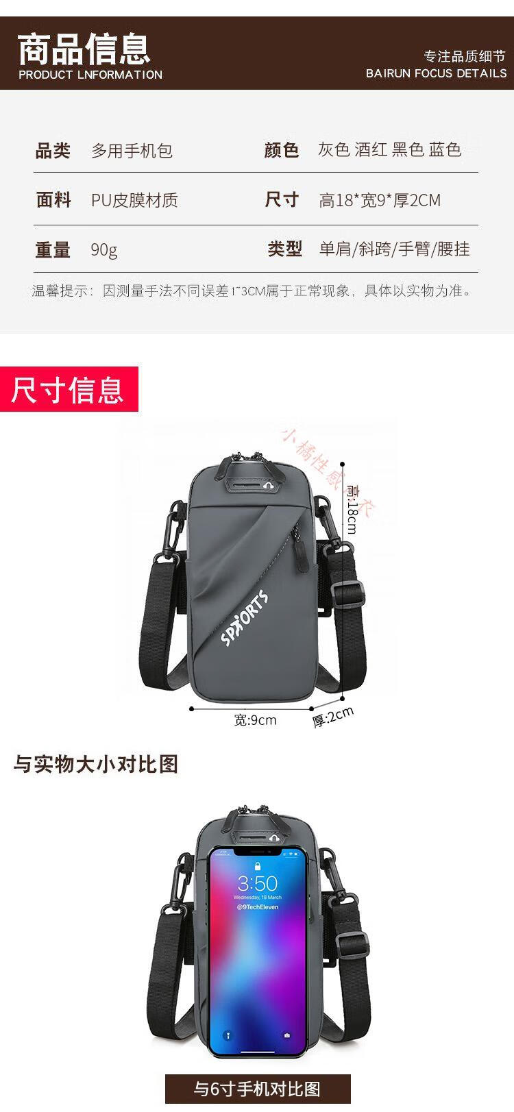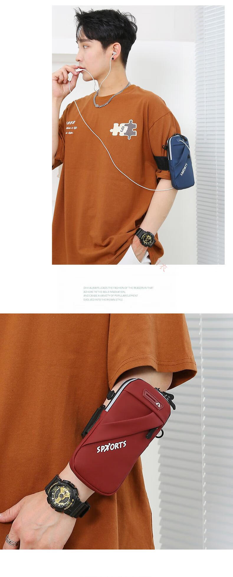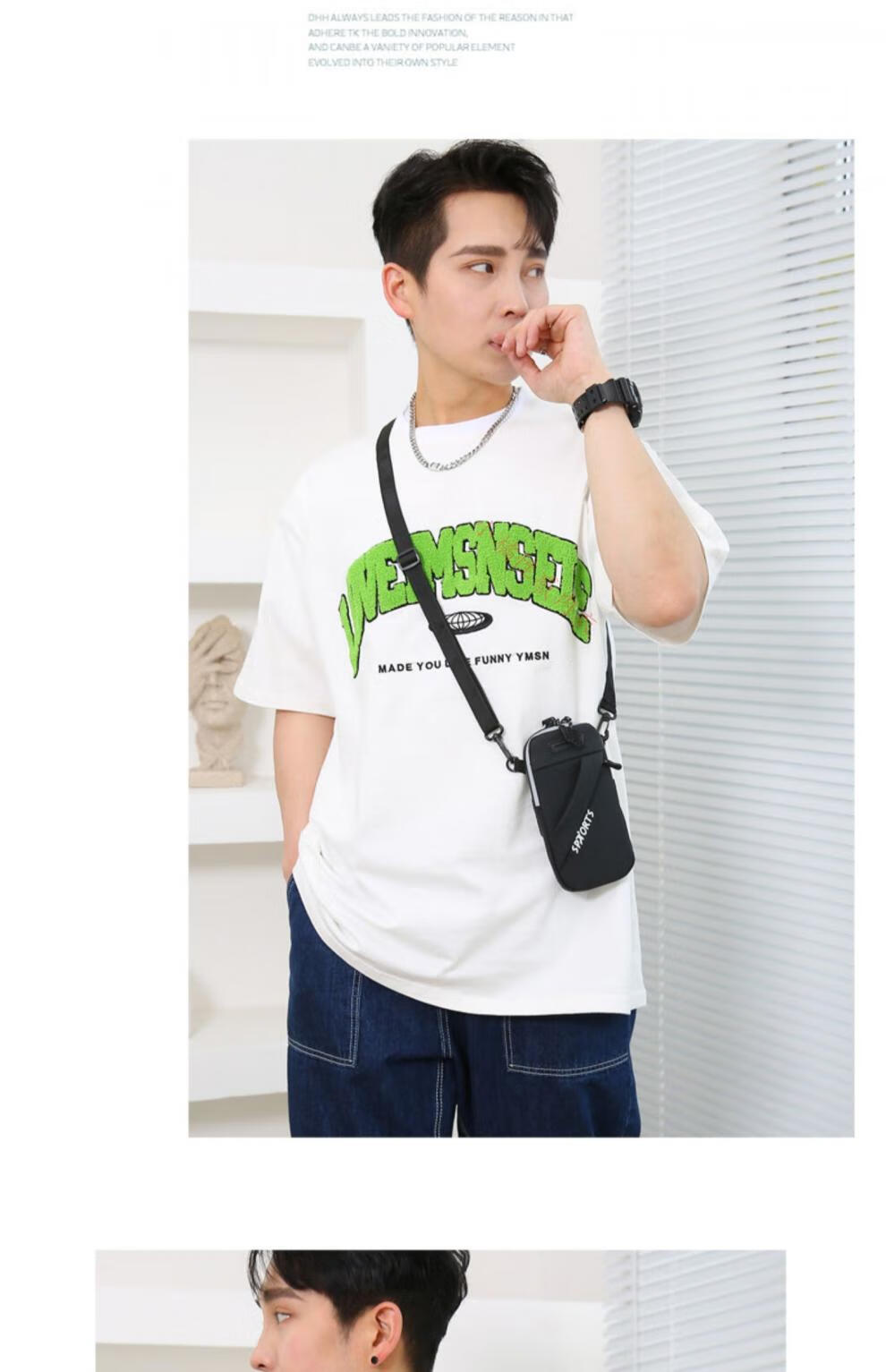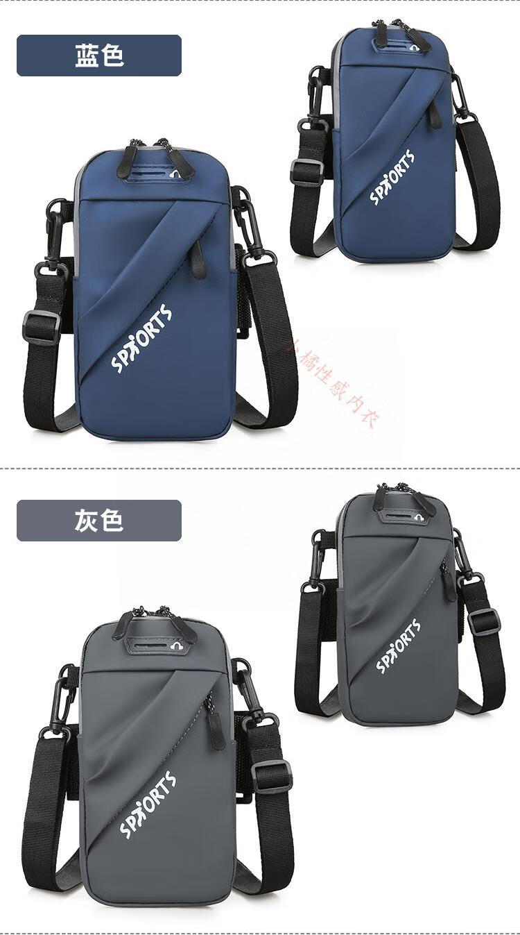 Japanese fashion mobile phone bag running sports arm bag vertical mini hanging belt double zipper shoulder bag casual oblique black