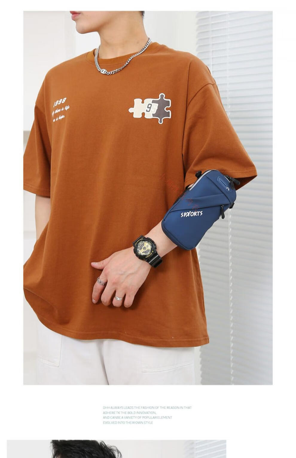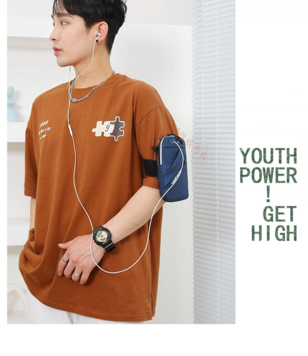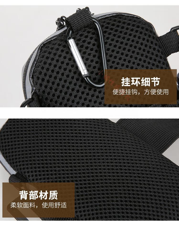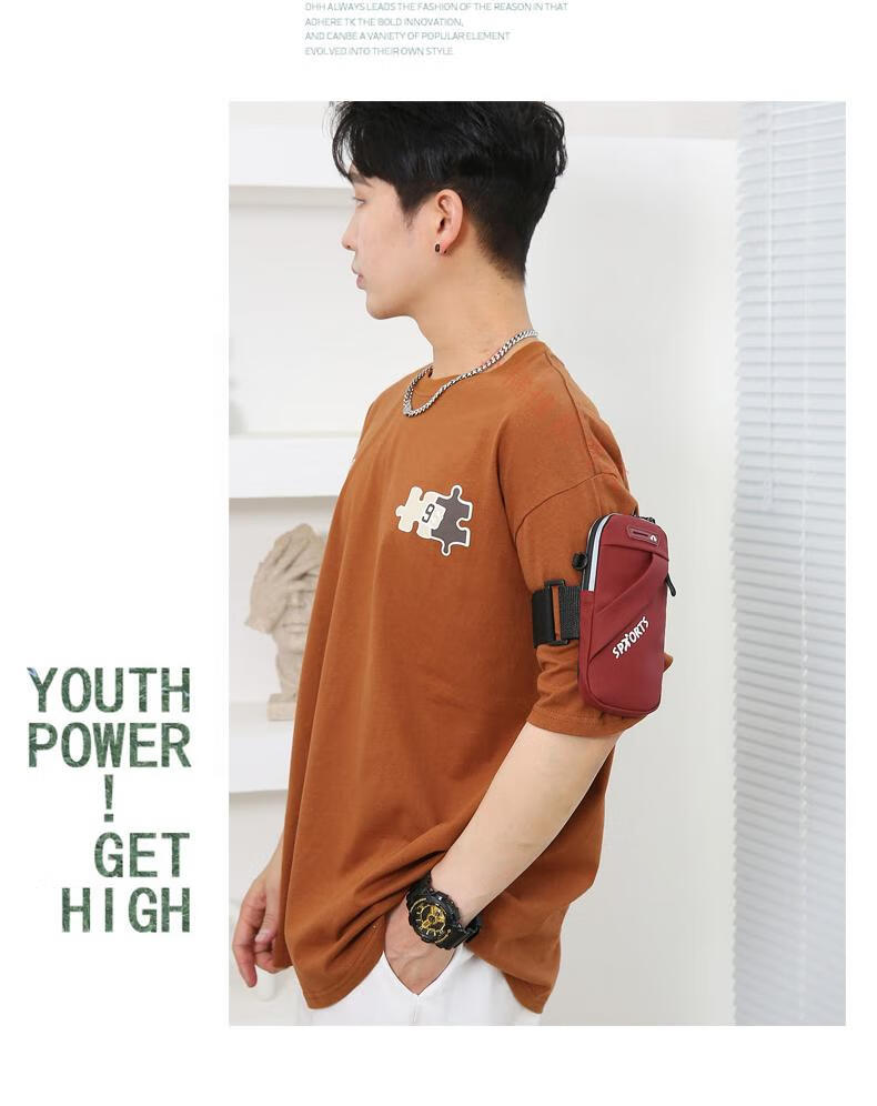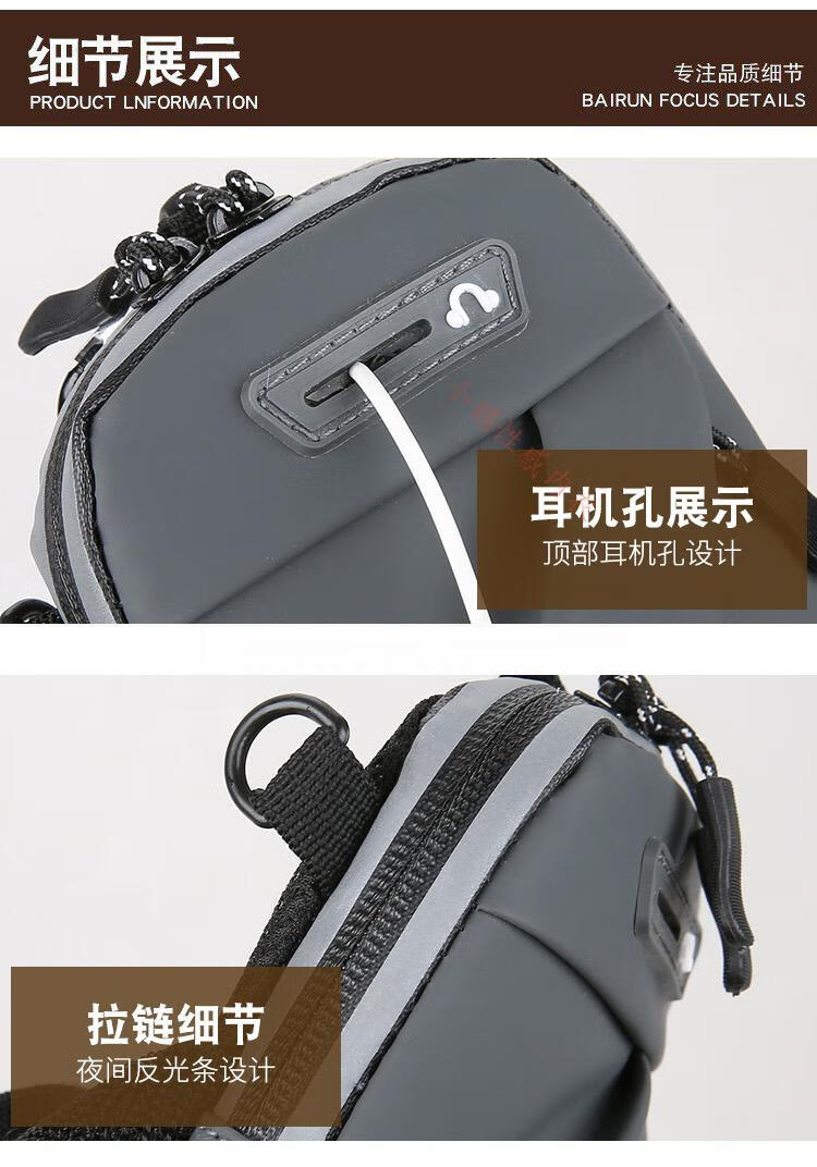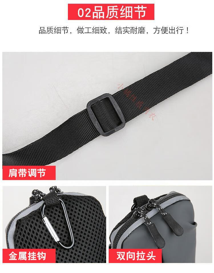 Japanese fashion mobile phone bag running sports arm bag vertical mini hanging belt double zipper shoulder bag casual oblique black