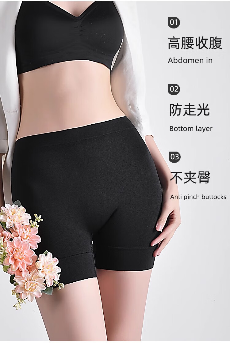 JIOESC Ice Silk Seamless Safety Pants Women's Summer and Autumn Thin Section 2025 New Leggings Wedding Dress Anti-Leaking Non-curling Safety Pants Black Thin Section One Size 80-130Jin Jin is equal to 0.5 kg