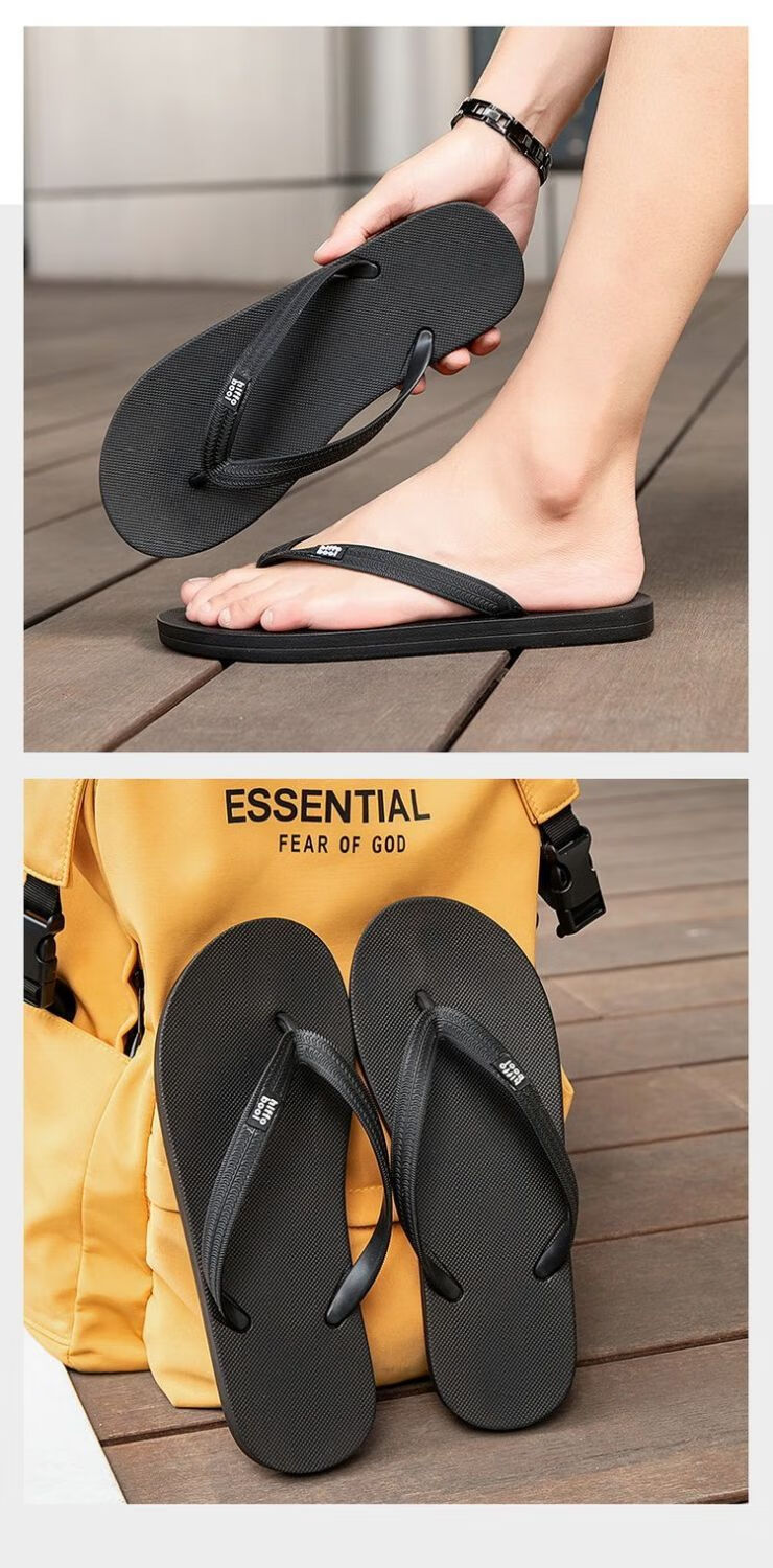 2025 new style flip-flops for men in summer, non-slip and wear-resistant, casual outdoor rubber flip-flops for men, black 41/42