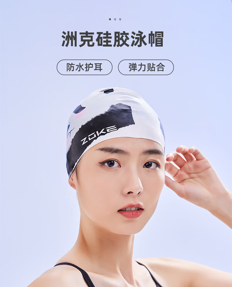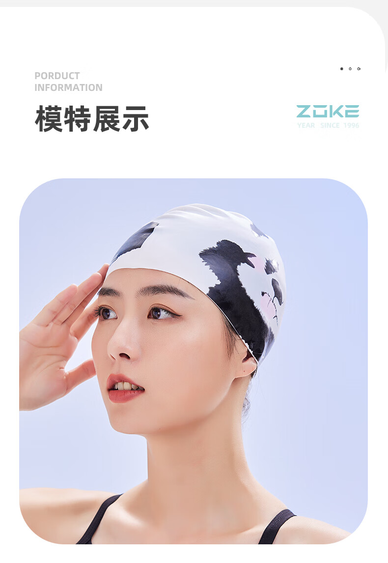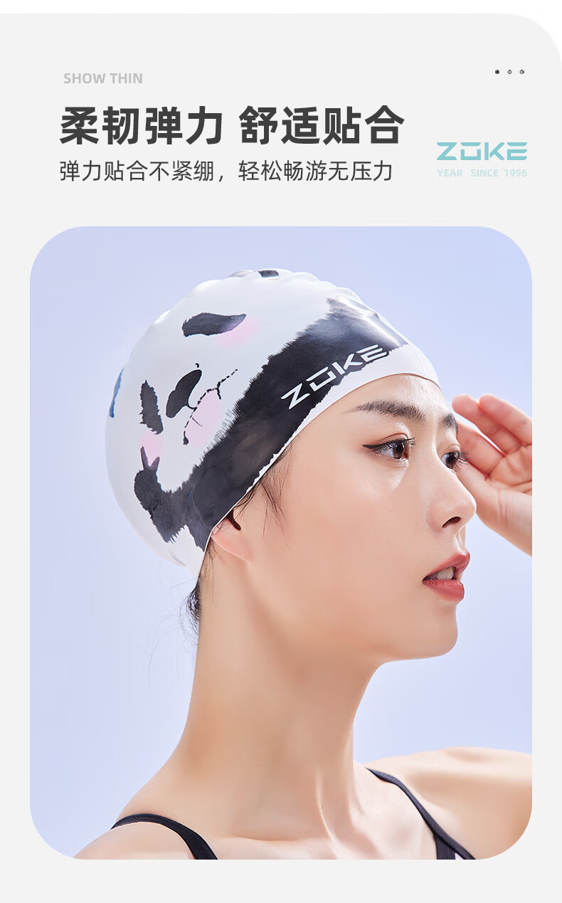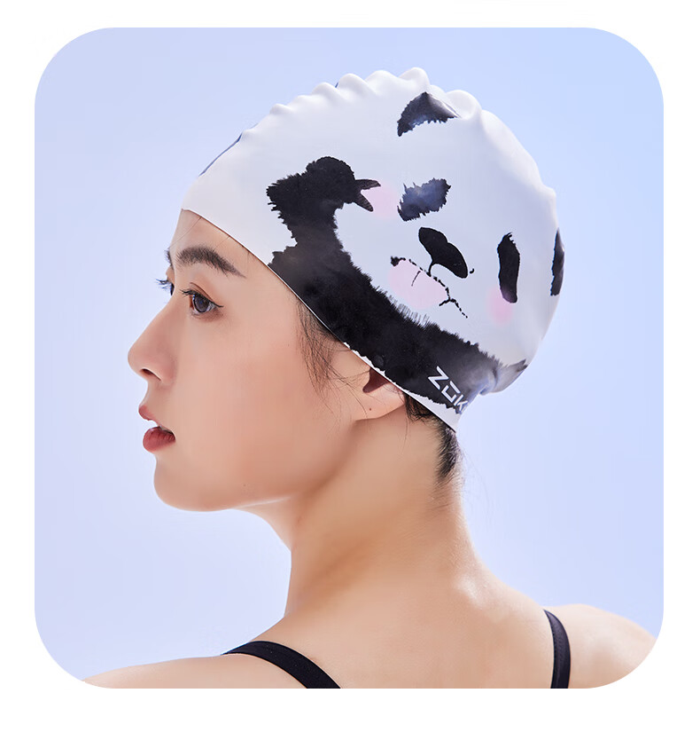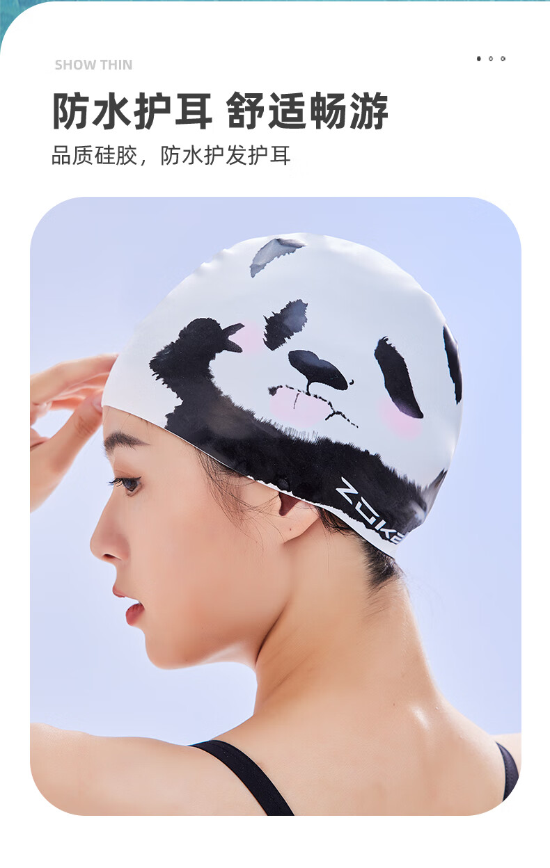 ZOKE силиконовая шапочка для плавания в стиле панды, водонепроницаемая защита для ухода за волосами для взрослых, защита ушей, женские длинные волосы не душат голову, комплект шапочки для плавания Zoke, черно-белая панда + очки для плавания