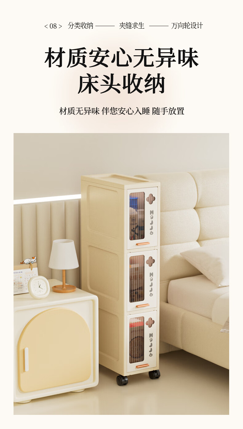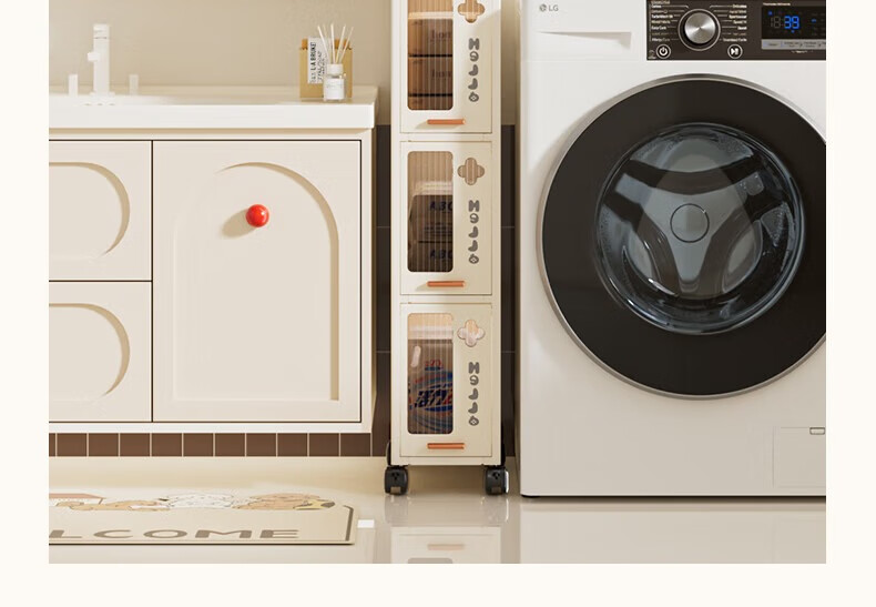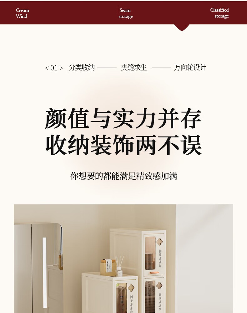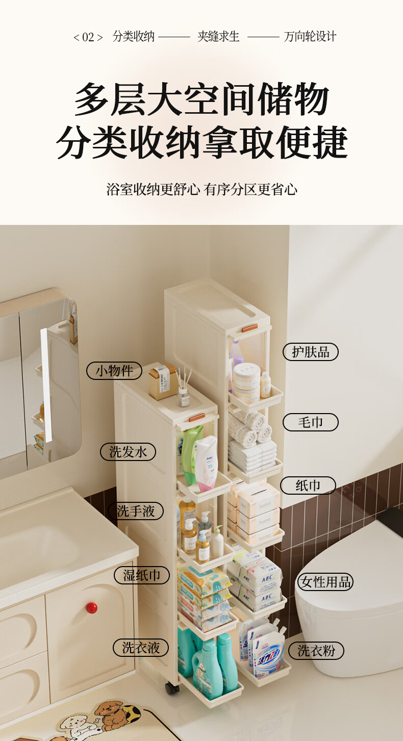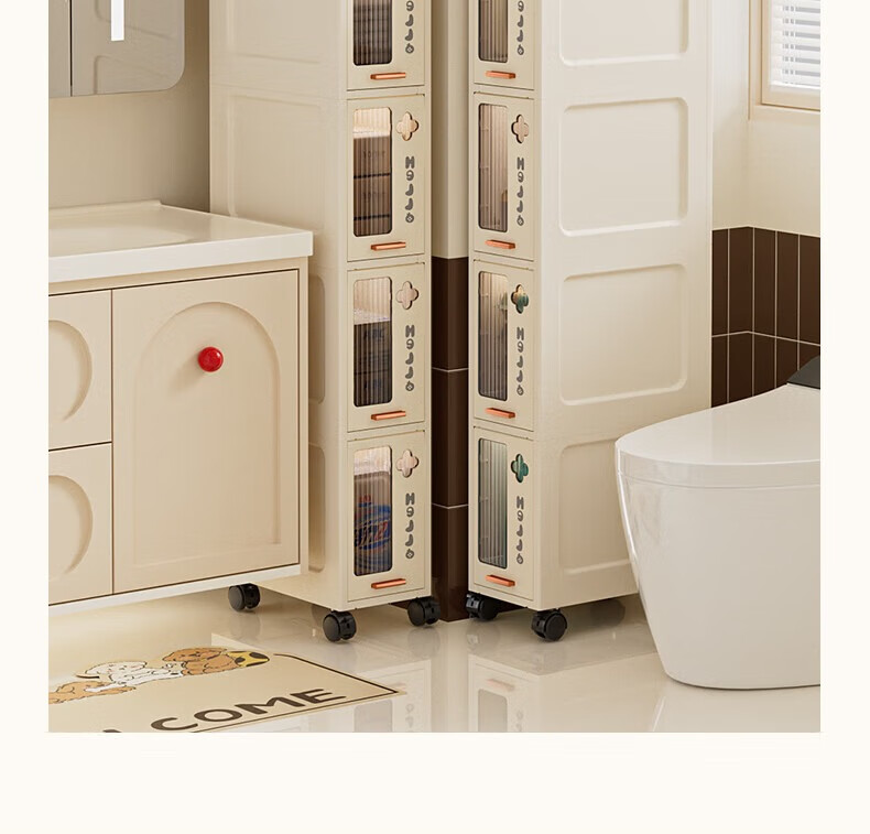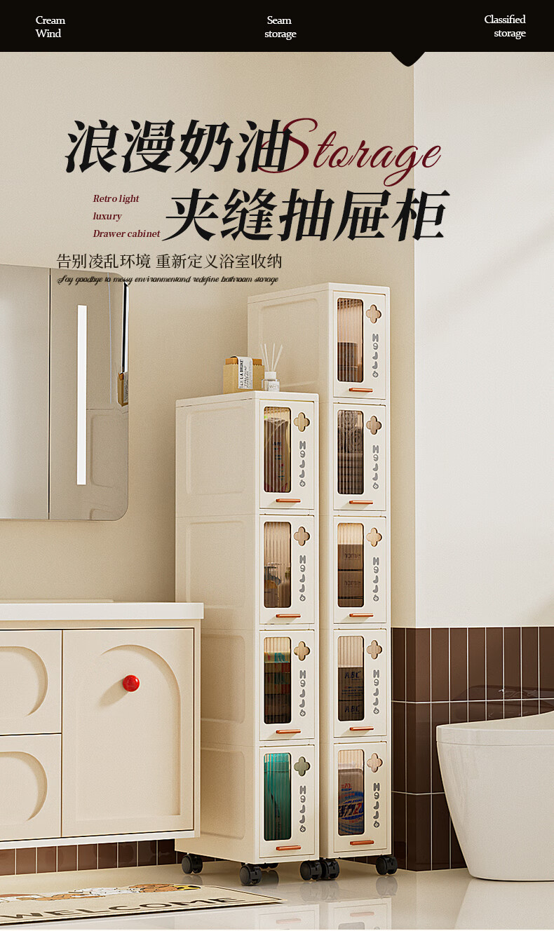 JD Logistics Bathroom Seam Cabinet Kitchen Shelf Drawer Storage Cabinet Bedroom Narrow Storage Cabinet 15CM Cream 5-Layer