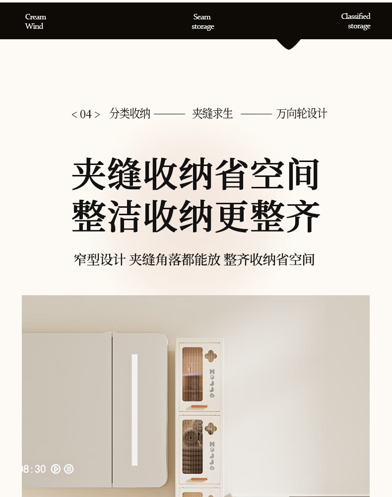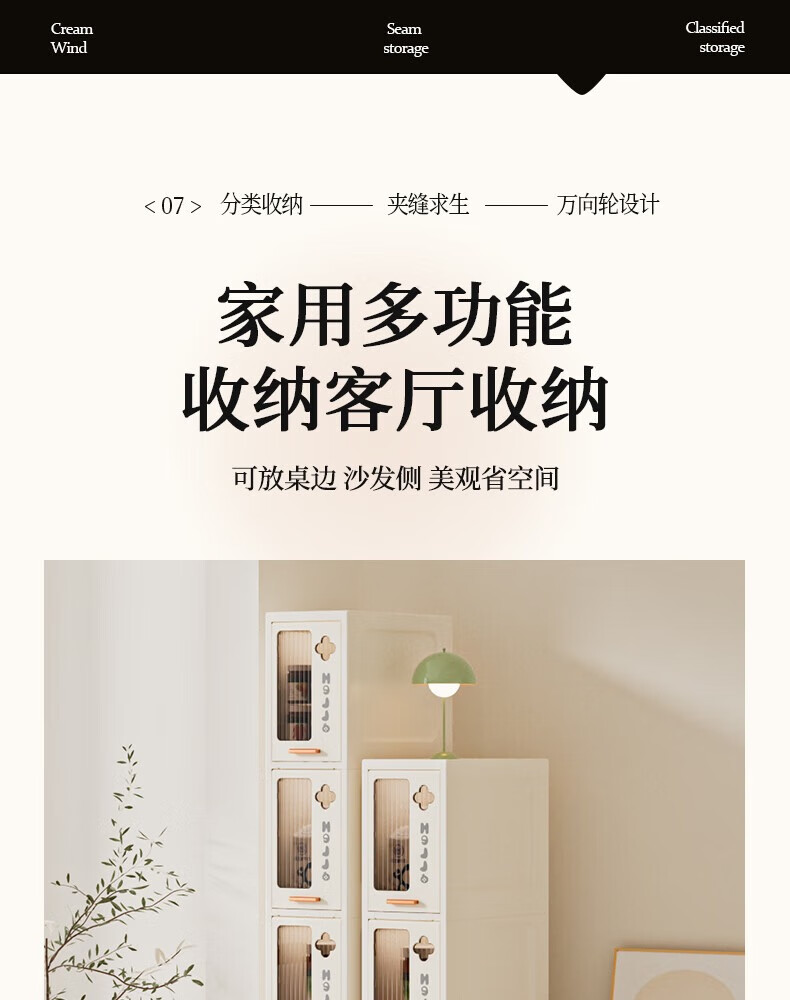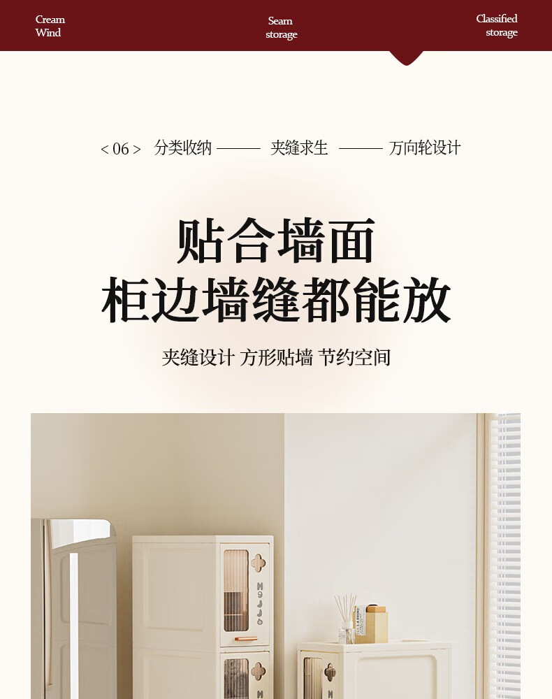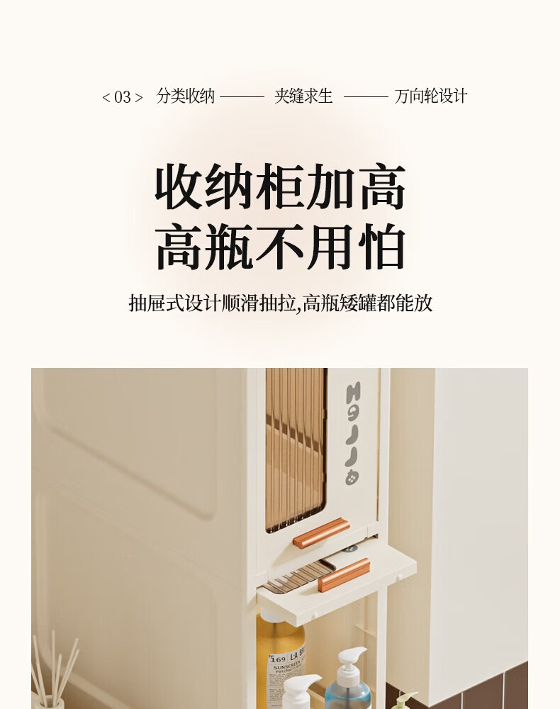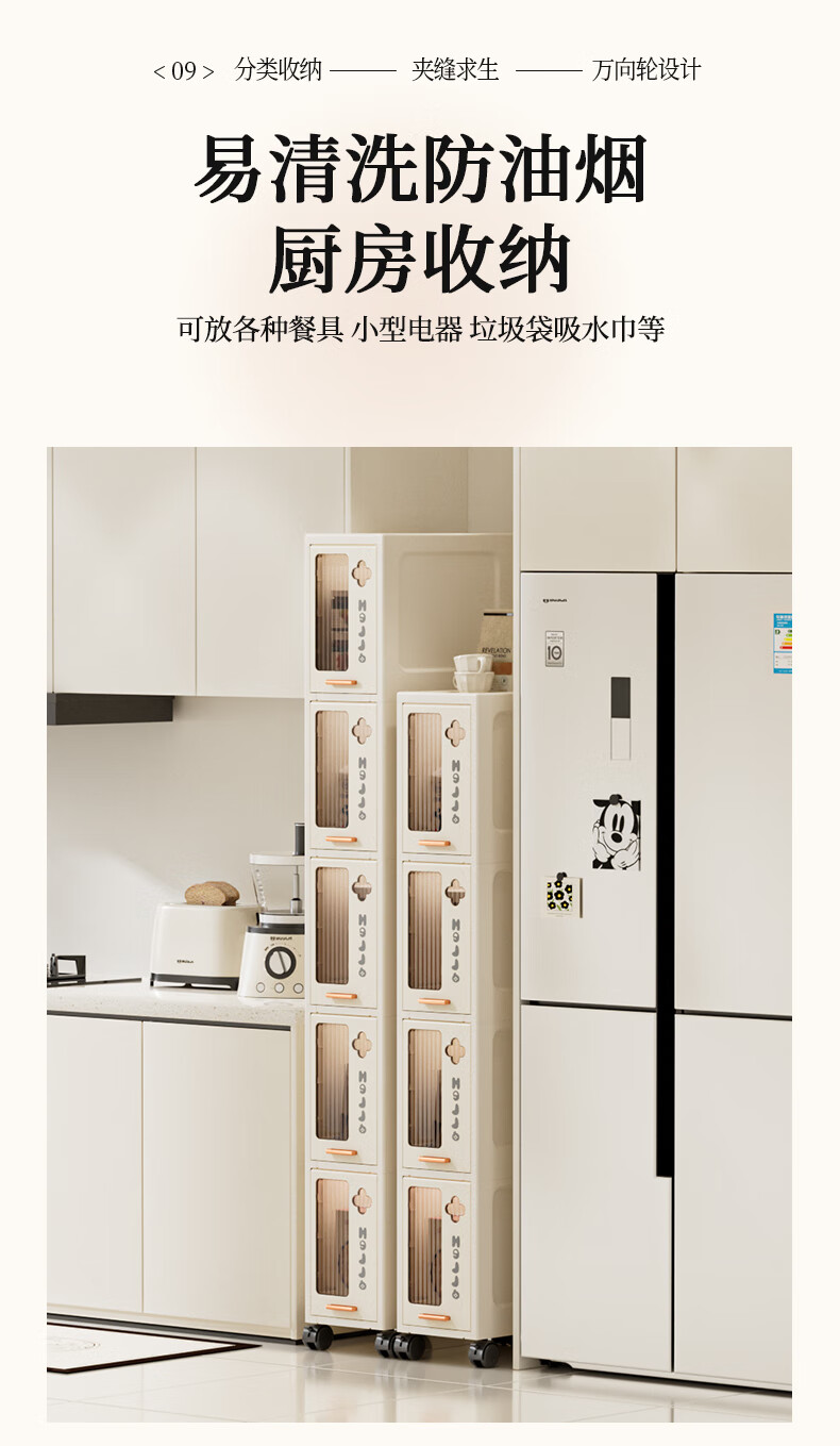 JD Logistics Bathroom Seam Cabinet Kitchen Shelf Drawer Storage Cabinet Bedroom Narrow Storage Cabinet 15CM Cream 5-Layer
