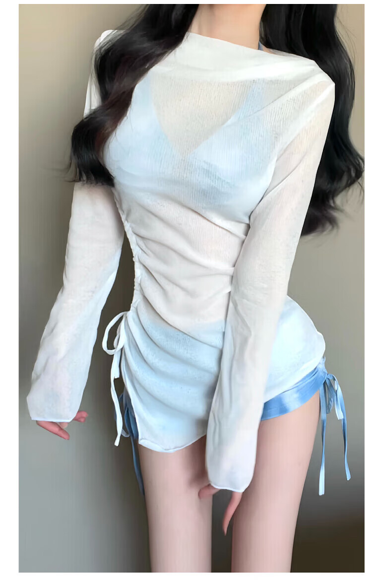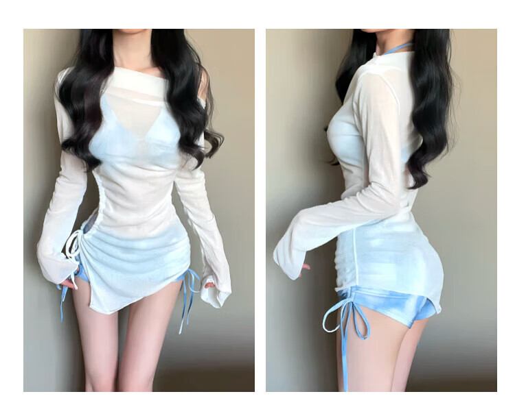 Kaximu swimsuit women's split three-piece set long-sleeved sweet girl summer cover-up boxer briefs bikini hot spring swimsuit swimsuit three-piece set one size fits all recommended 90-125 Jin Jin equals 0.5 kg
