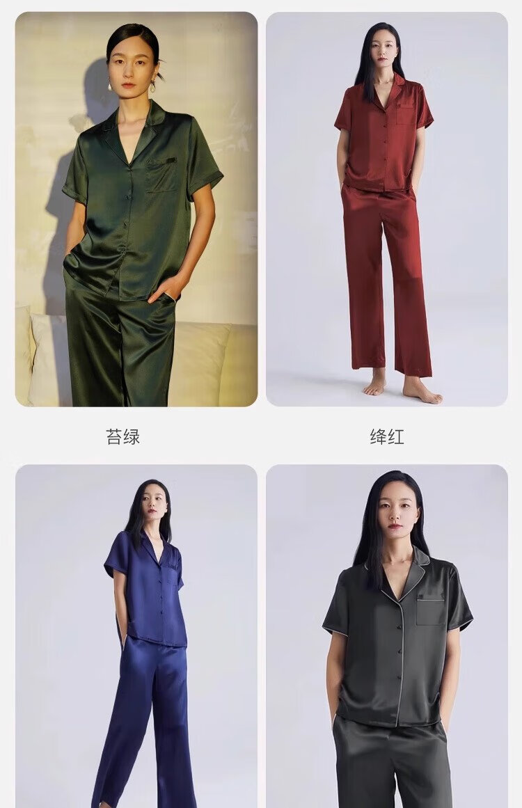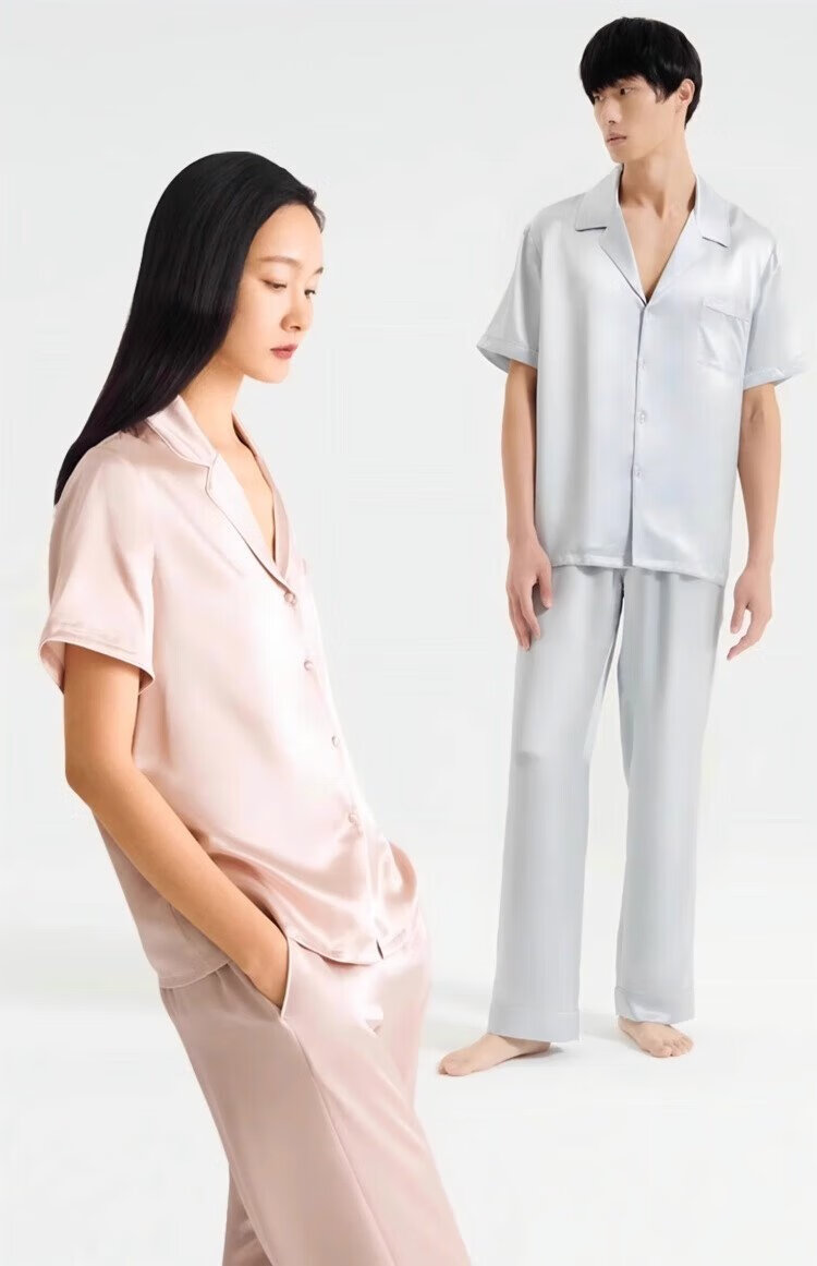 Sinon Silk Pajama Set Couple's High-Quality 100% Mulberry Silk Short-Sleeved Homewear Gift Box Dailan Women's S