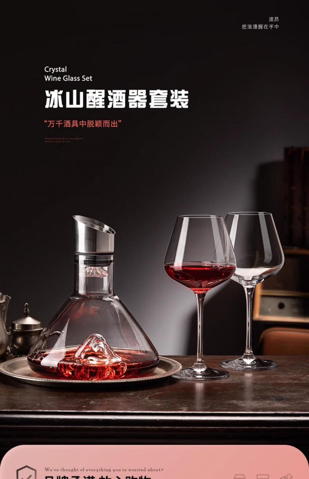 Vankage Crystal Waterfall Red Wine Decanter Iceberg Quick Wine Divider Glass Red Wine Cup Set Home Waterfall Iceberg Decanter + Crystal 350 Six Pieces