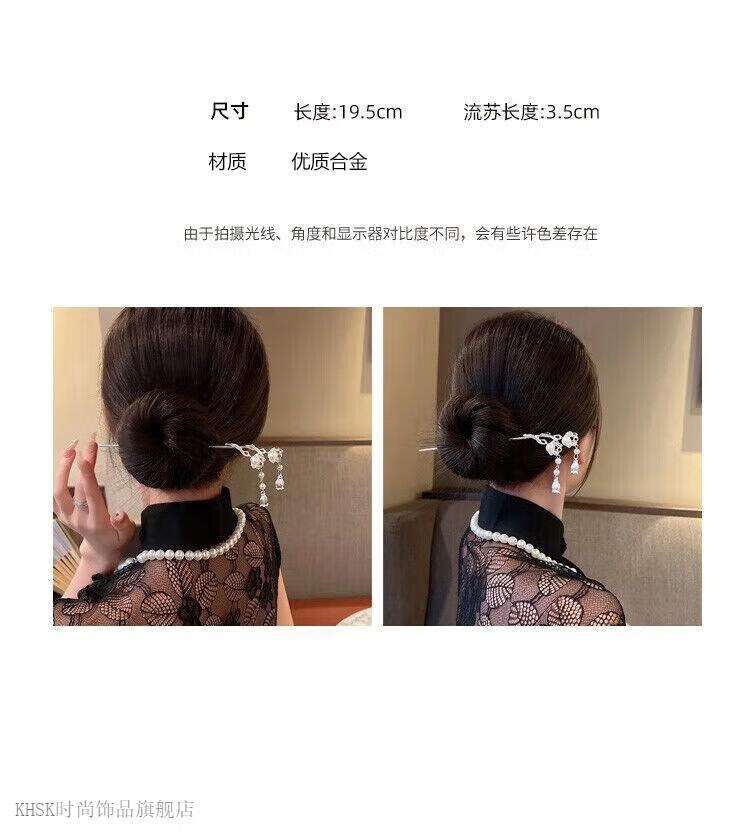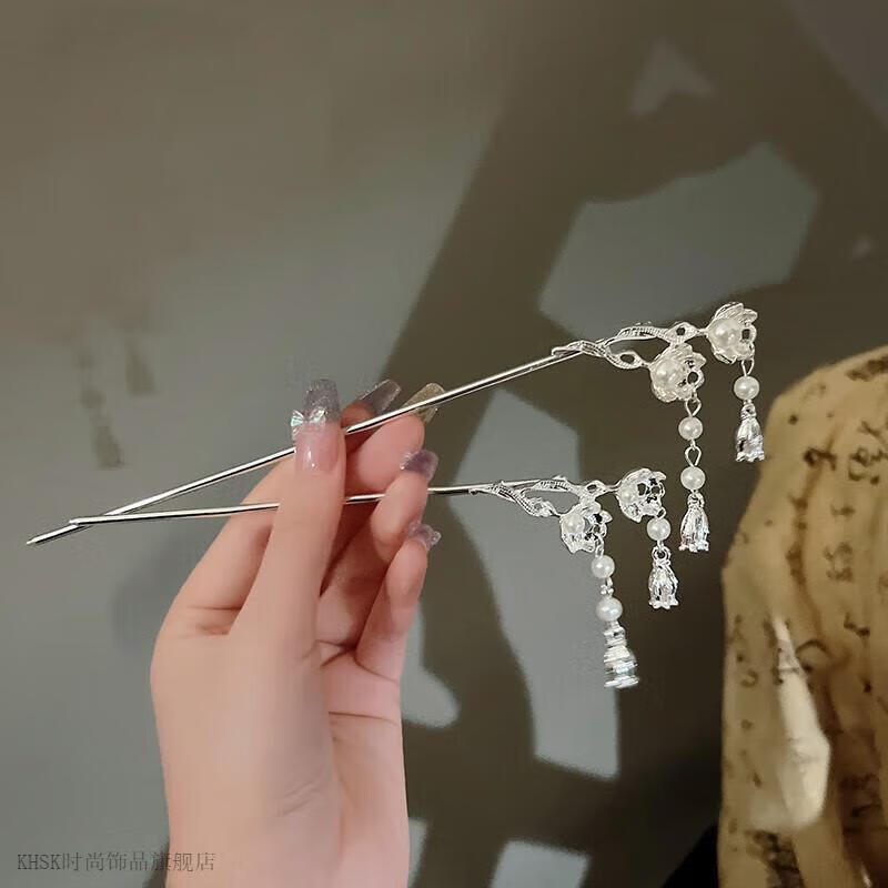KHSK new Chinese style lily of the valley hairpin for women simple modern artificial pearl tassel hairpin updo Hanfu hair accessories iris flower