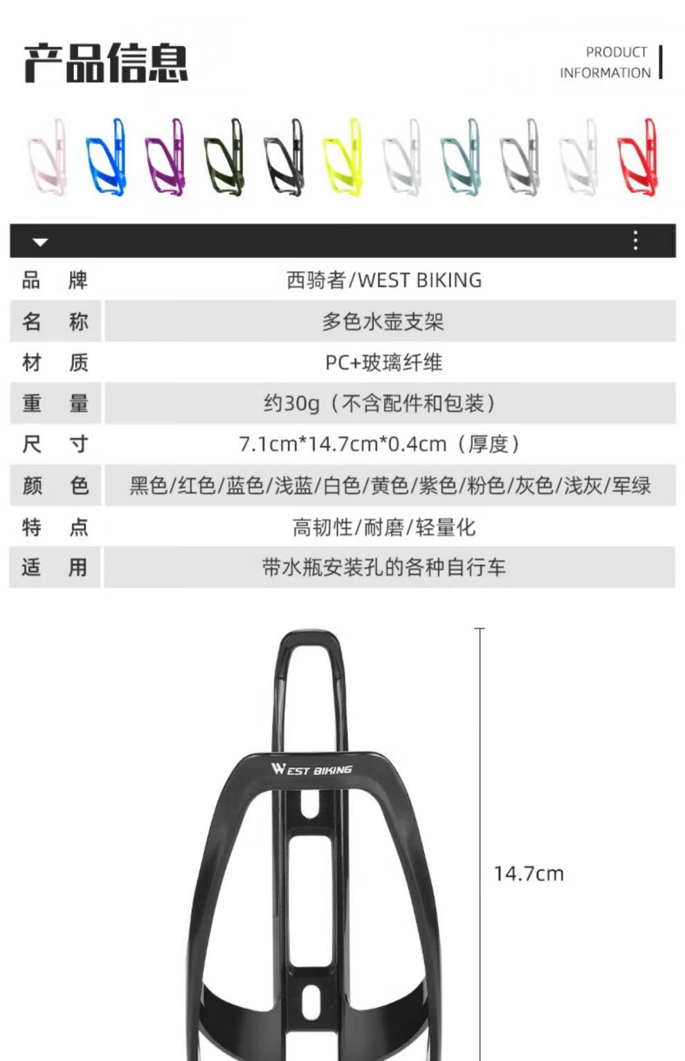 WestBiking Bicycle Water Bottle Rack Road Bike Mountain Bike Universal Ultralight Water Cup Rack Cycling Equipment Cycling Accessories Black_PC+Fiberglass Material