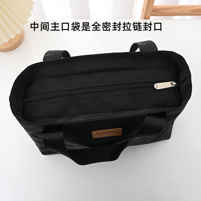 Fat Donglai's same style men's handbag business 4 large capacity lightweight work commuter unisex waterproof handbag - Large black Default Specifications1