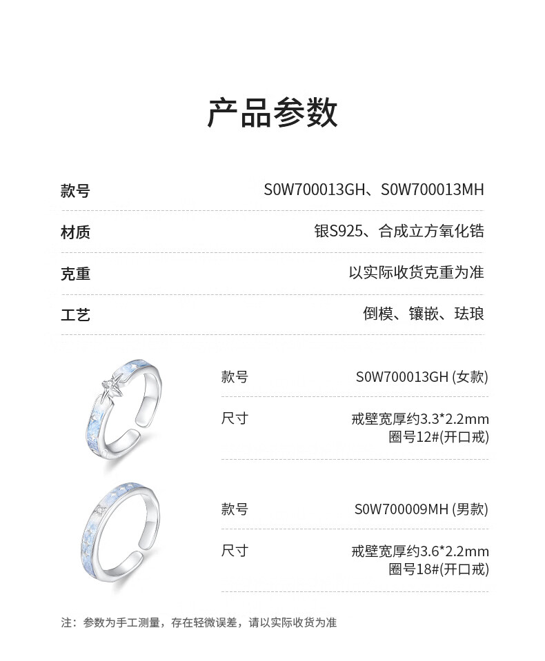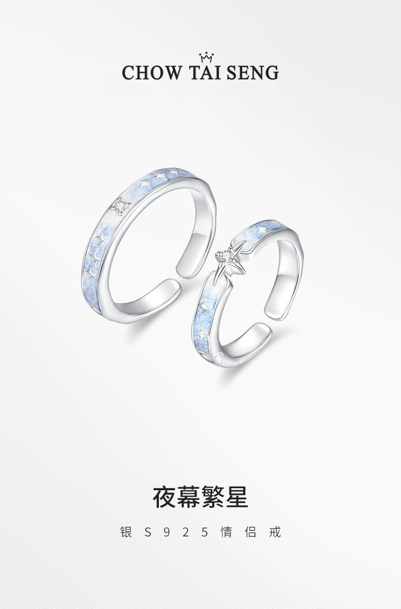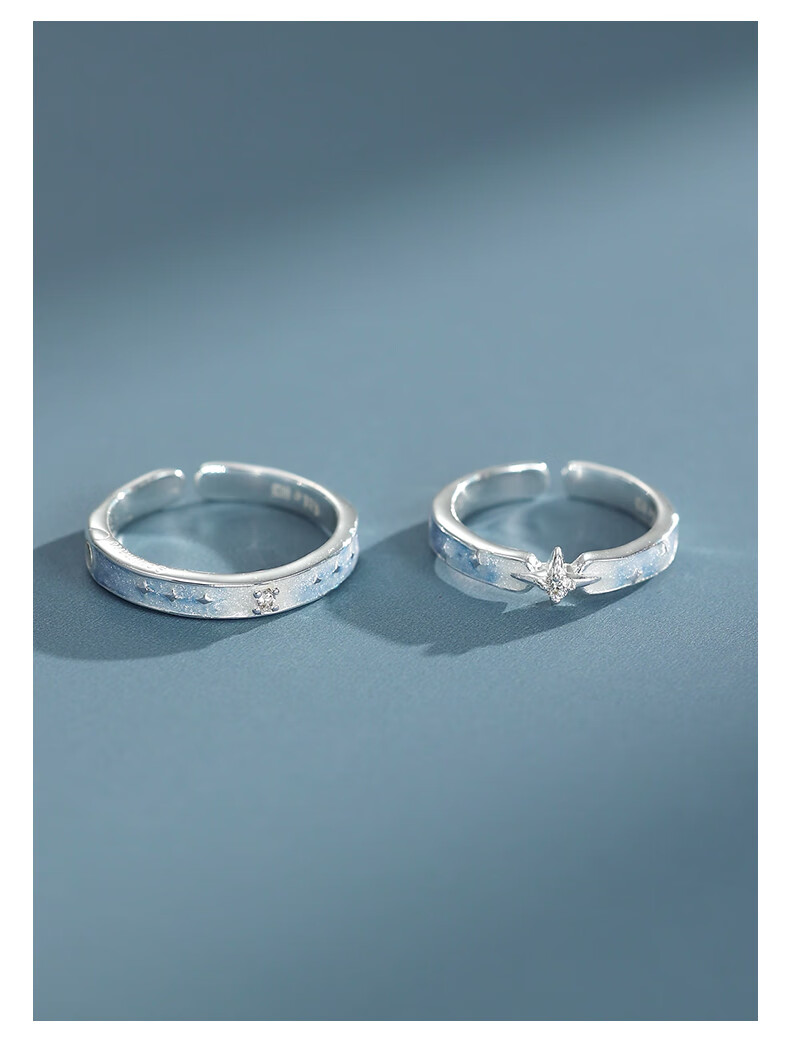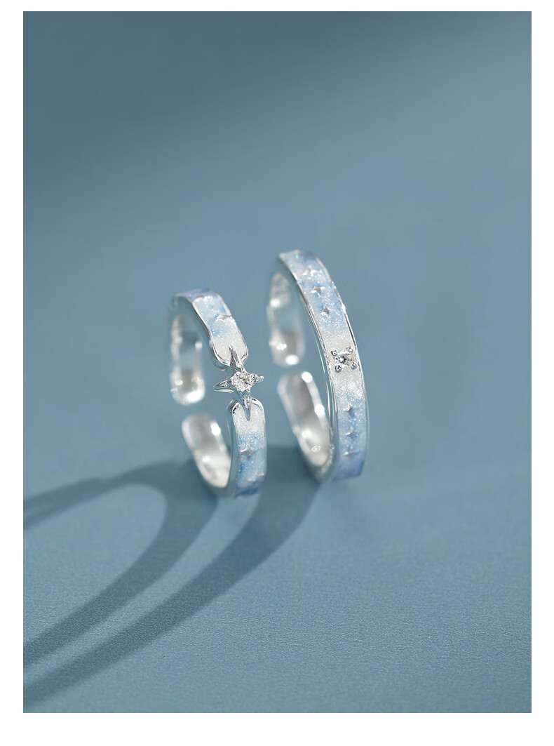 Zhou Taisheng's Starry Night for Male and Female Couple Rings S925 Silver Open Ring as a birthday gift for his girlfriend and boyfriend. The opening is adjustable/Starry at Night (men's ring)