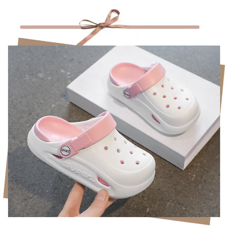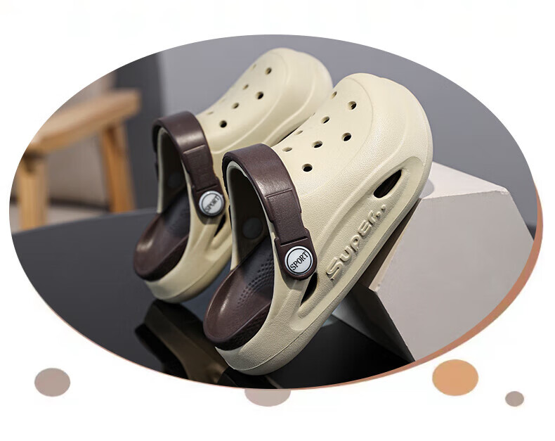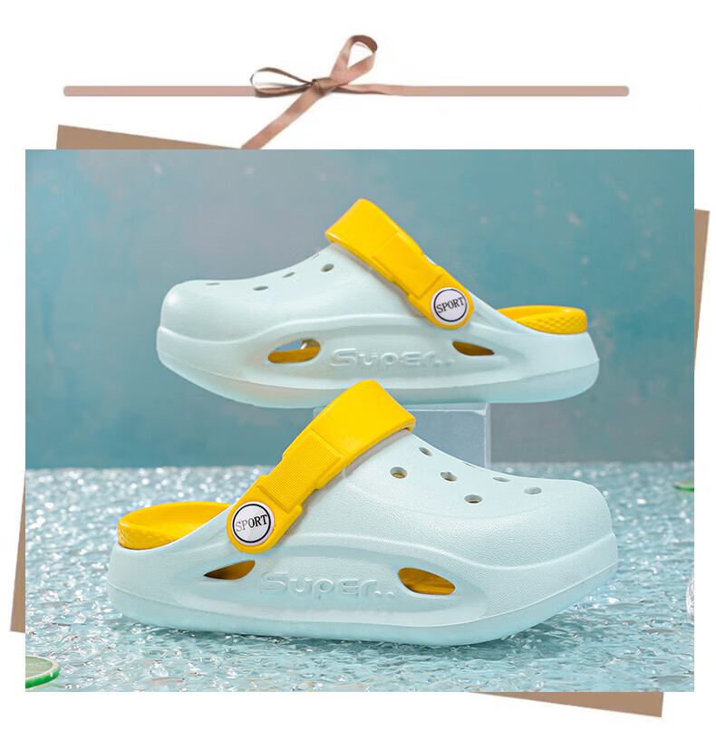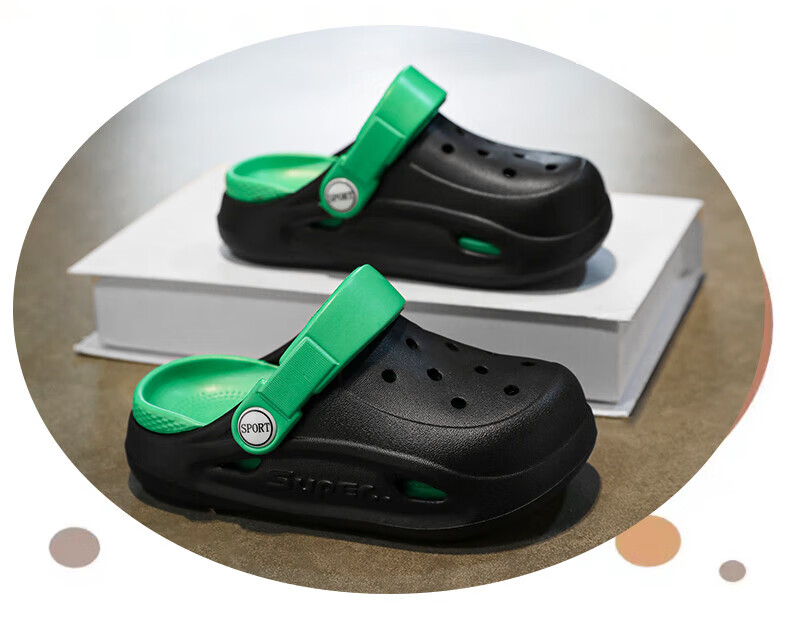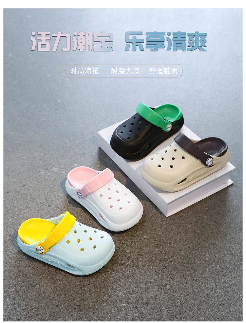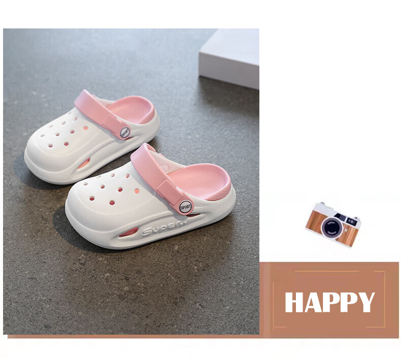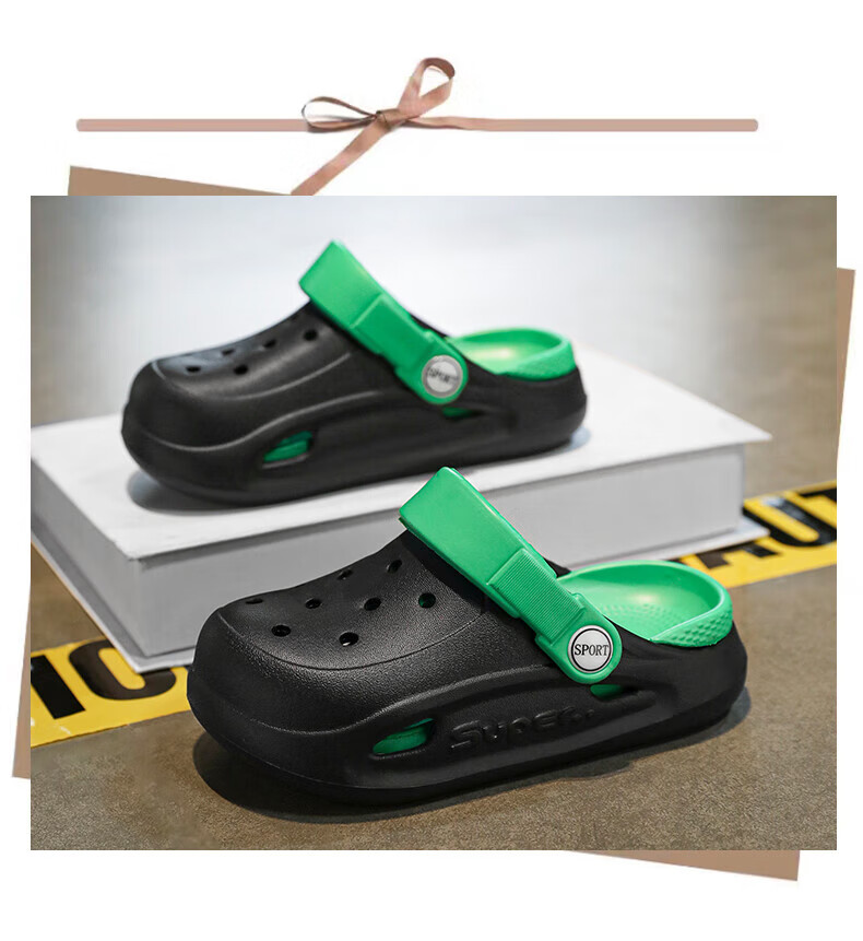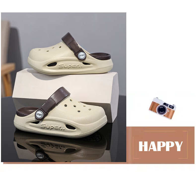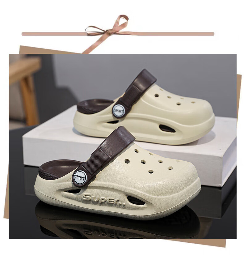 Boys and children's Crocs, comfortable soft-soled EVA medium and large children's Crocs, fashionable and wear-resistant, girls' non-slip sandals, card brown 32, inner length about 19.4