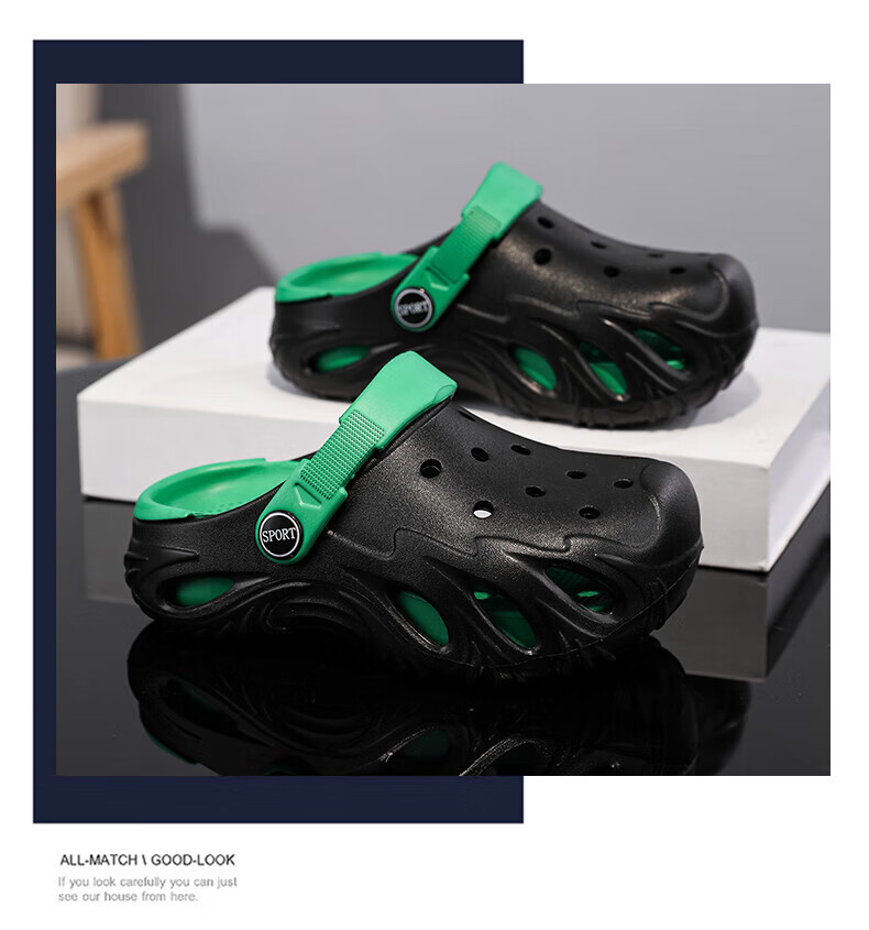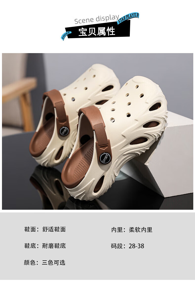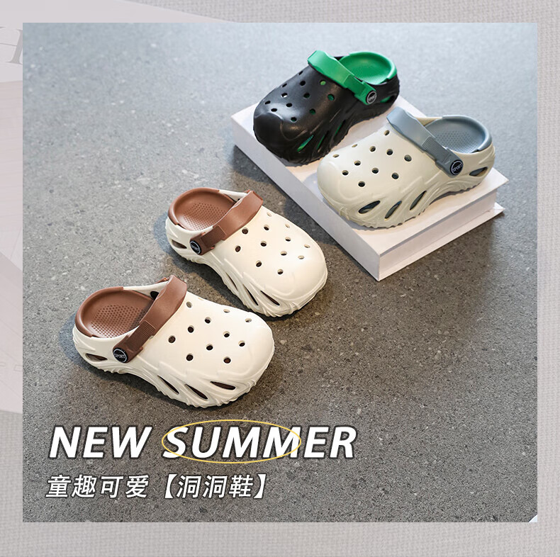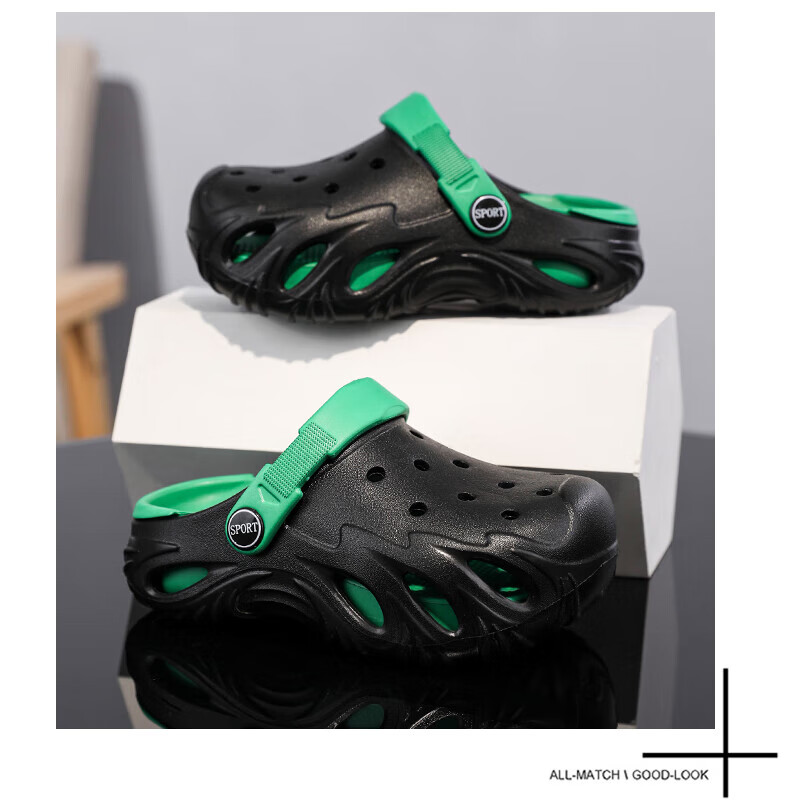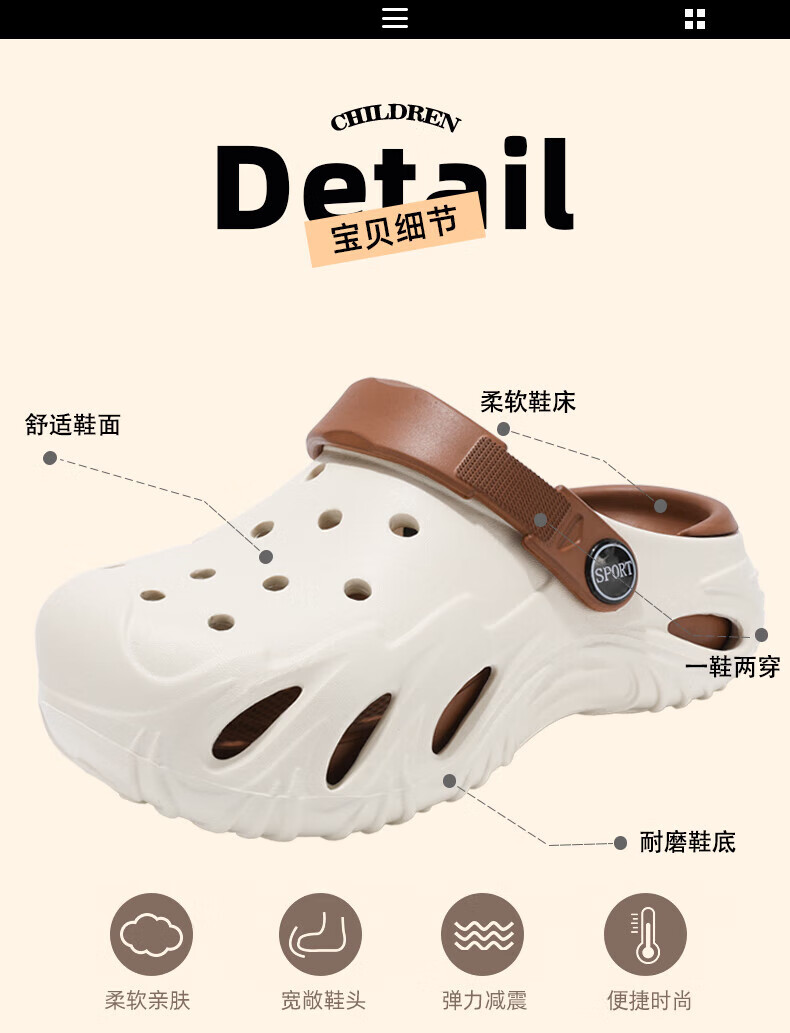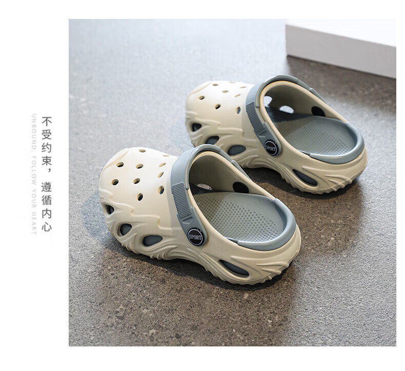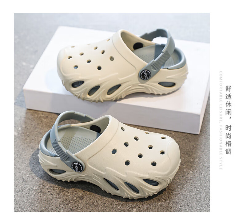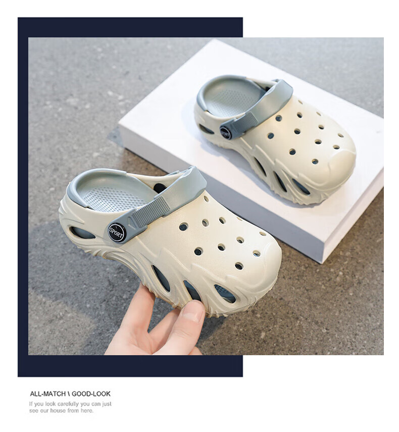 2025 New Children's Crocs Handsome Thick-soled Sandals and Slippers for Children and Middle-aged Children EVA Super Soft Material Beach Shoes for Big Children Gray Blue 36 Inner Length Approximately 22.7