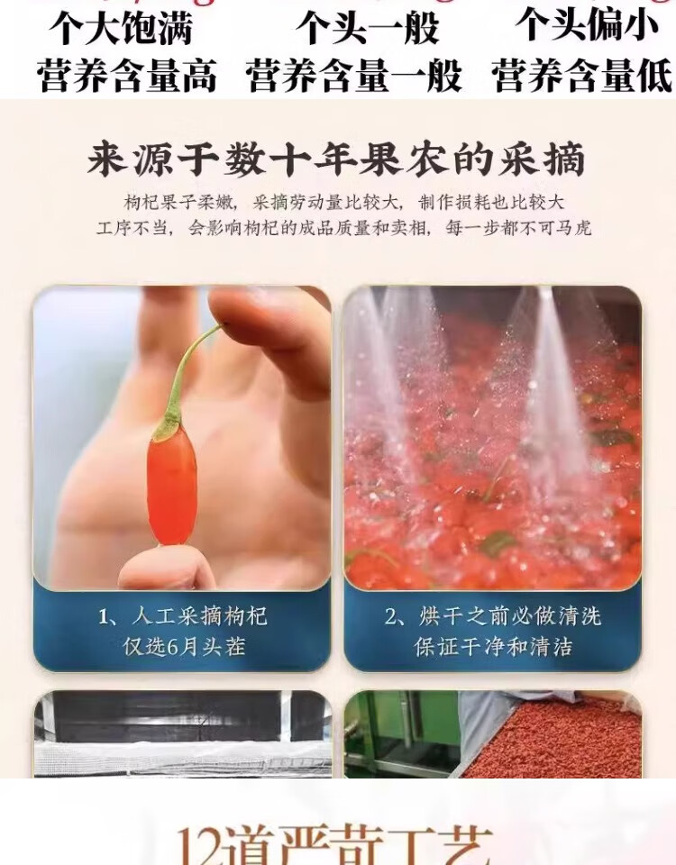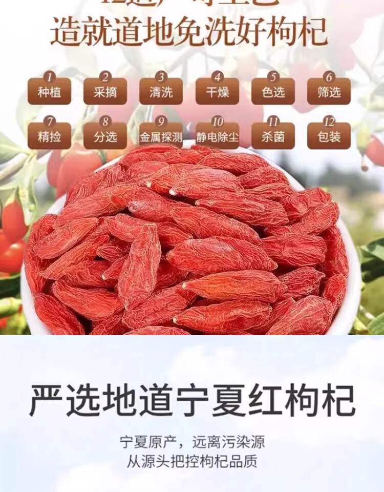 Xiemu high quality Ningxia special first crop wolfberry farm red wolfberry dry soaked in water for tea 500g 25 years new product special quality no wash first crop wolfberry new product large fruit 250g