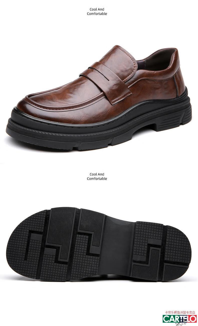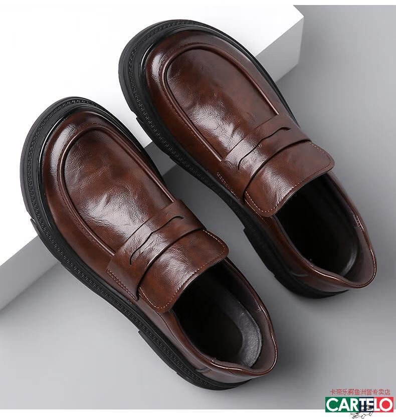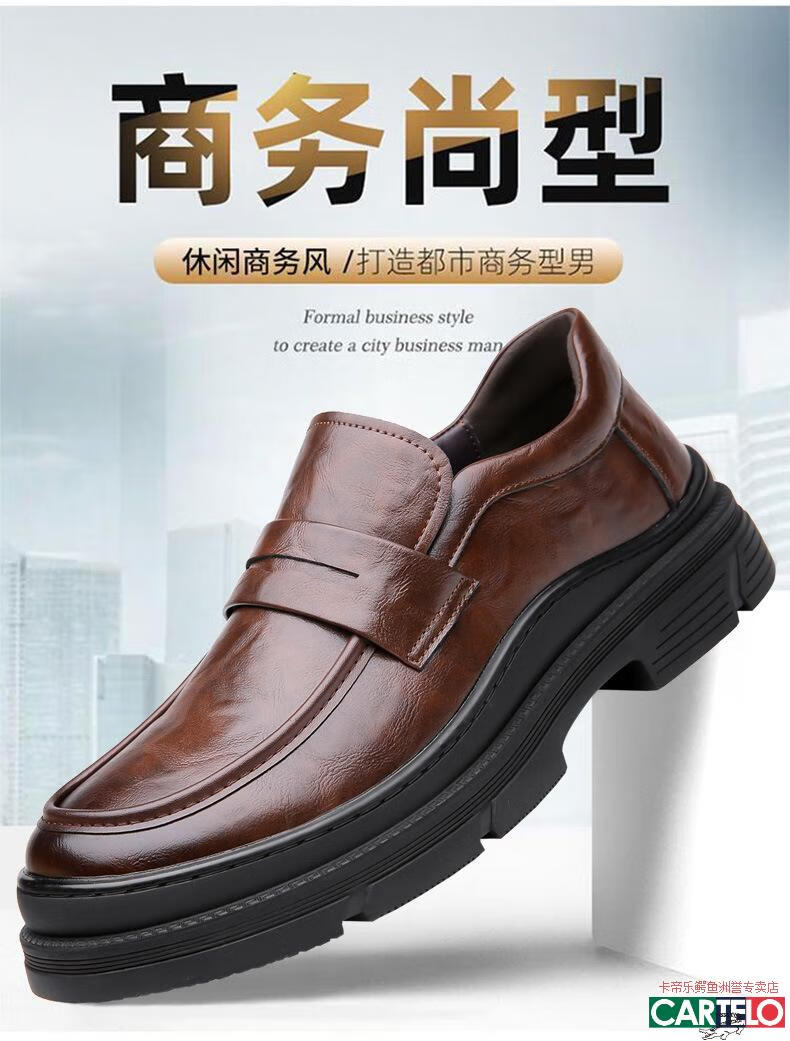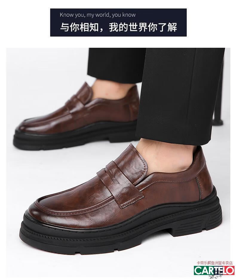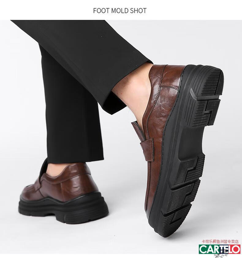CARTELO laceless brown men's shoes spring 2025 new large-head business casual leather shoes full-color wide-head loafers GX9923 brown 42