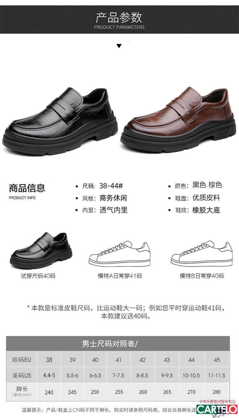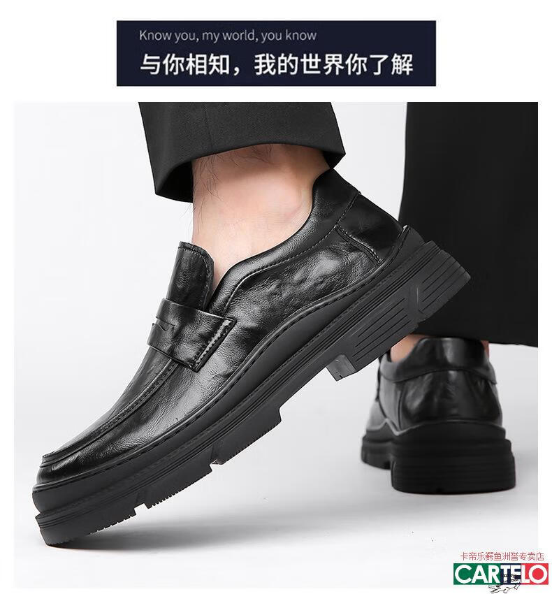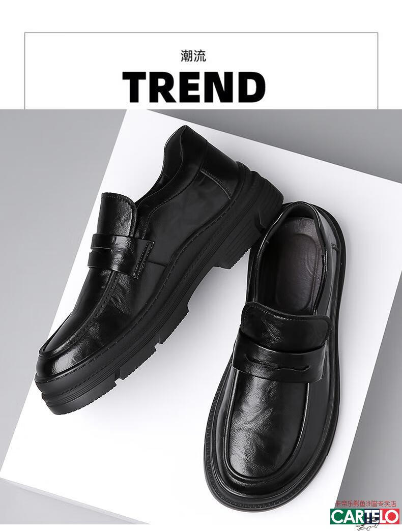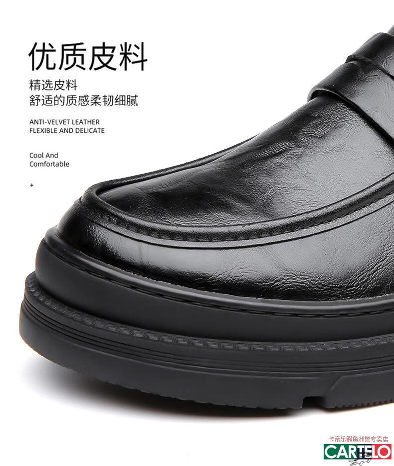 CARTELO laceless brown men's shoes spring 2025 new large-head business casual leather shoes full-color wide-head loafers GX9923 brown 42
