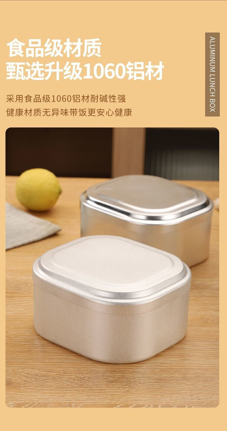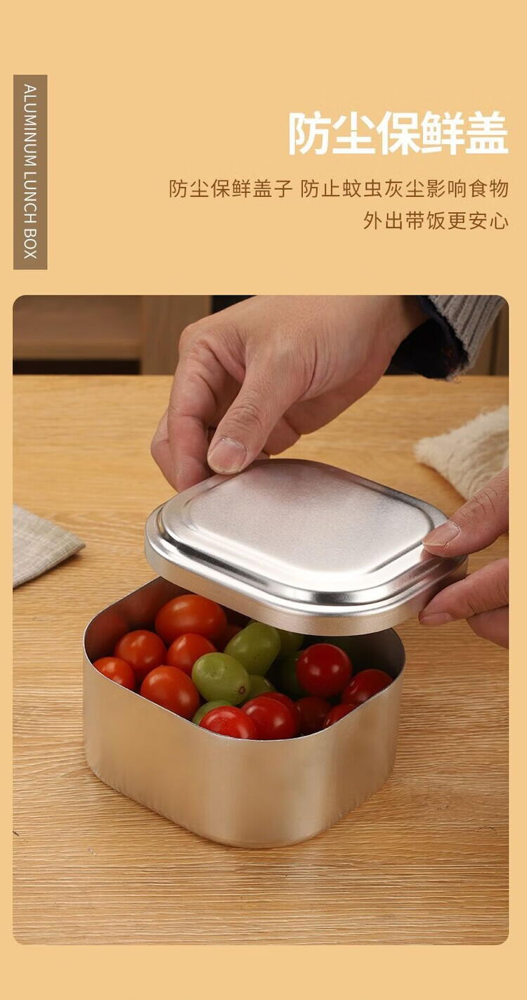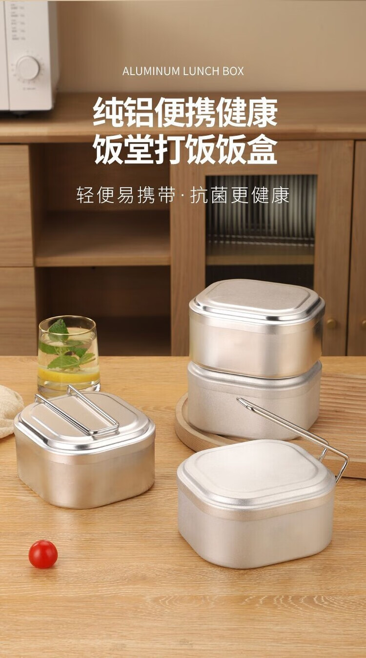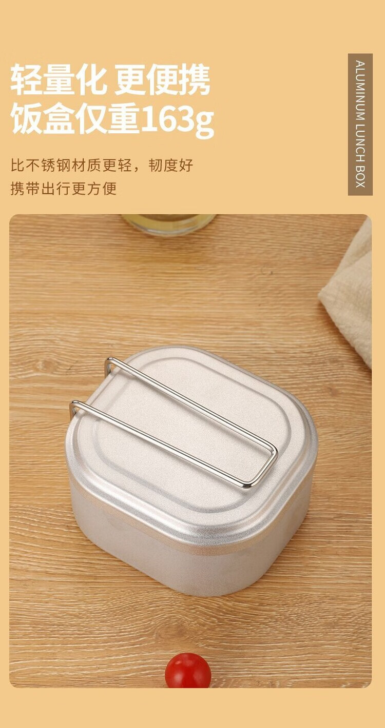 Hanboco aluminum lunch box, hygienic all-aluminum lunch box, nostalgic thickened old-fashioned lunch box factory outdoor camping aluminum lunch box lunch box, sandblasted handle 950ml