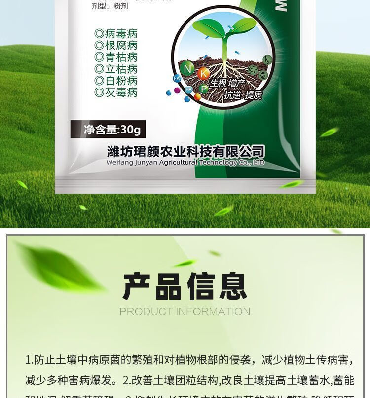 Trichoderma harzianum biological agent removes viral diseases, root rot, bacterial wilt, damping off, powdery mildew, gray mold 50 packs 30g/pack*50