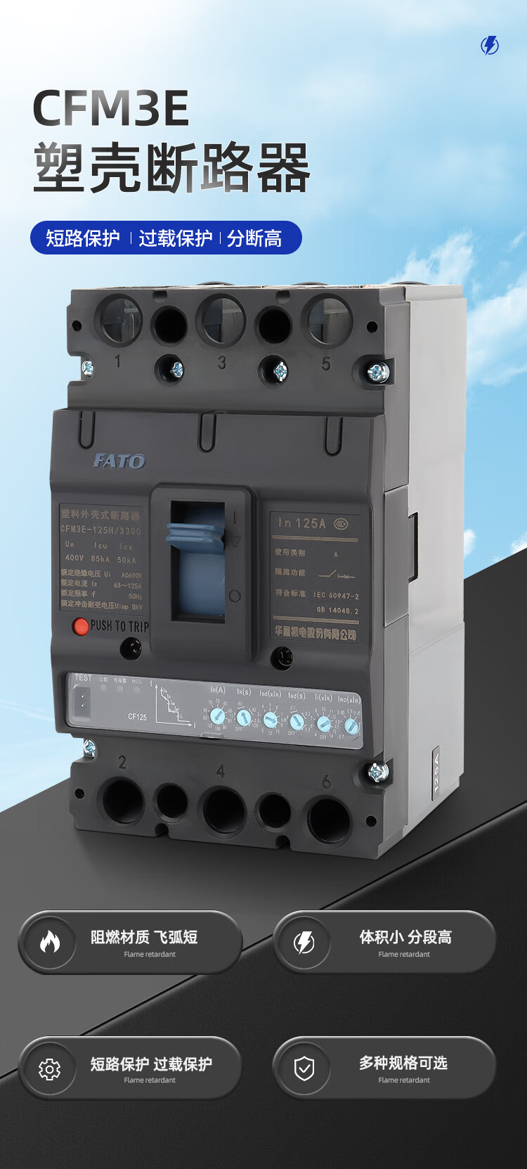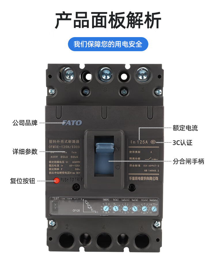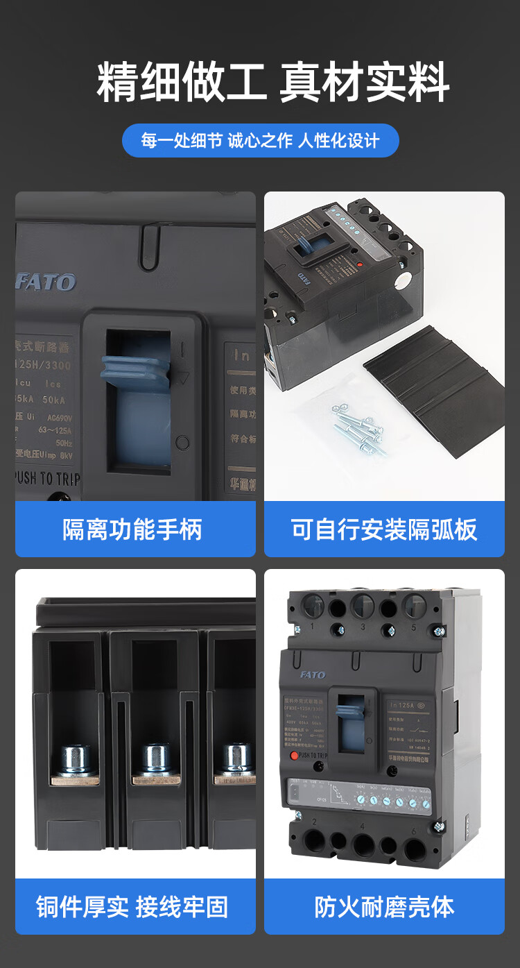 FATO Huatong electronic molded case circuit breaker CFM3E-125M can be installed with intelligent controller communication remote control 4P 2 16A 3P
