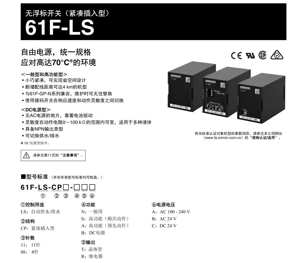 Omron (OMRON) liquid level controller water level relay 61F-LS-CP08-NRA 8-pin replacement AC100-240V