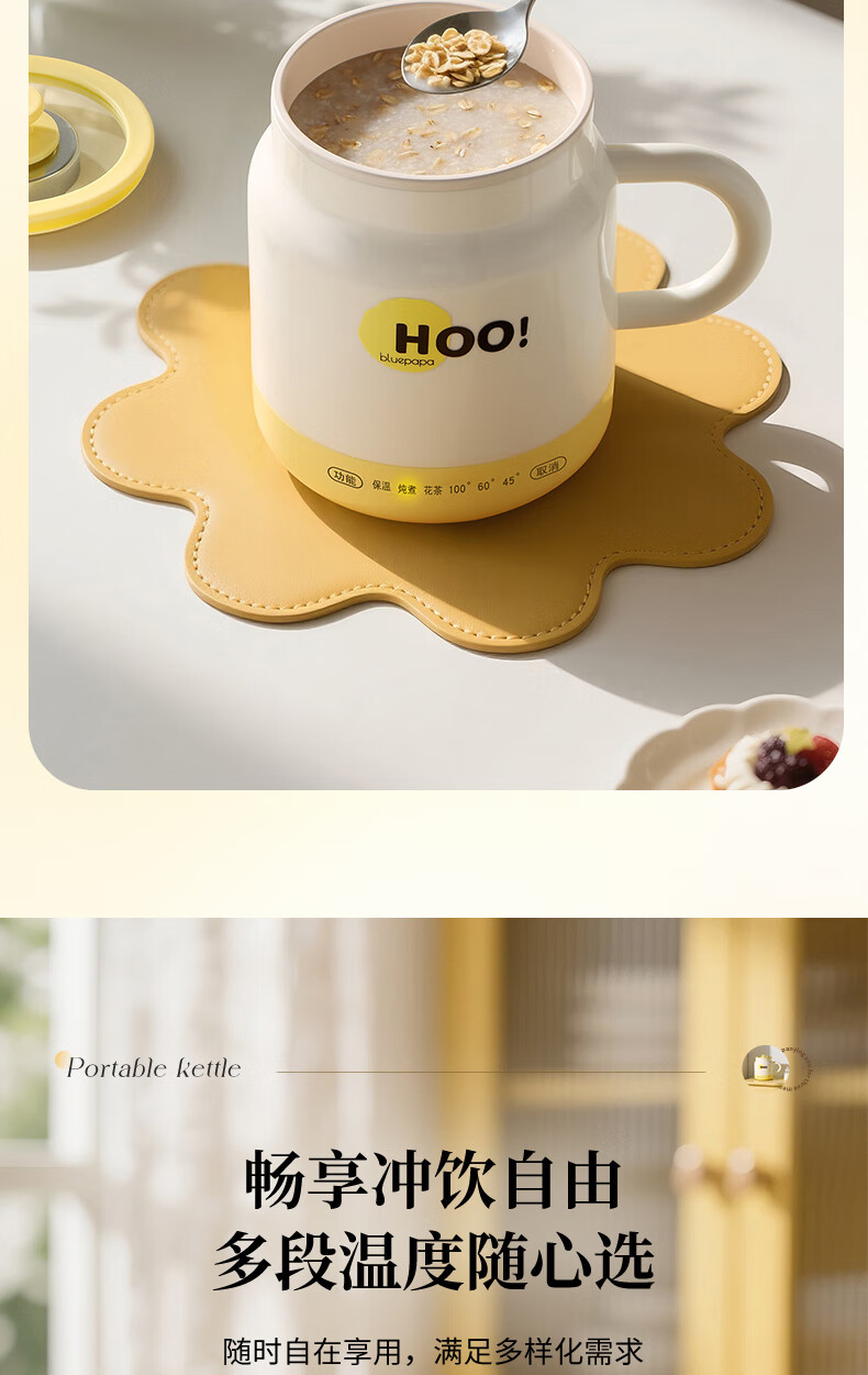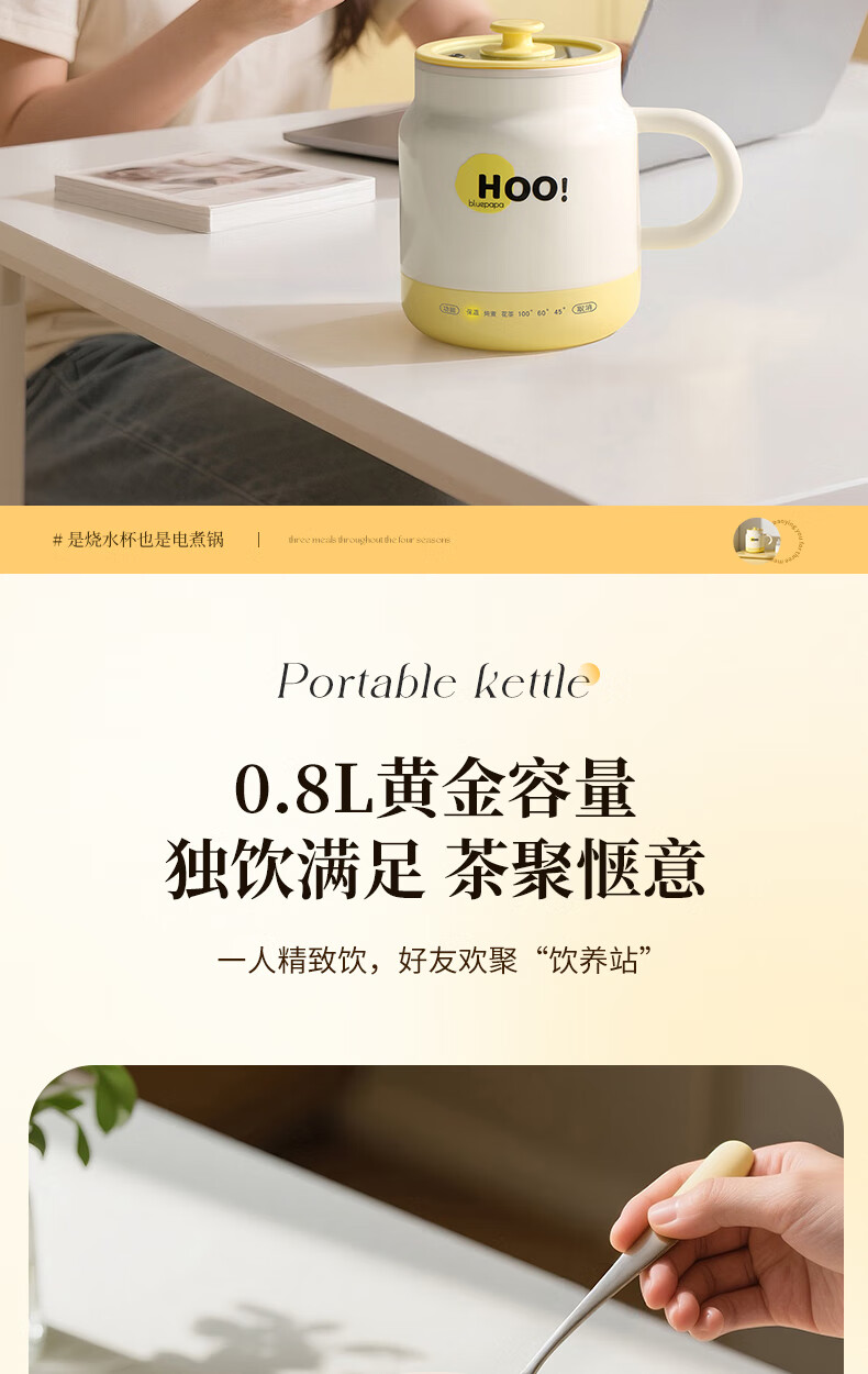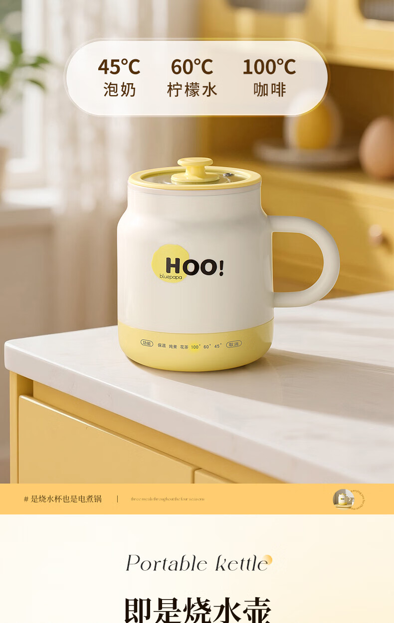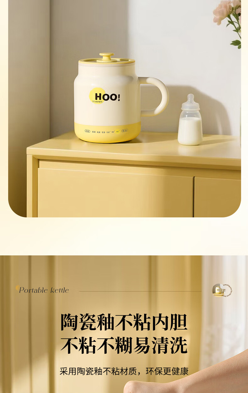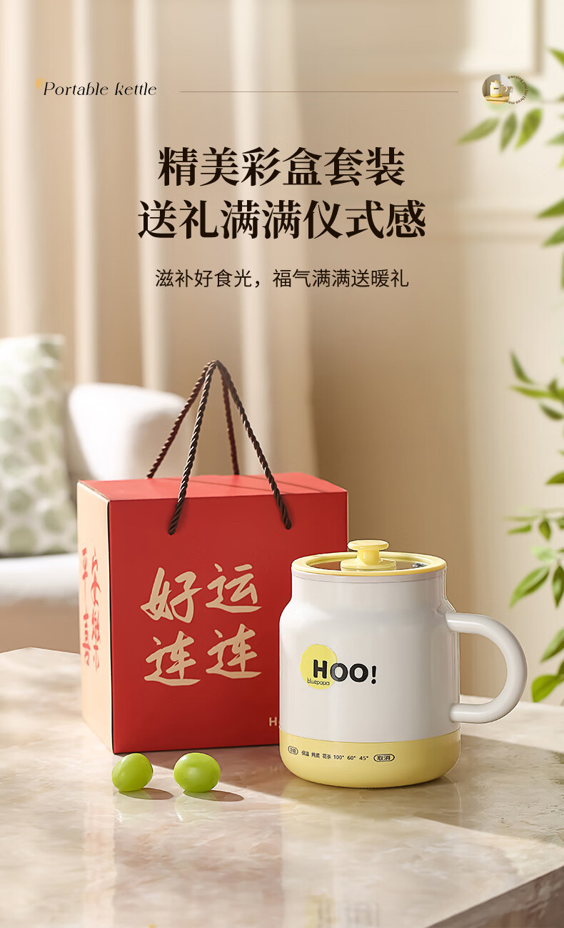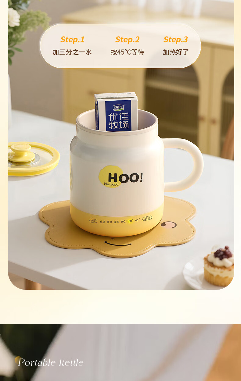 Blue Dad Health Cup Fully Automatic Multi-Function Water Boil Cup Hot Milk Cup Small Electric Boil Cup Mini Portable Heating Electric Hot Water Cup Porridge Pot Stew Cup Office Hot Milk Artifact Cream Yellow 0.8L Gift Box Packaging