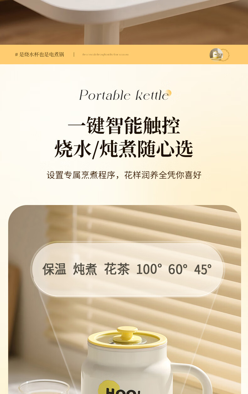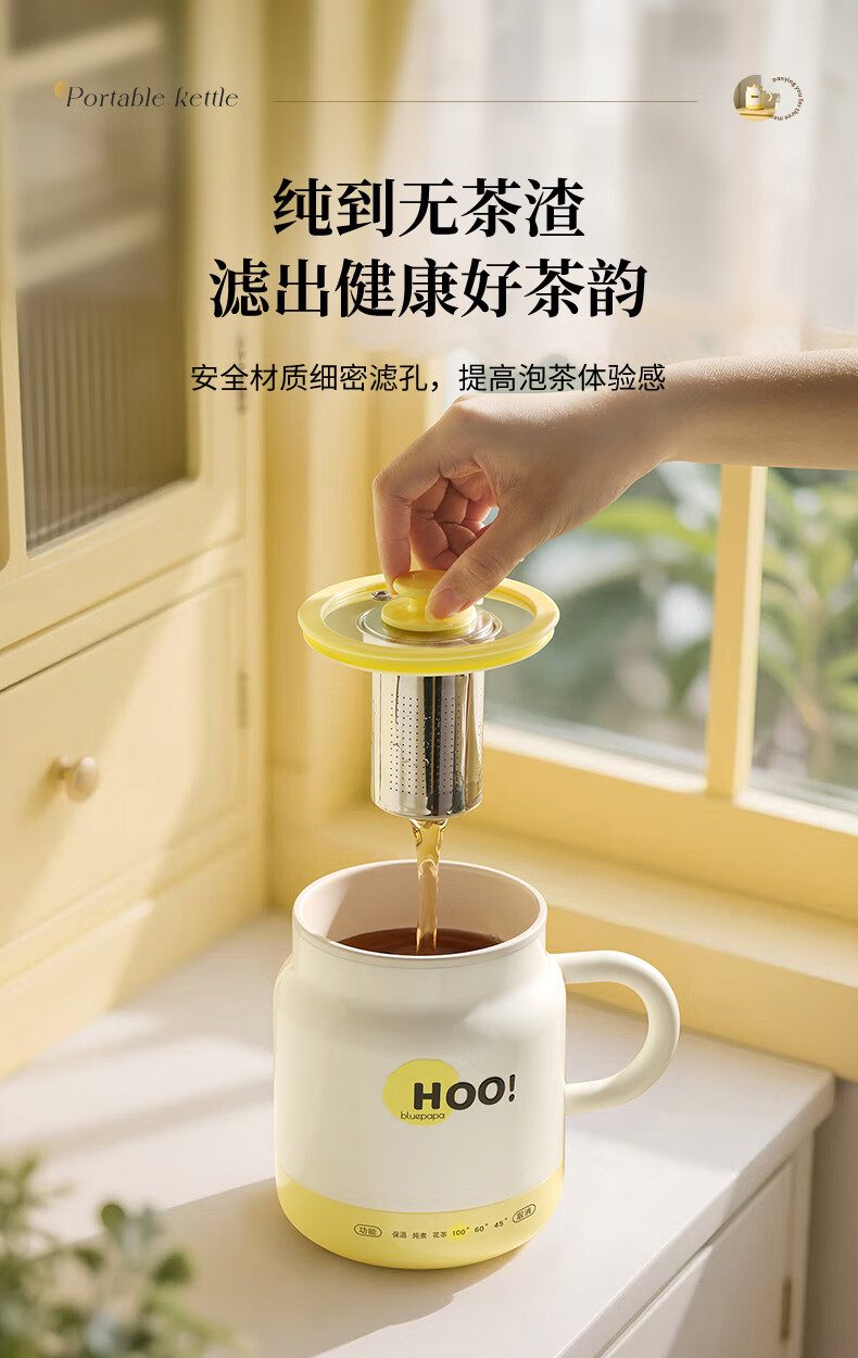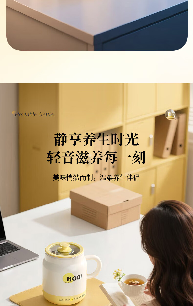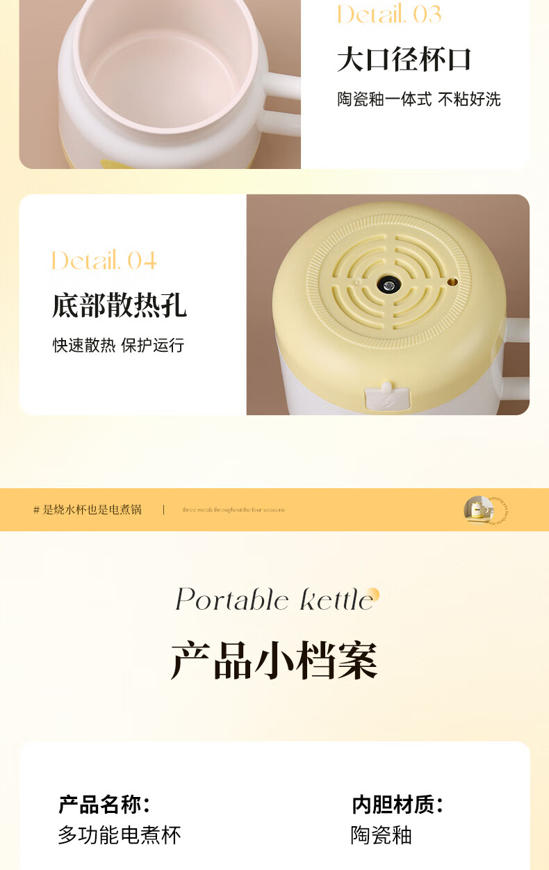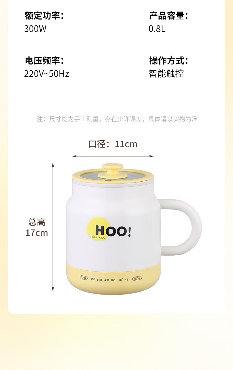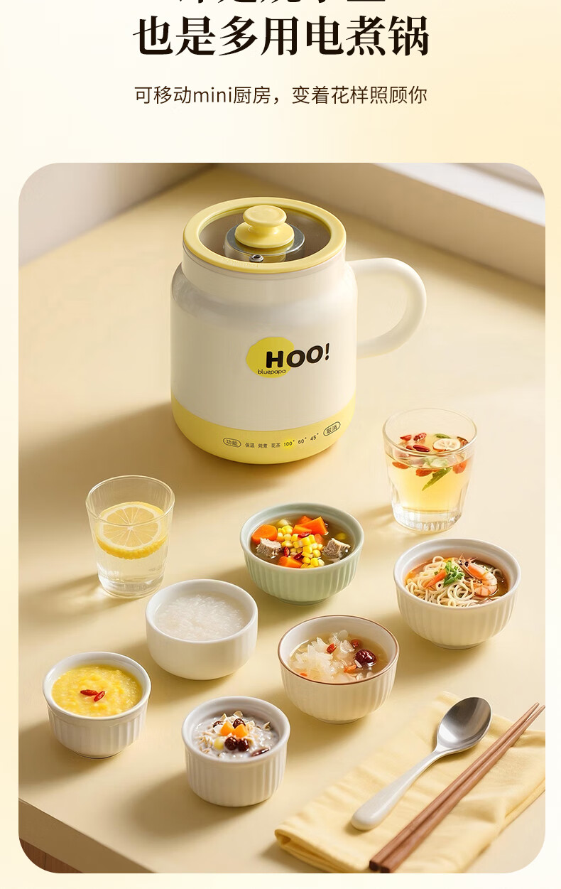 Blue Dad Health Cup Fully Automatic Multi-Function Water Boil Cup Hot Milk Cup Small Electric Boil Cup Mini Portable Heating Electric Hot Water Cup Porridge Pot Stew Cup Office Hot Milk Artifact Cream Yellow 0.8L Gift Box Packaging