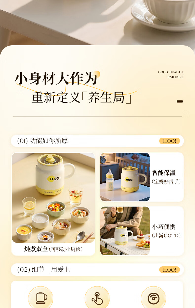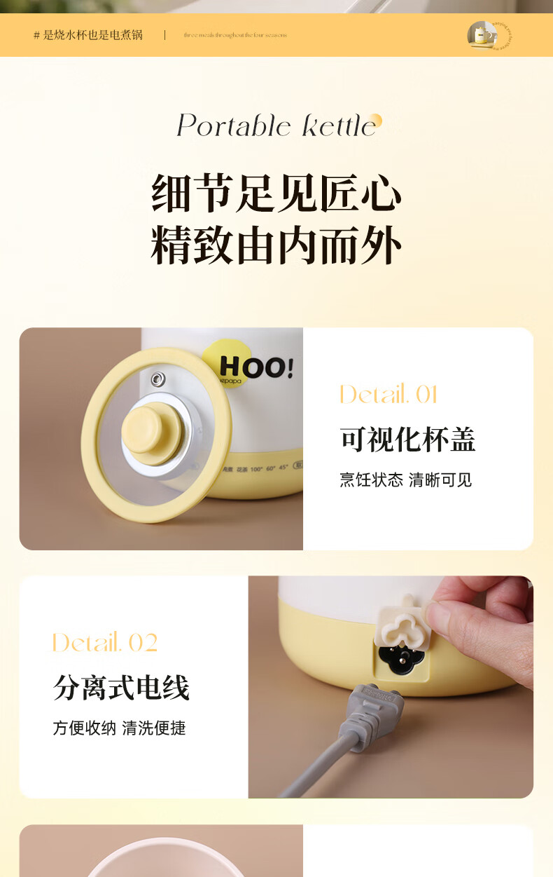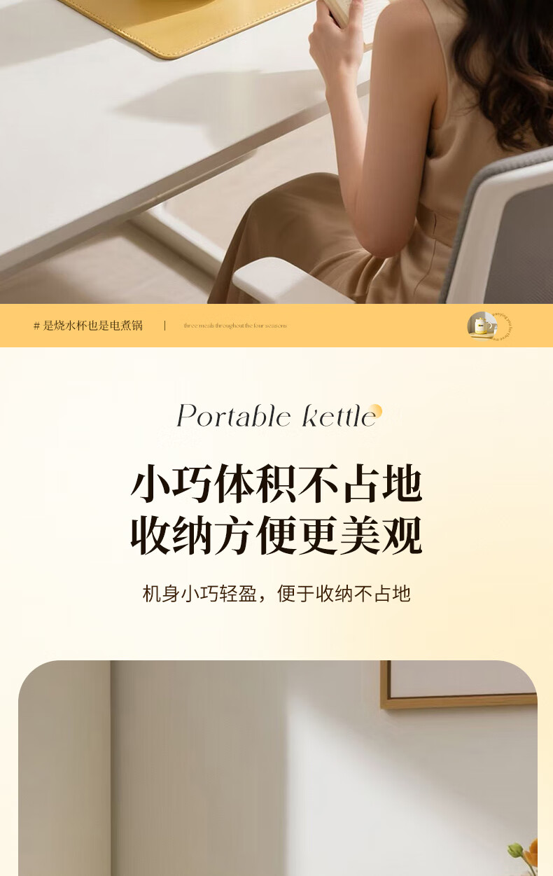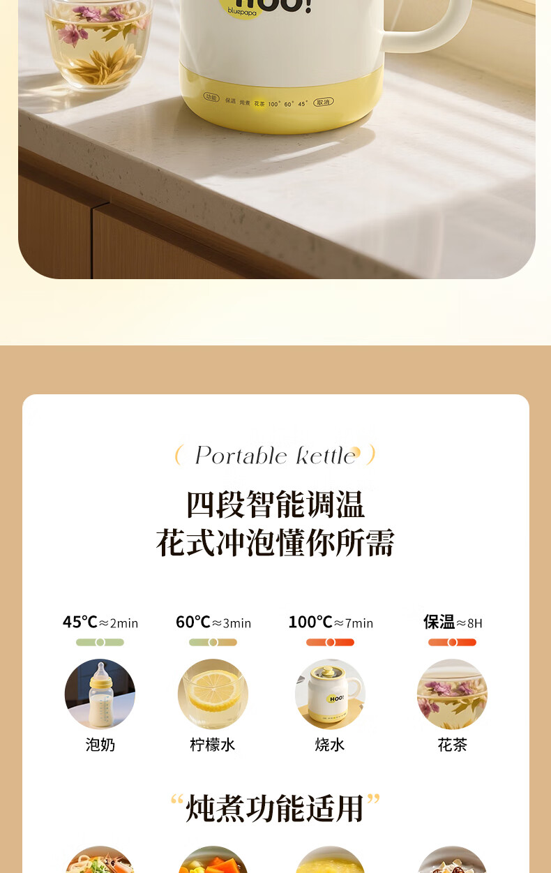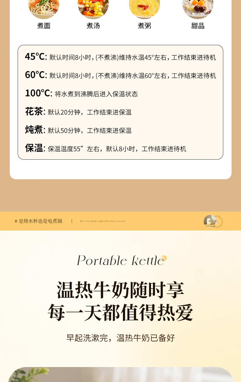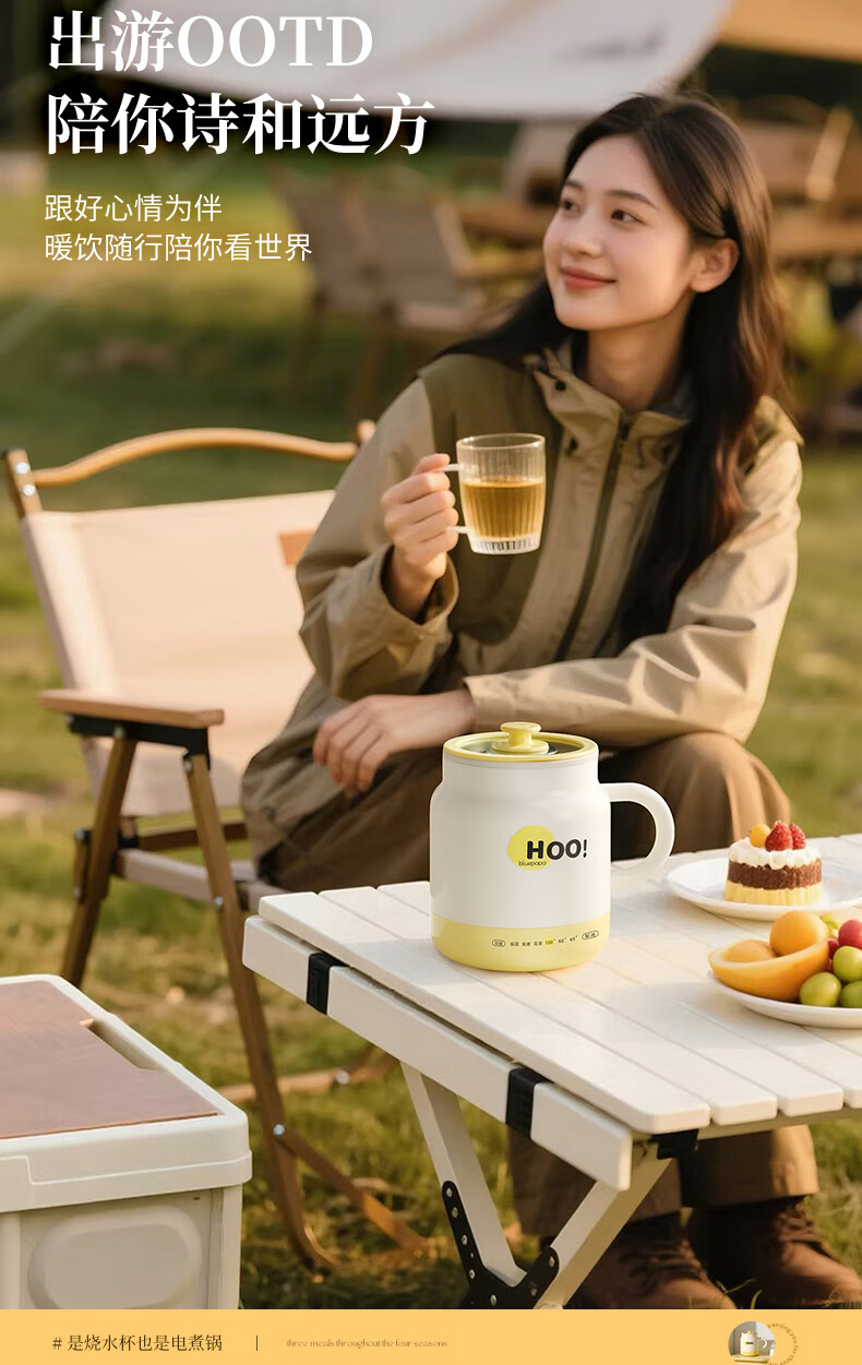 Blue Dad Health Cup Fully Automatic Multi-Function Water Boil Cup Hot Milk Cup Small Electric Boil Cup Mini Portable Heating Electric Hot Water Cup Porridge Pot Stew Cup Office Hot Milk Artifact Cream Yellow 0.8L Gift Box Packaging