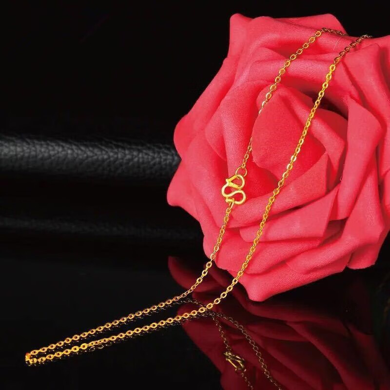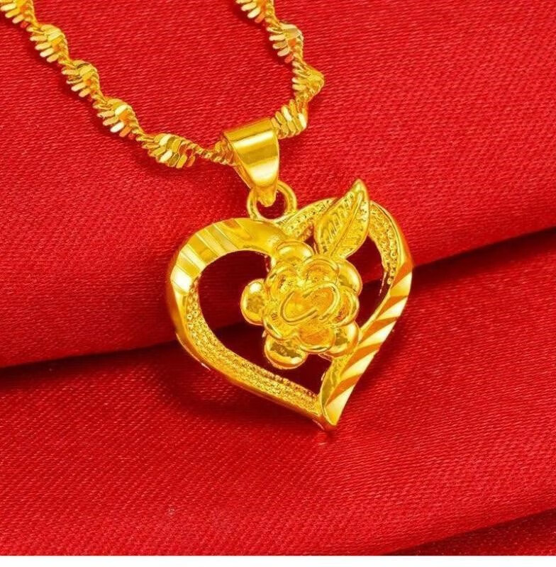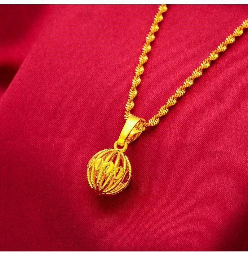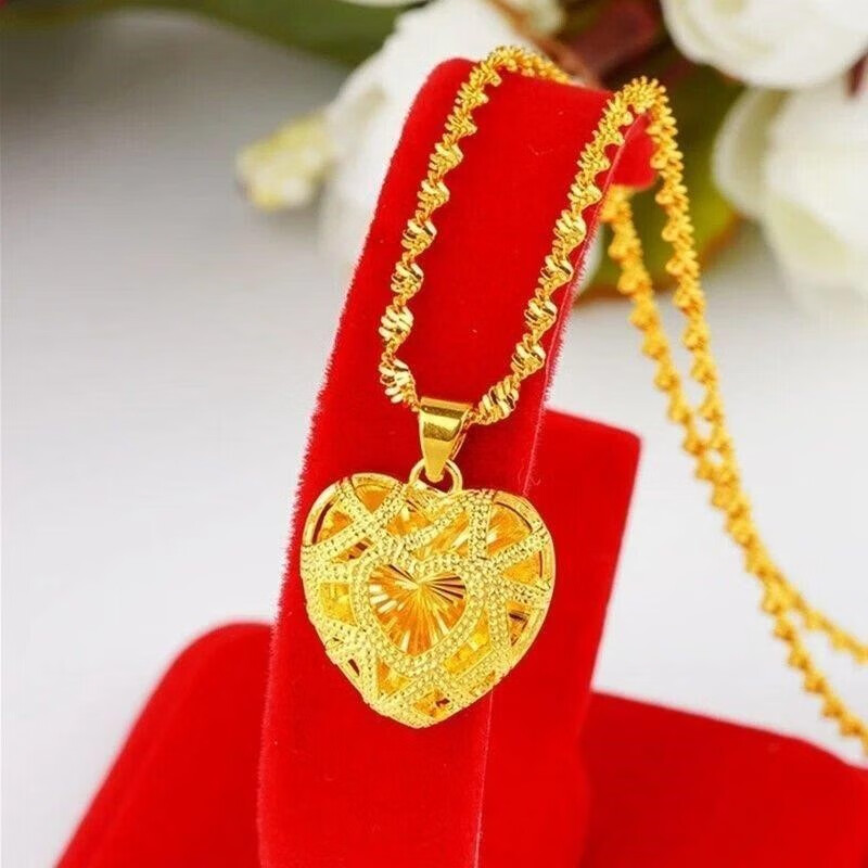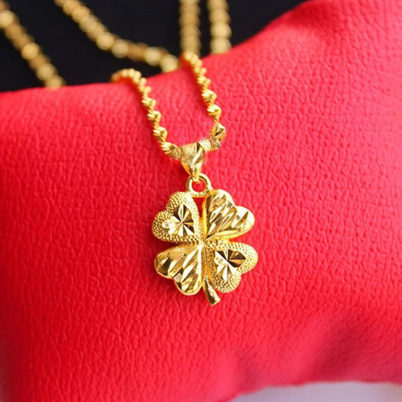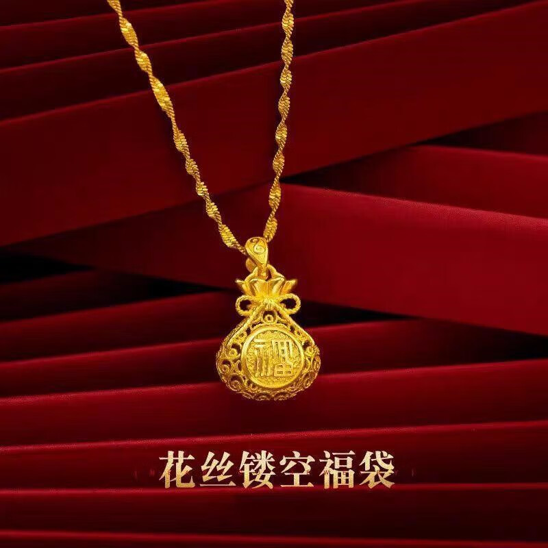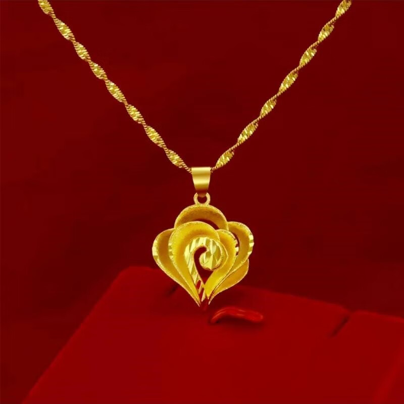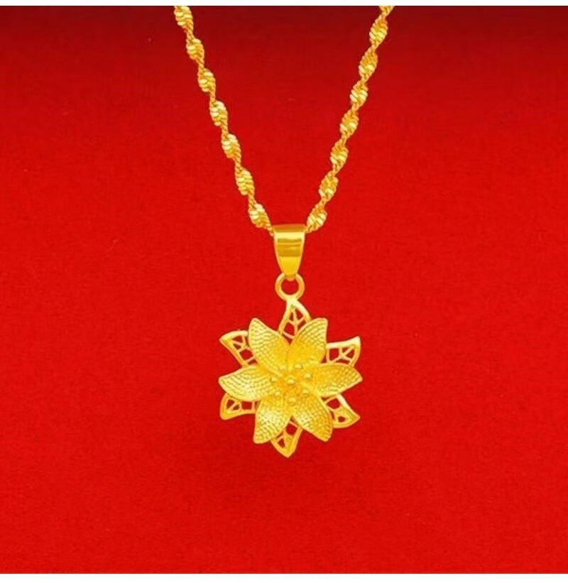 MHFDO Bengal Red Gold Flower Blooming Wealth Pendant Vietnam Sand Gold Necklace Water Wave Chain Live Gold Plating Shake Flower Blooming Wealth 2 Pendant + Double Water Wave Chain