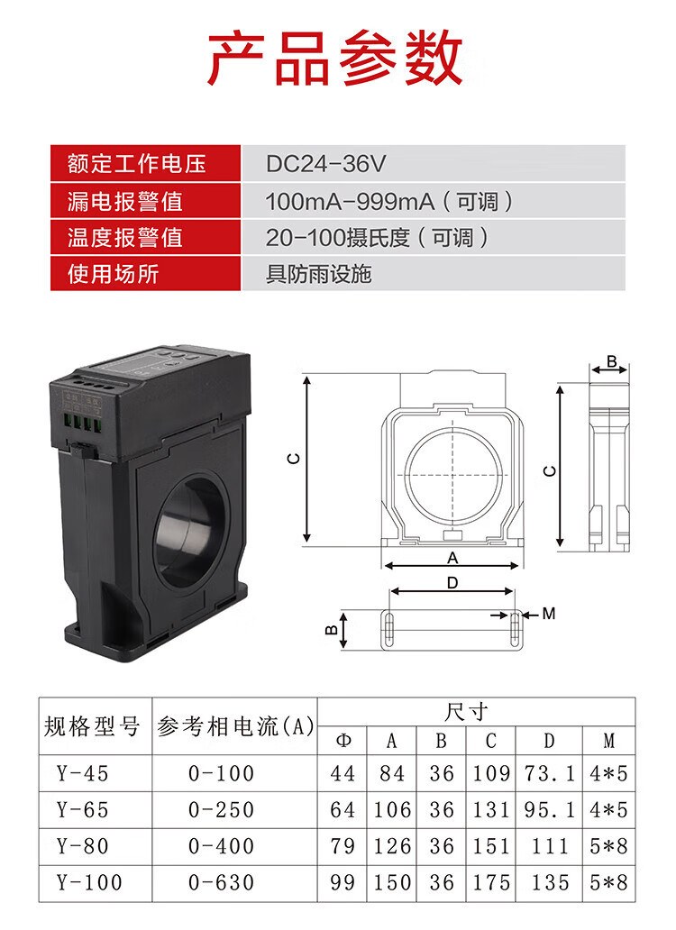 Electro-optical integrated electrical fire monitoring detector combined leakage monitoring module fire alarm equipment circular 0-100 aperture 45 (including module/power supply DC24-36V)