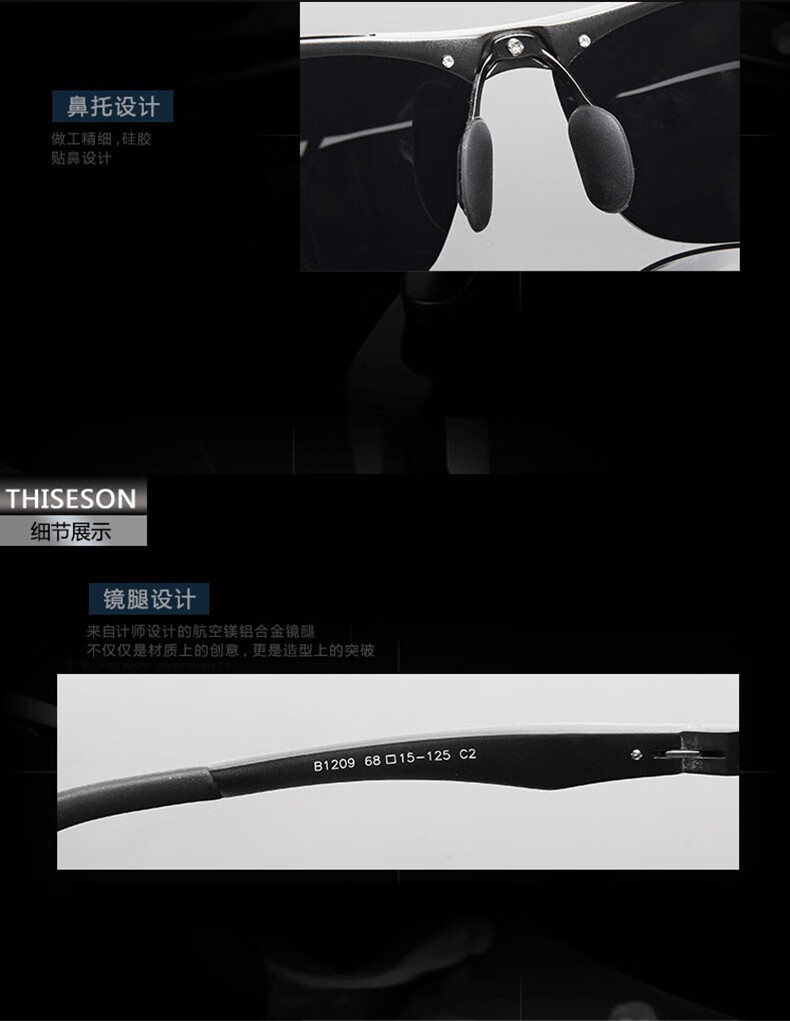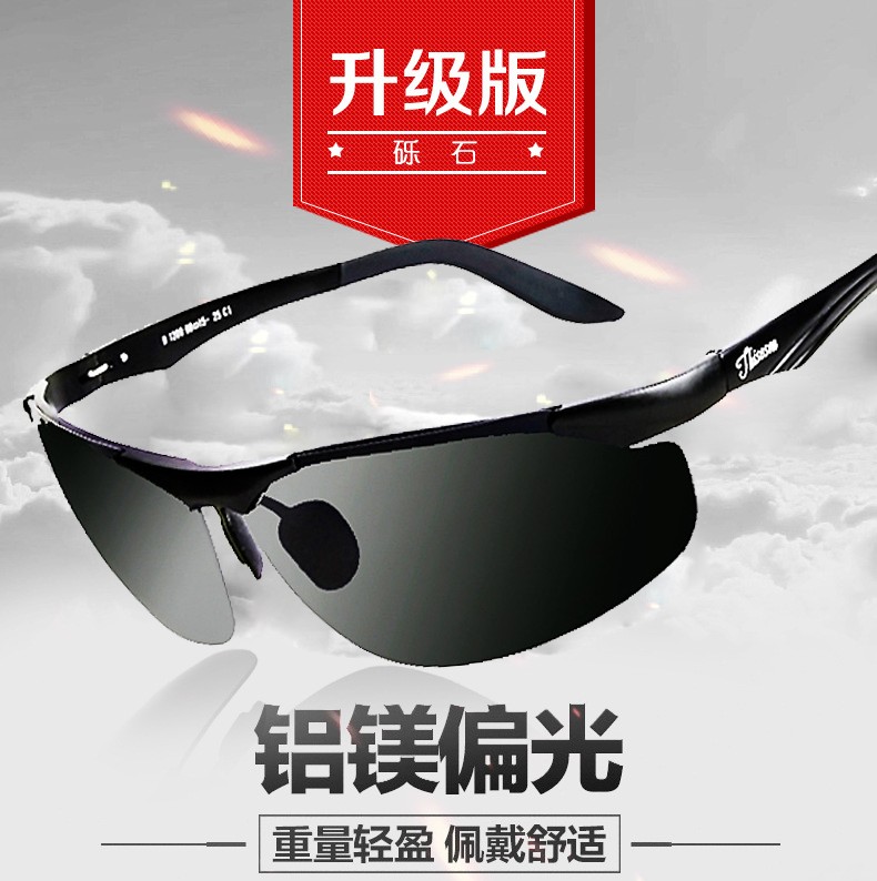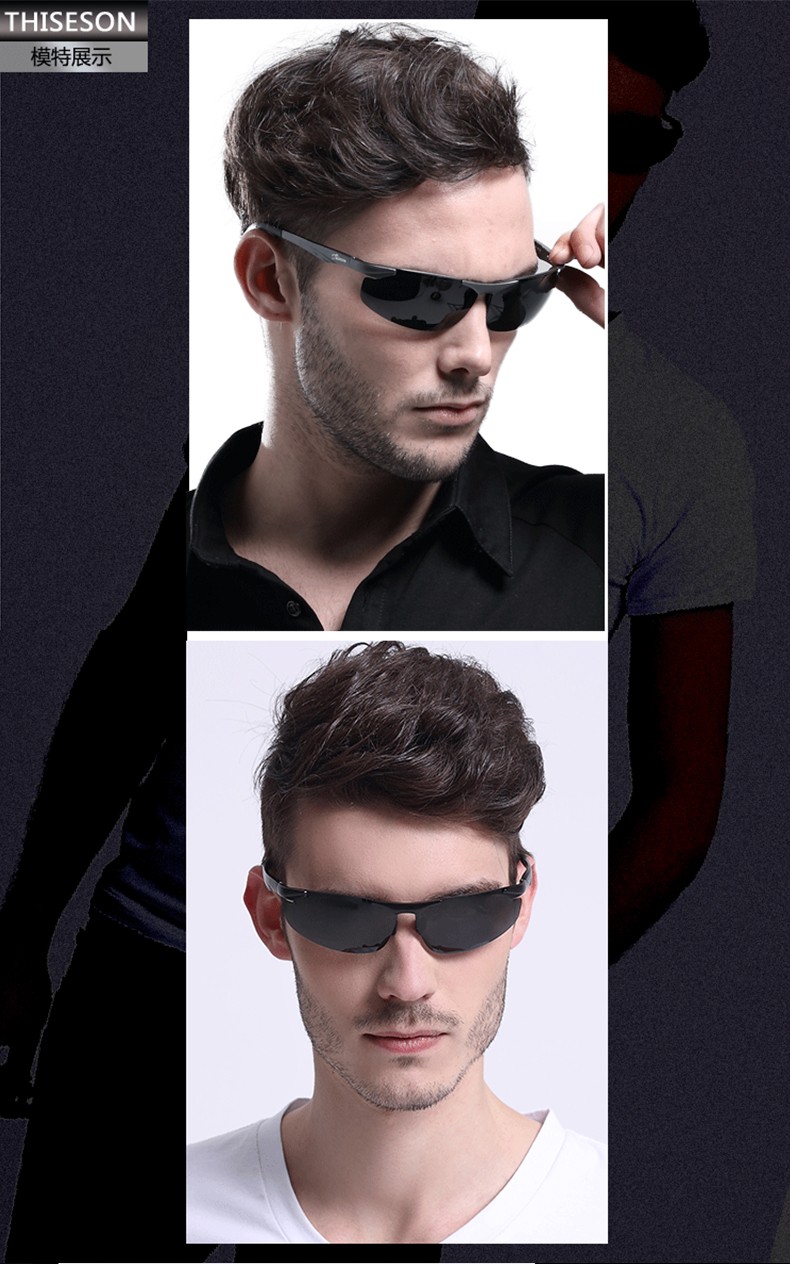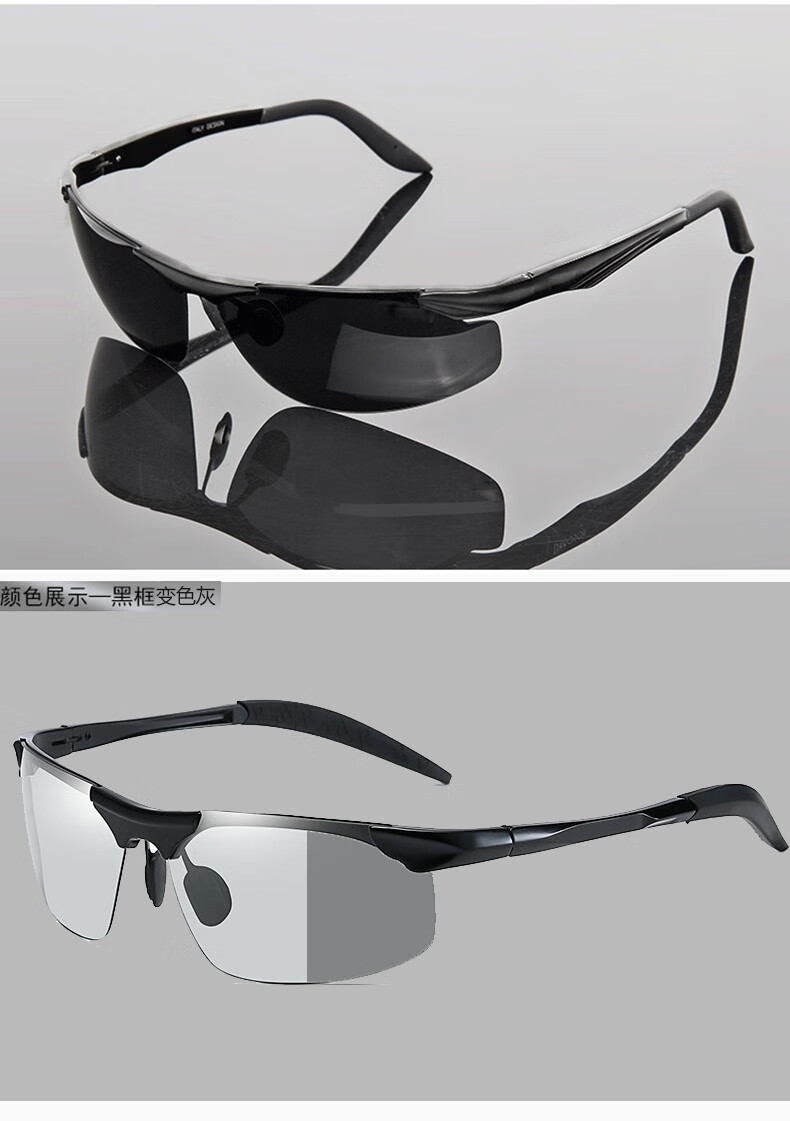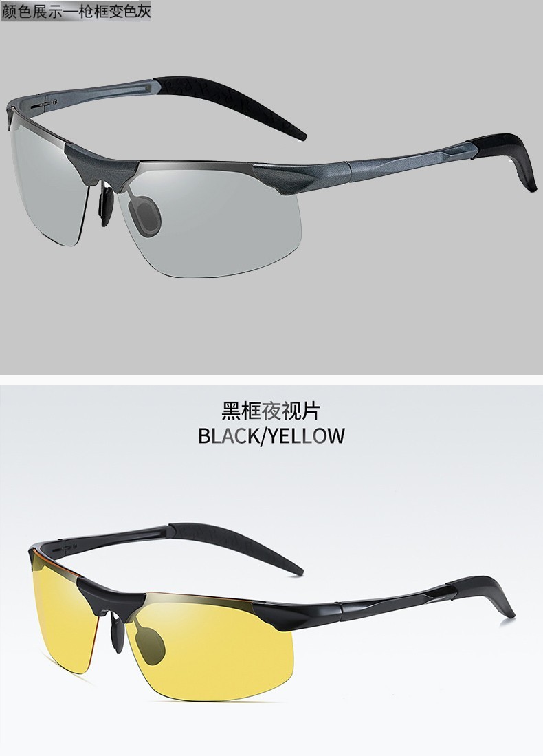 Gravel Sunglasses Men's Sports Polarized Pure Aluminum Magnesium Color-Changing Sunglasses Anti-Glare Driving Glasses Fishing Glasses Cycling Glasses Gun Frame Night Lenses