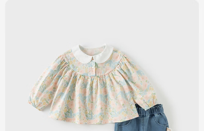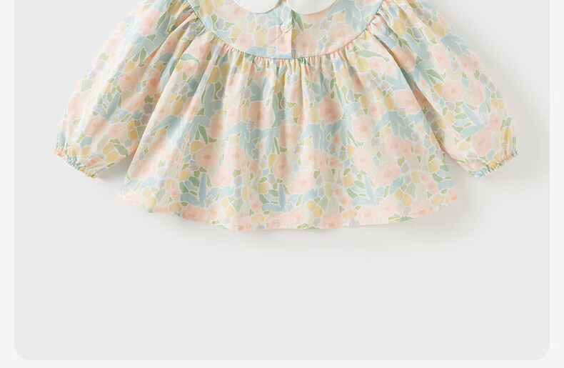 DAVE&BELLA pure cotton girls' shirts, baby girls' long-sleeved tops, spring clothes, new styles, children's shirts, children's clothes, flower print, in stock, 130 cm (recommended height 120-130cm)