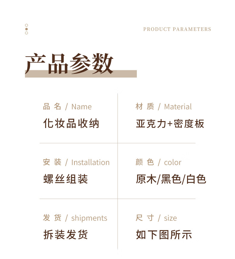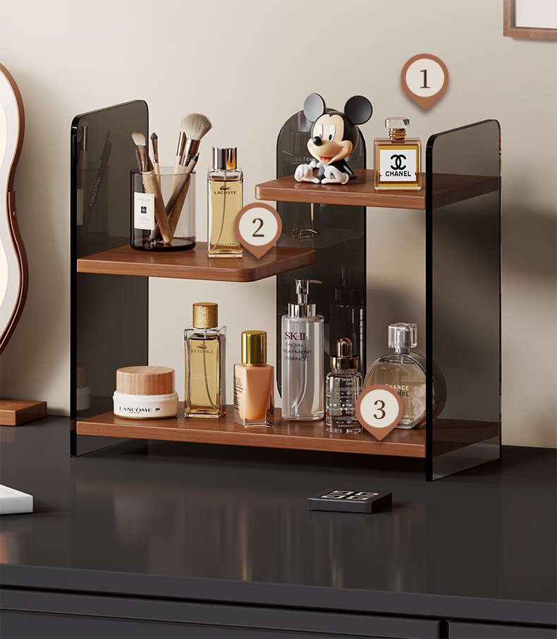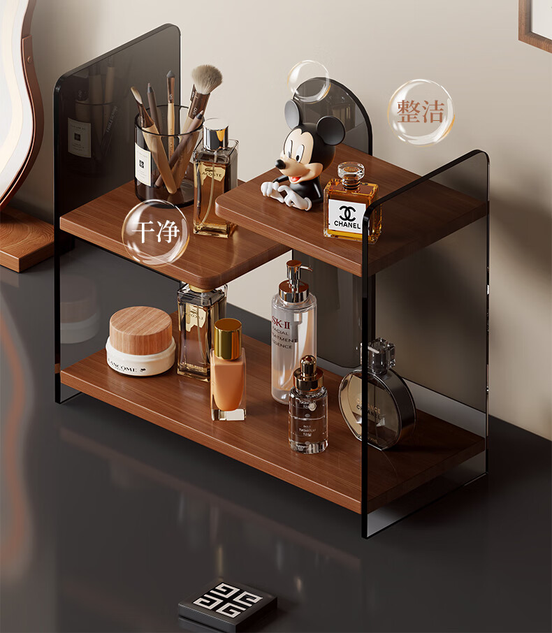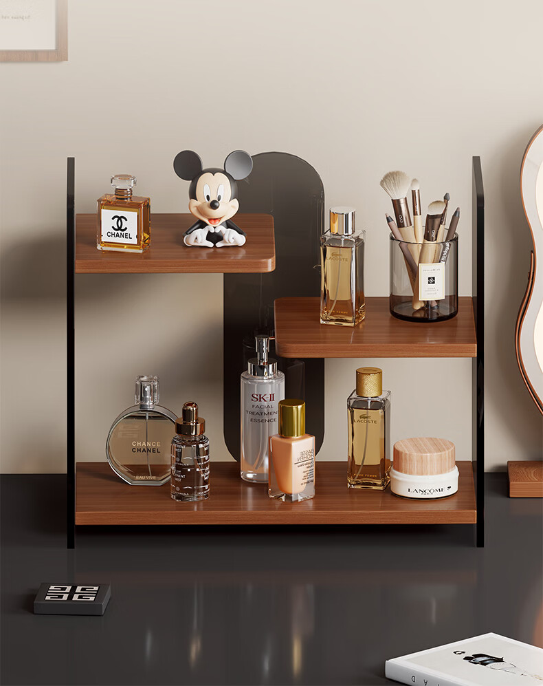 Desktop cosmetics high-end storage box bathroom sink multi-layer skin care product storage rack dressing table shelf Walnut-Black Tea