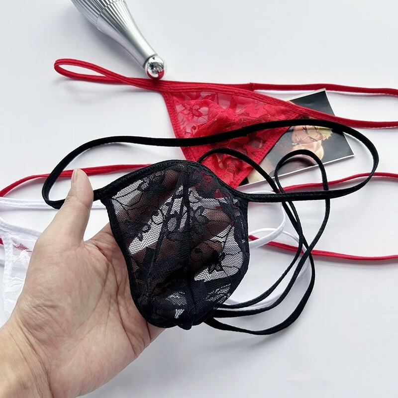 Unisex underwear for sleeping naked, sexy boys single butt, men's lace transparent butt lift thong inner black double butt