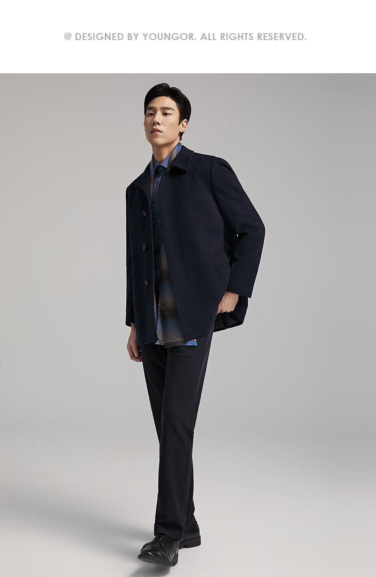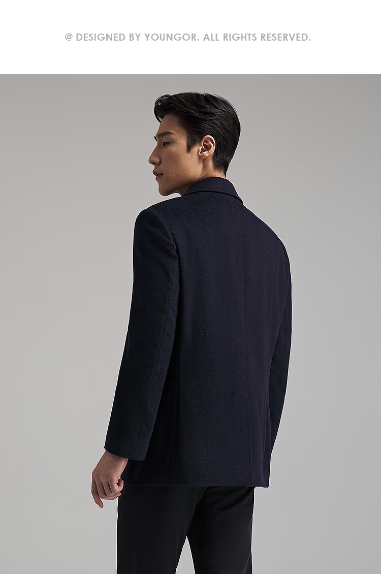 YOUNGOR Men's Coat Men's Wool Cashmere Blended Back Pants Business Coat Goose Down Liner Warm and Comfortable 2025 New Product Navy VYSY01N998FFA L 175/96A (Recommended 140-150 Jin Jin equals 0.5 kg)