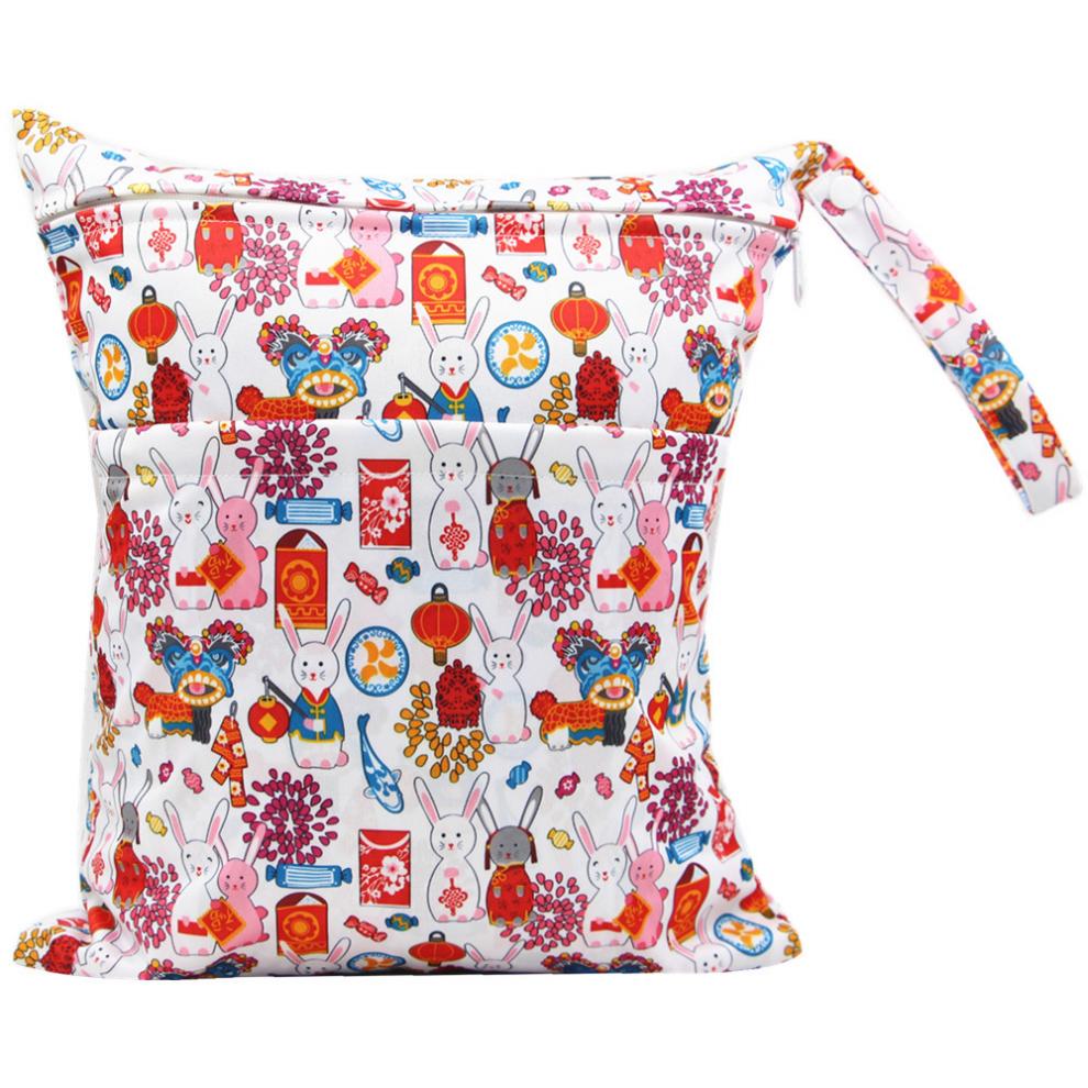 He Jiagong baby stroller hanging bag baby BB cart hanging bag diaper bag out storage bag clothes diaper portable storage bag pink double layer enlarged 36*30CM