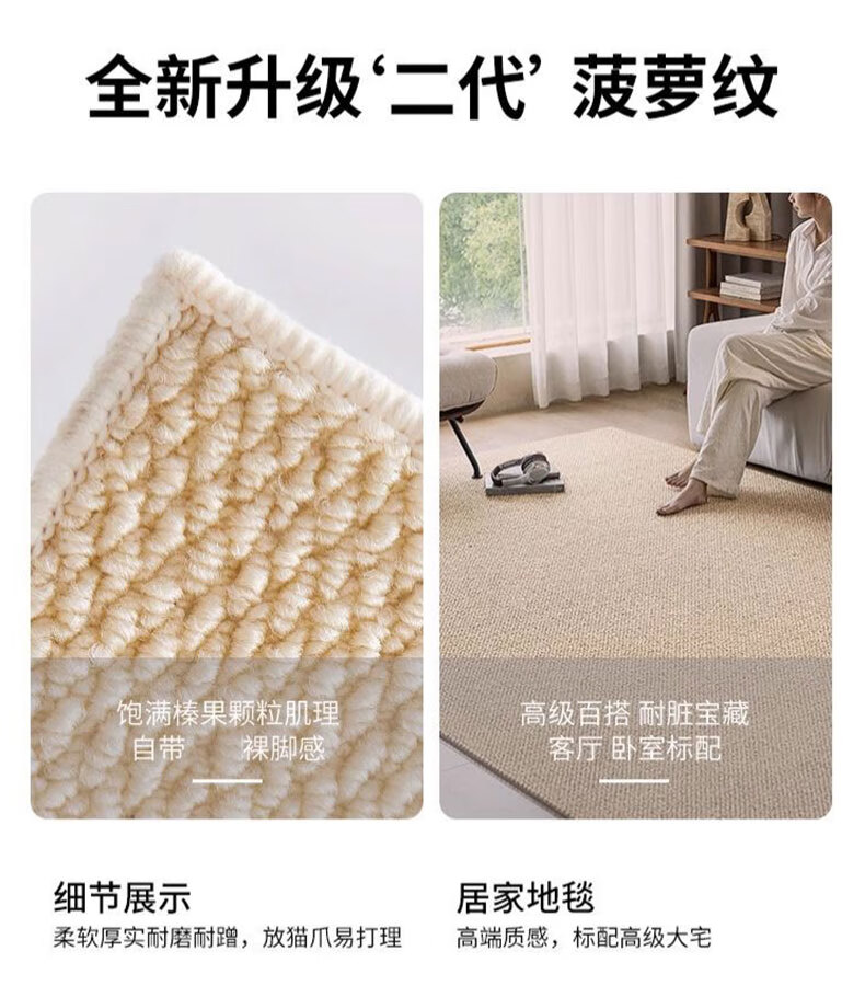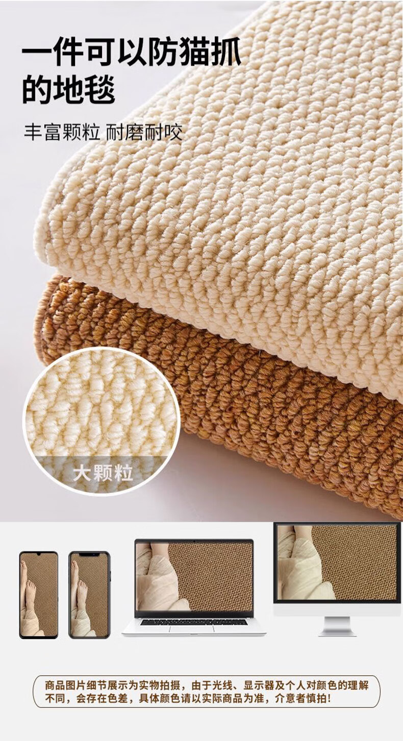 2025 new imitation sisal living room carpet scratch-resistant and stain-resistant pet carpet high-end light luxury home carpet camel 120cm*80cm 1 piece