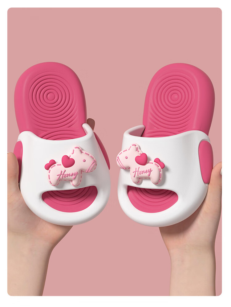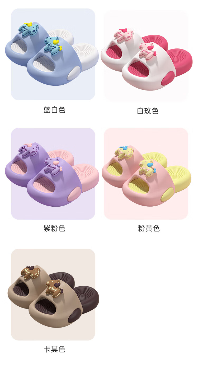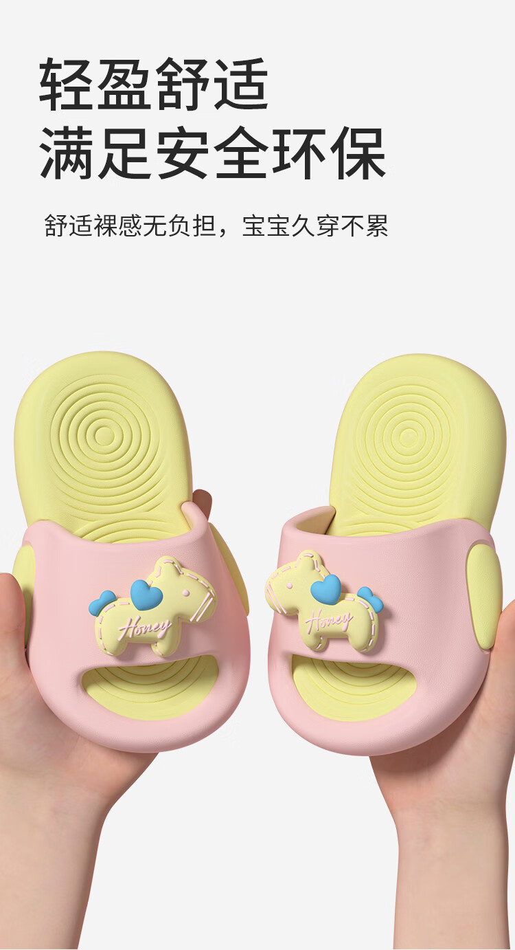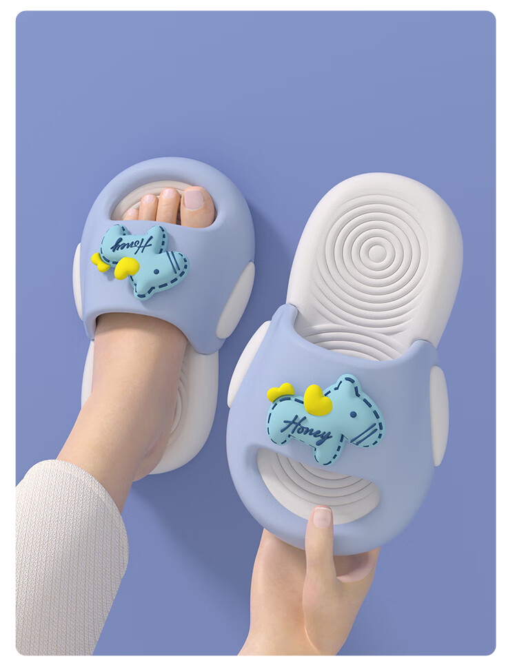 Gongmao cute cartoon pony children's slippers summer thick-soled indoor and outdoor breathable non-slip slippers for boys and girls blue and white 26-27 inner length 17cm