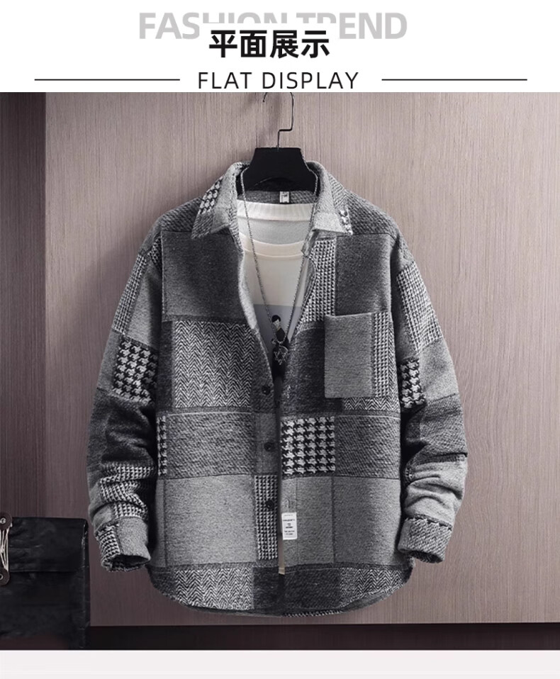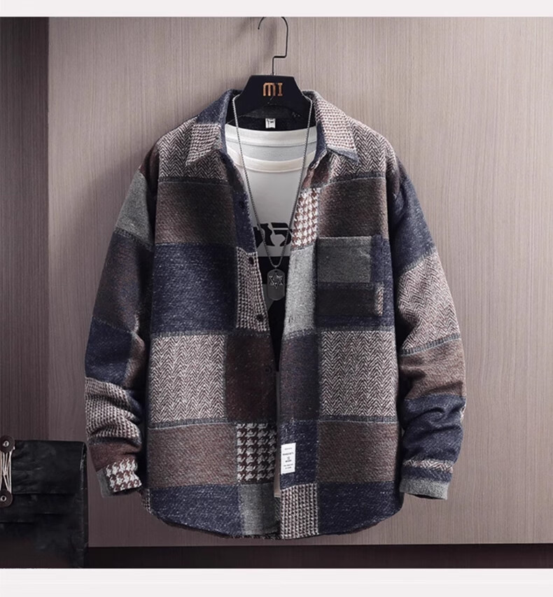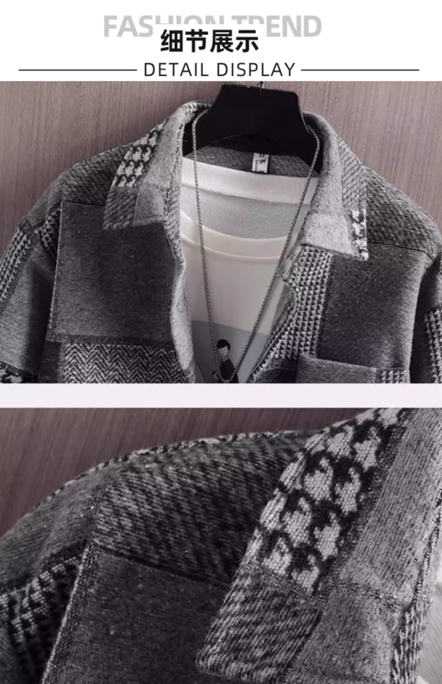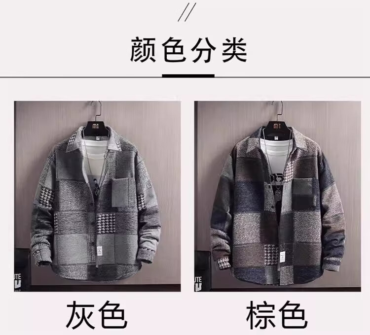 Kuraishi Kazuki plaid splicing lapel woolen jacket for men spring and autumn high-end handsome casual trendy jacket for men brown XL