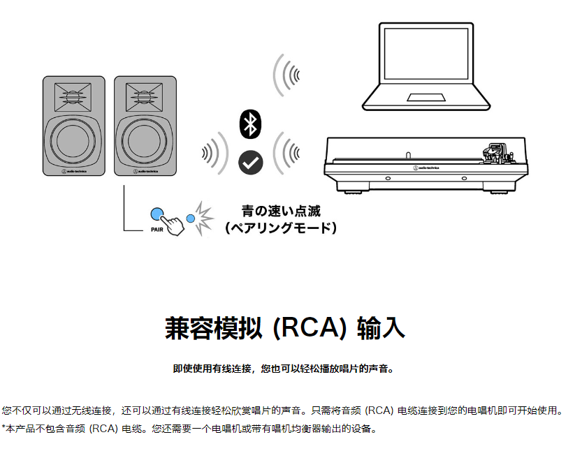 Audio-Technica record player AT-LP70X fully automatic belt-type vinyl record player record player retro fever gramophone record player Bluetooth version AT-LP70XBT WS white silver + cleaning + turntable, free RCA lotus cable