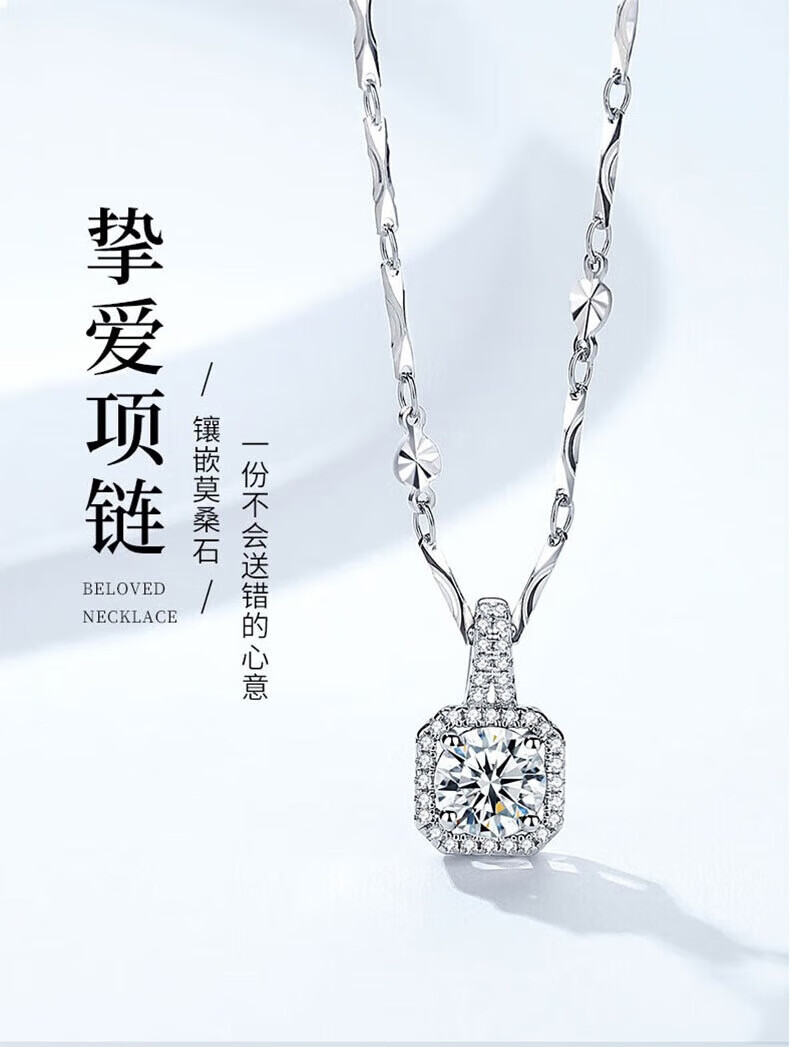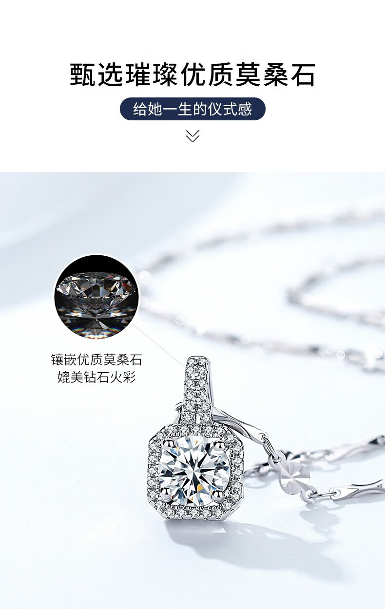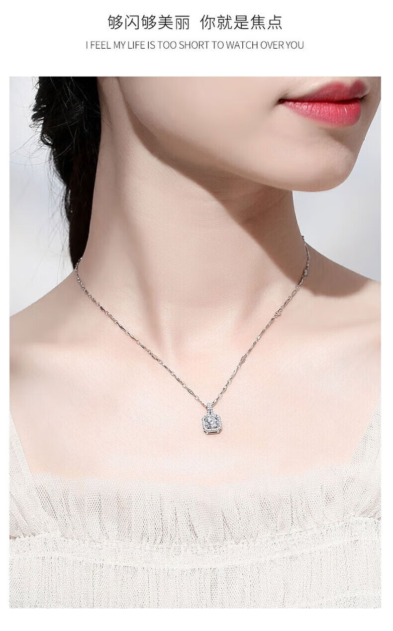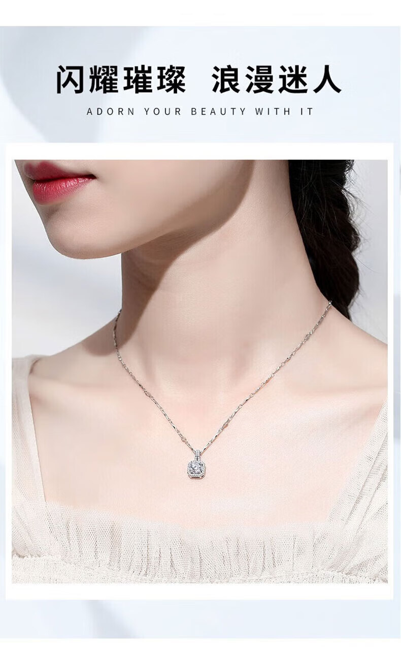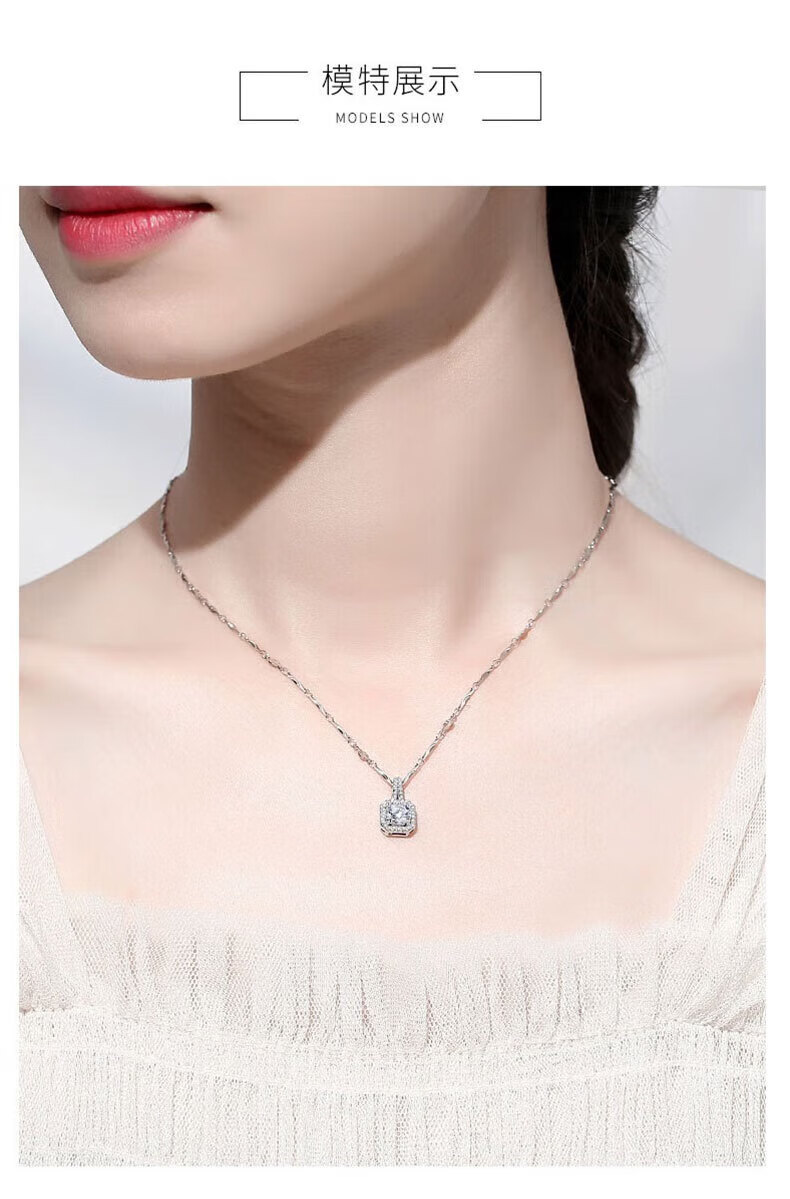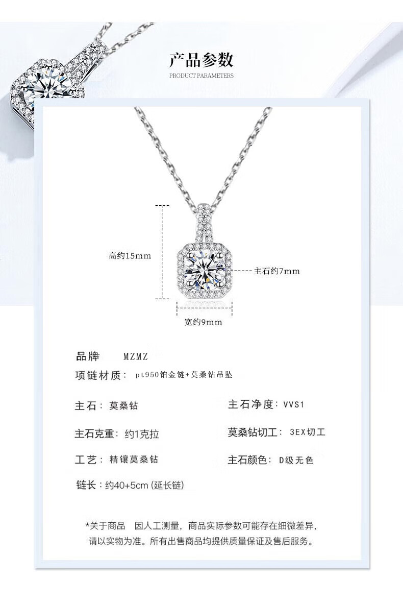 MZMZ platinum necklace for women pt950 flash platinum clavicle chain with moissanite decoration for Valentine's Day birthday gift for girlfriend PT950 platinum 0-word chain + sugar cube moissanite necklace