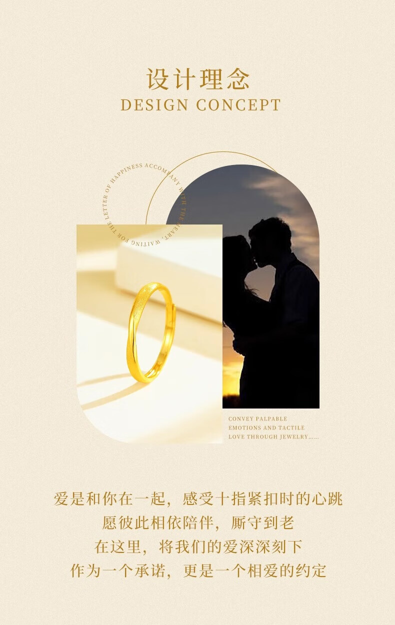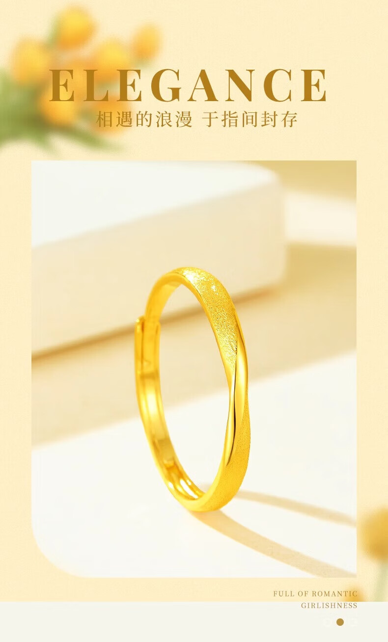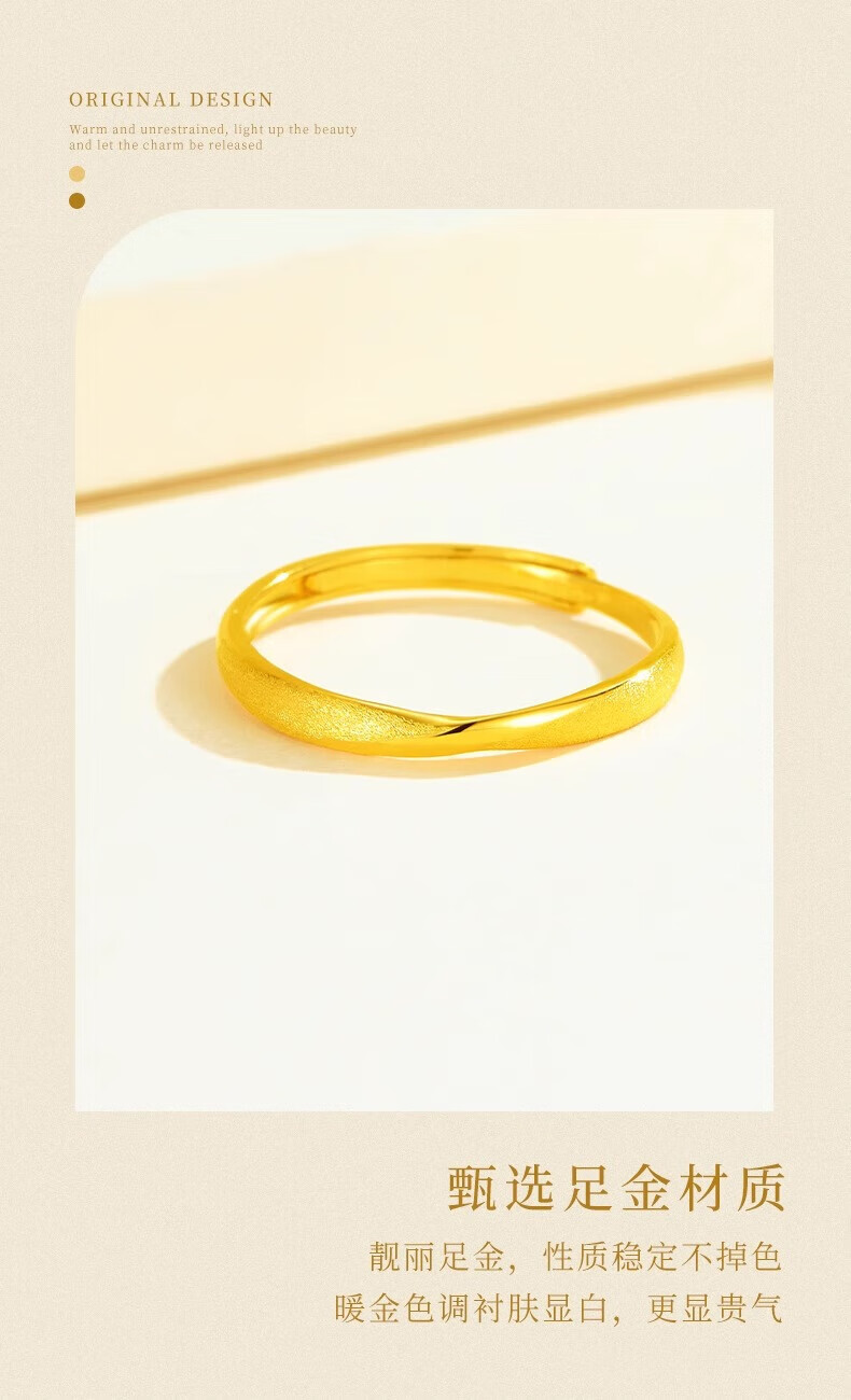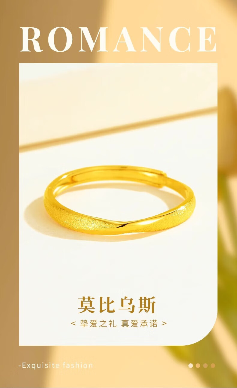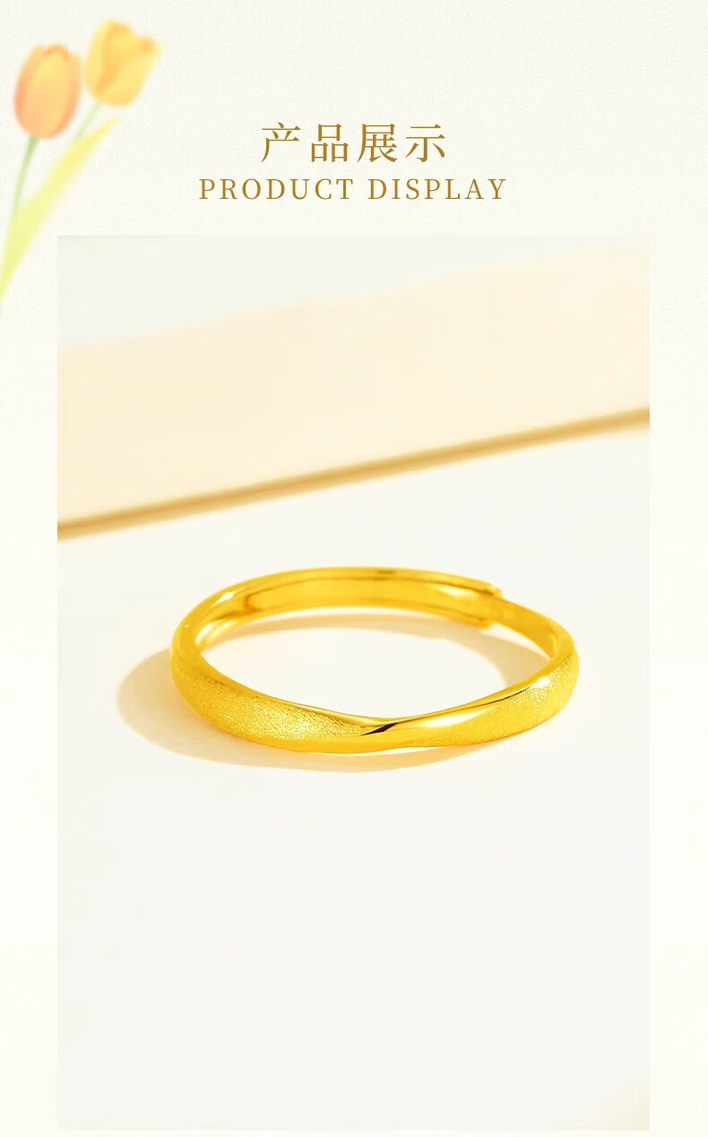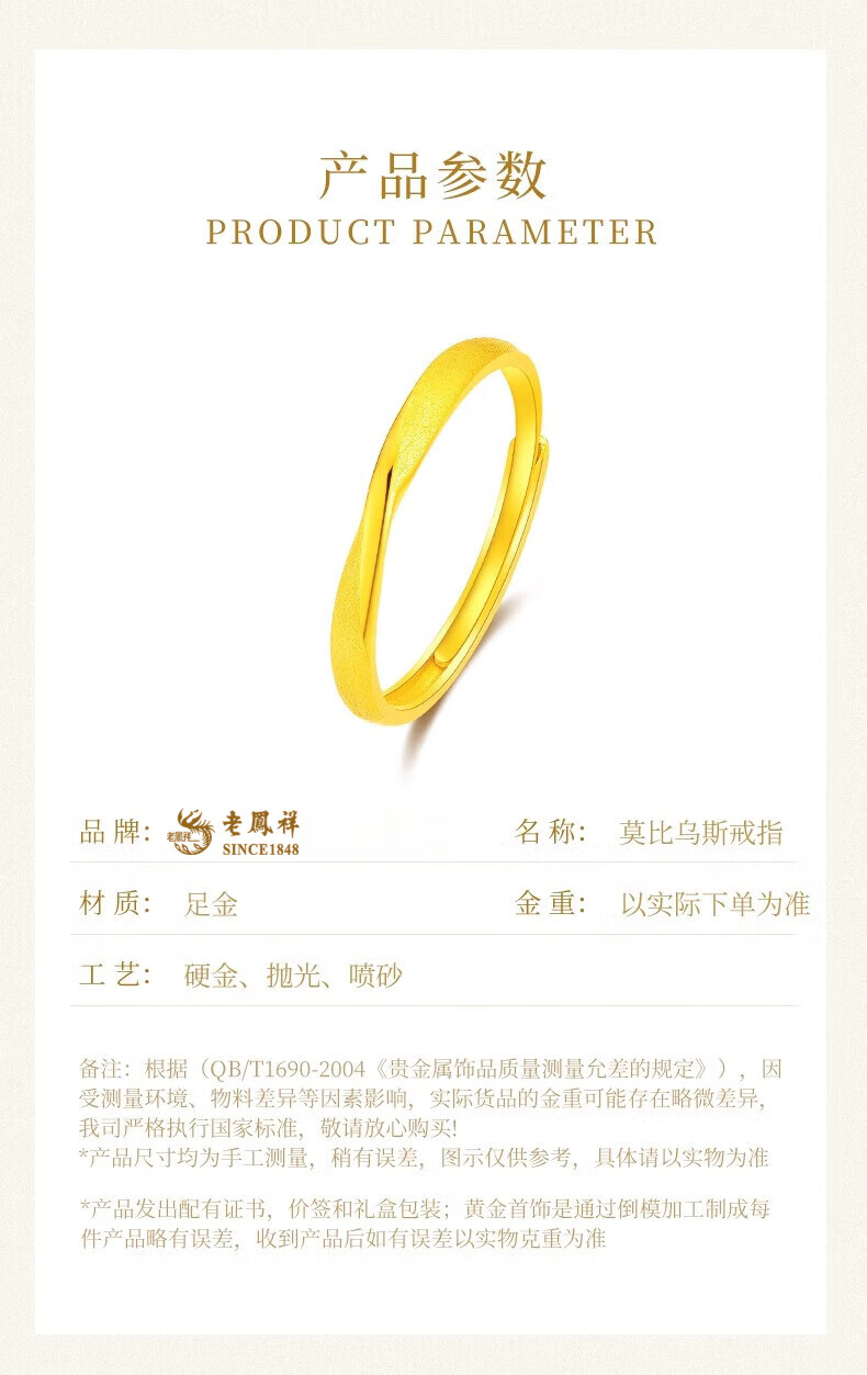 Lao Fengxiang gold ring, pure gold Möbius ring, ring pair, proposal, engagement, wedding gift for girls and wives, pure gold Möbius ring - about 1.8g, brand gift box