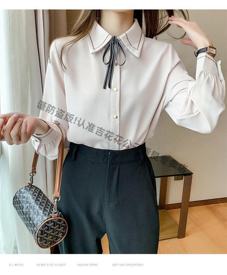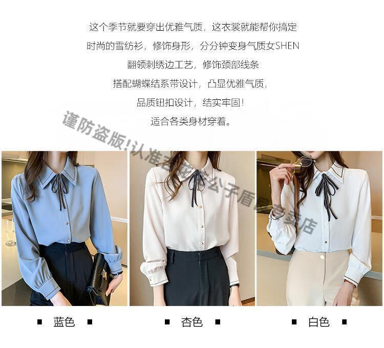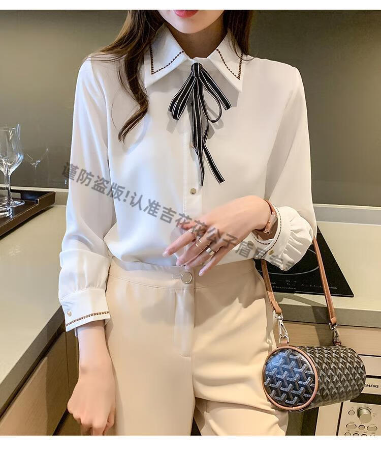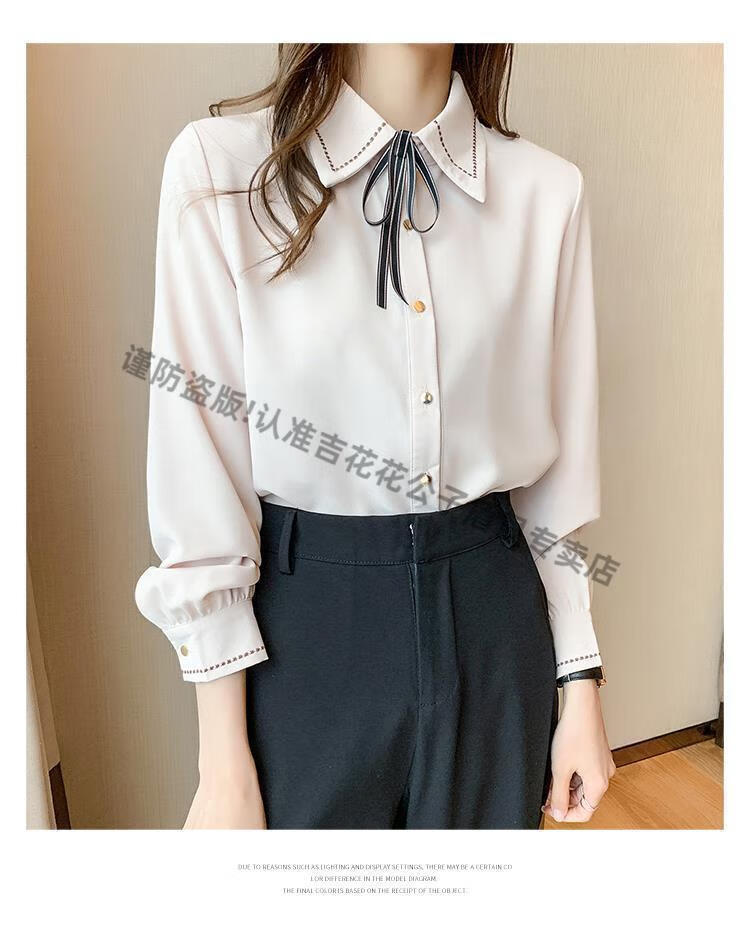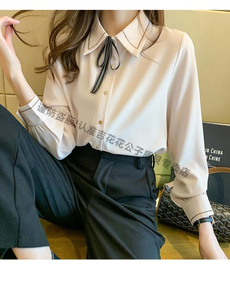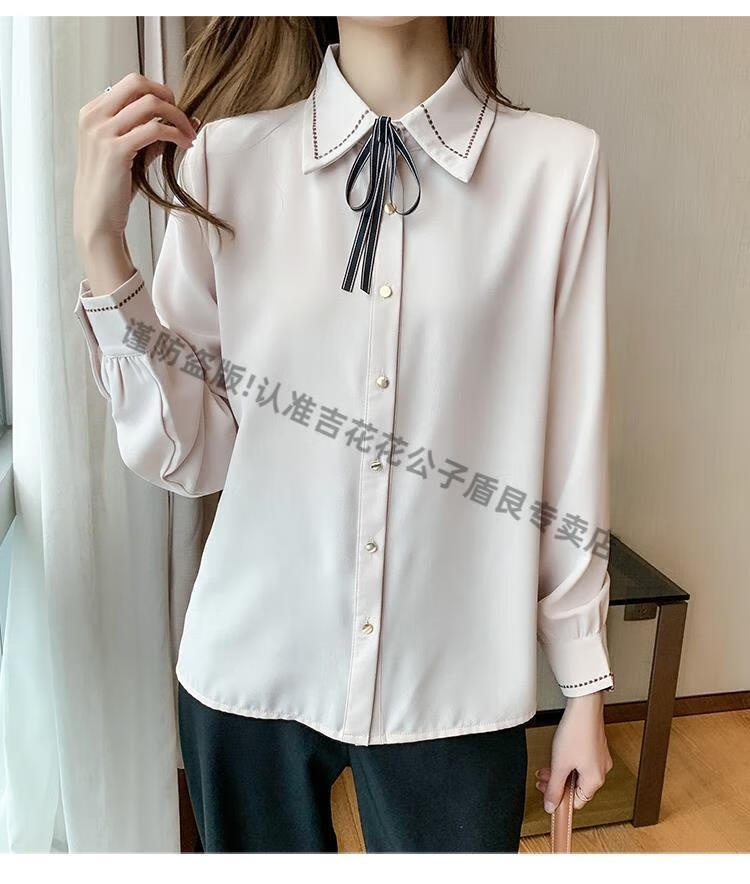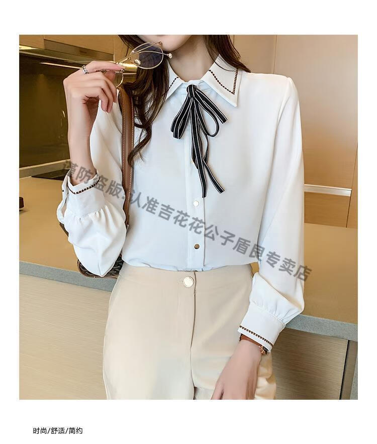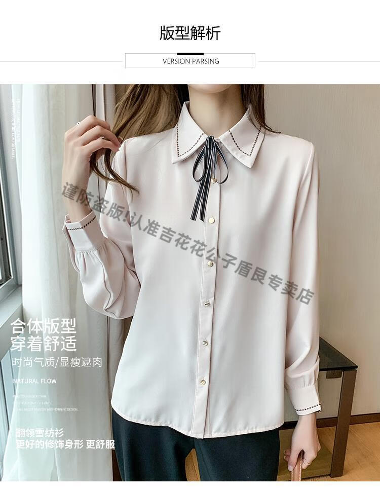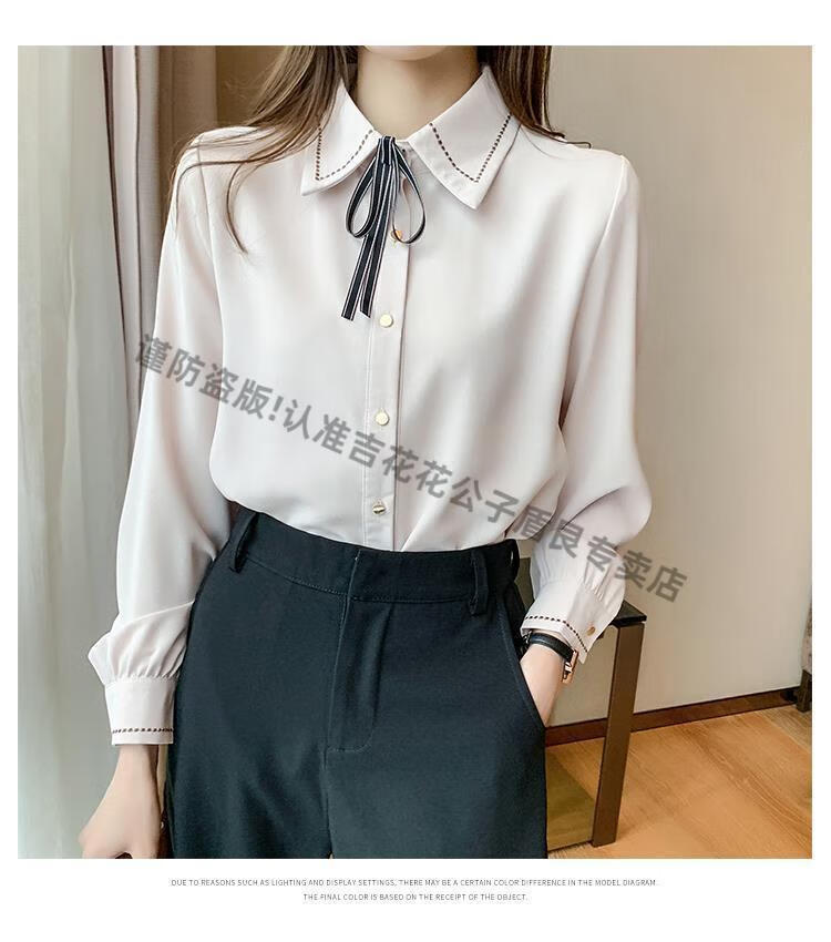 Playboy (PLAYBOY) autumn new chiffon shirt women's top bow tie lapel versatile polo collar shirt long-sleeved bottoming shirt blue XL 125-140Jin Jin equals 0.5 kg