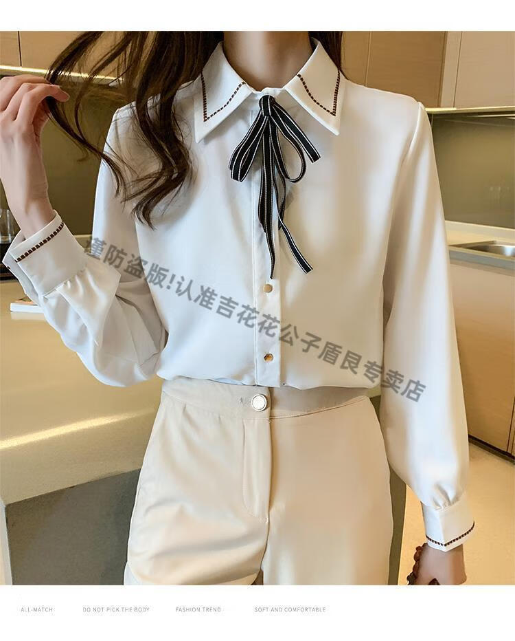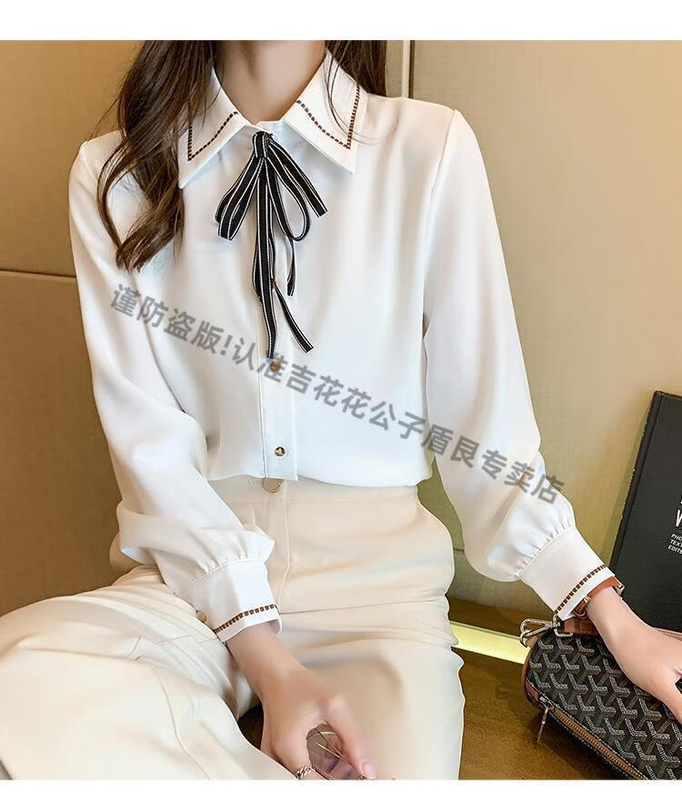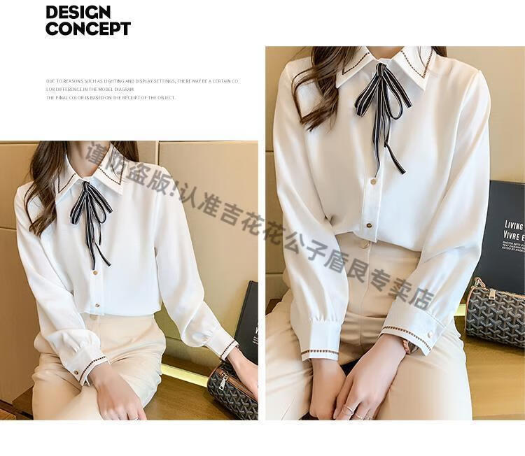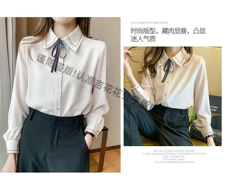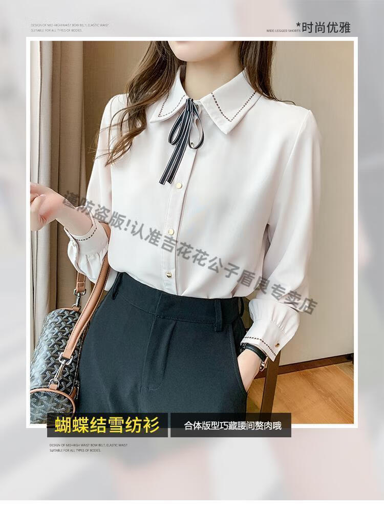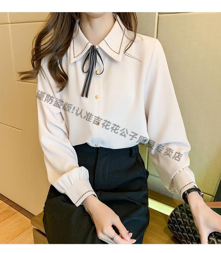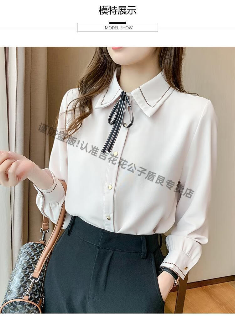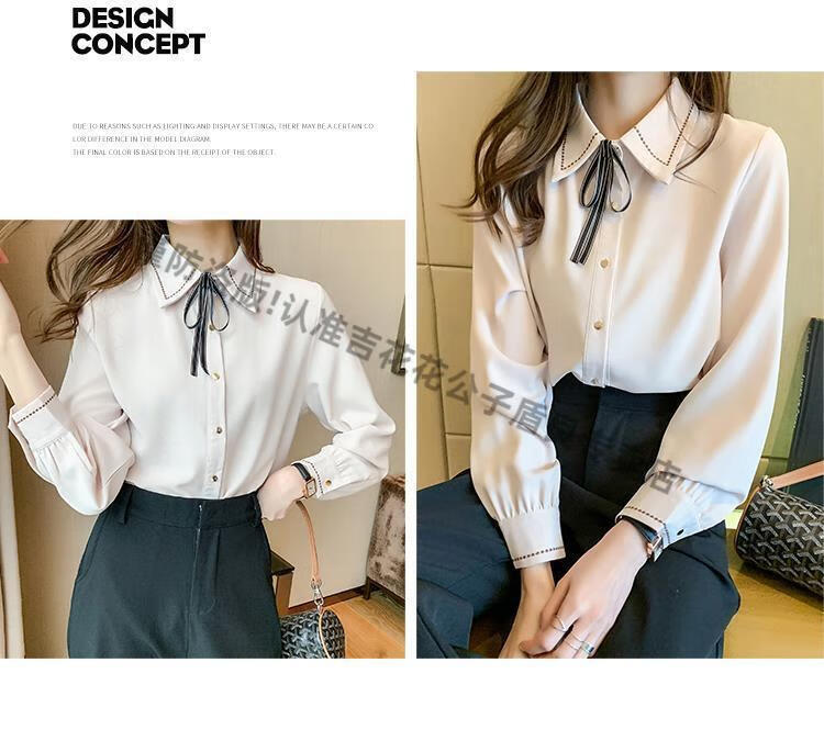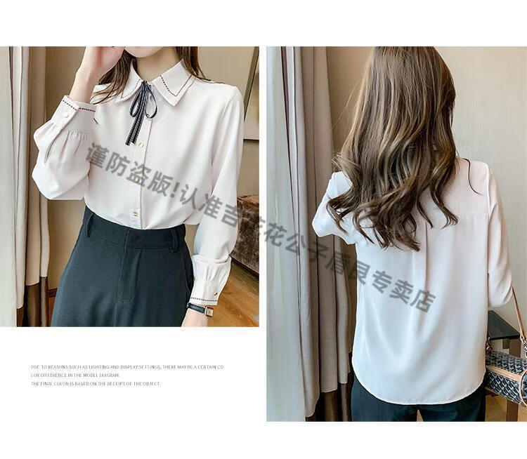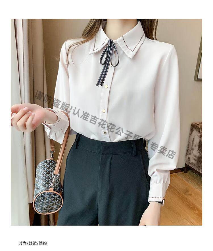Playboy (PLAYBOY) autumn new chiffon shirt women's top bow tie lapel versatile polo collar shirt long-sleeved bottoming shirt blue XL 125-140Jin Jin equals 0.5 kg