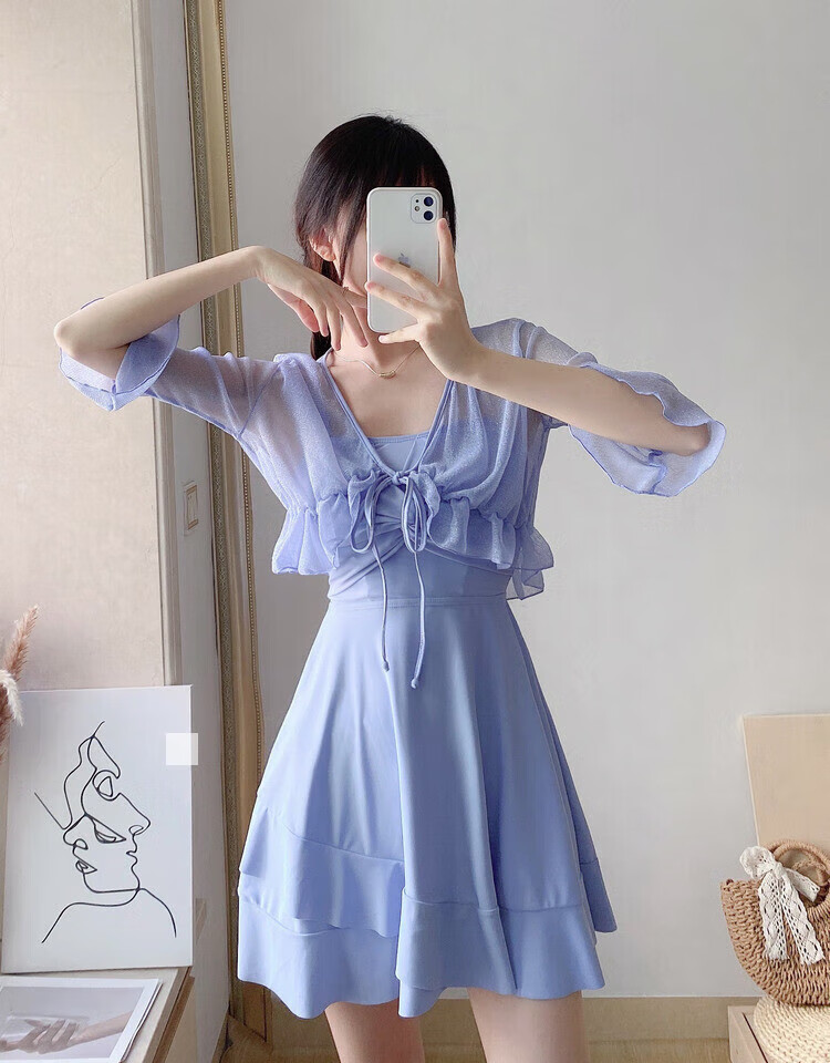 Jin Bingsheng swimsuit women's summer sexy one-piece fairy swimsuit covering belly and slimming seaside vacation sun protection suit large size swimsuit blue and purple swimsuit cover-up + swimsuit + bottoms one size fits all recommended 75-120 Jin Jin is equal to 0.5 kg