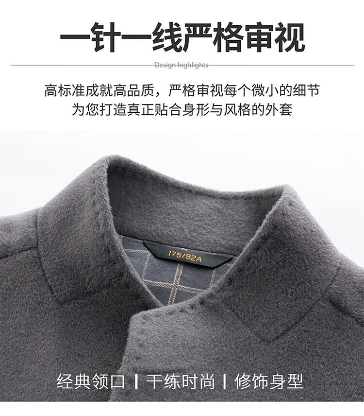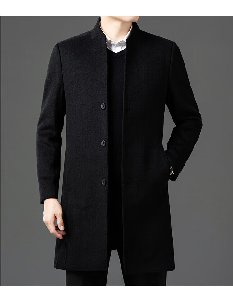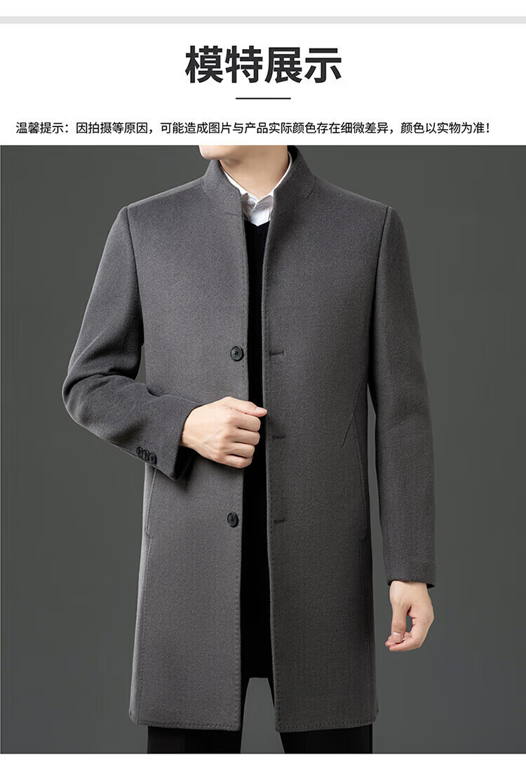 Lilan Men's Goose Down Liner Double-sided Cashmere Coat Men's Medium Long Stand Collar Wool Woolen Coat Thickened Black/Removable Goose Down Liner 3XL 190 Recommended 165-180 Jin Jin equals 0.5 kg