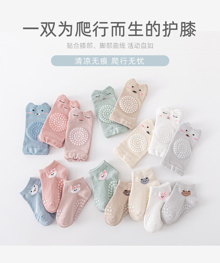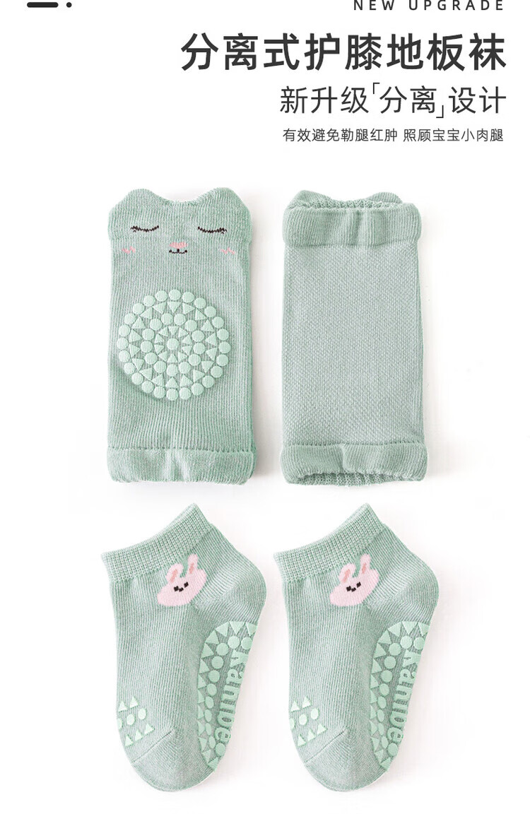 Crawling artifact Baby crawling artifact thin baby learning to walk knee pads non-slip toddler spring and autumn floor socks 2 pairs (green/light purple) 1-3 years old M size suitable for feet 12-14cm long