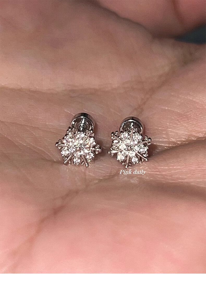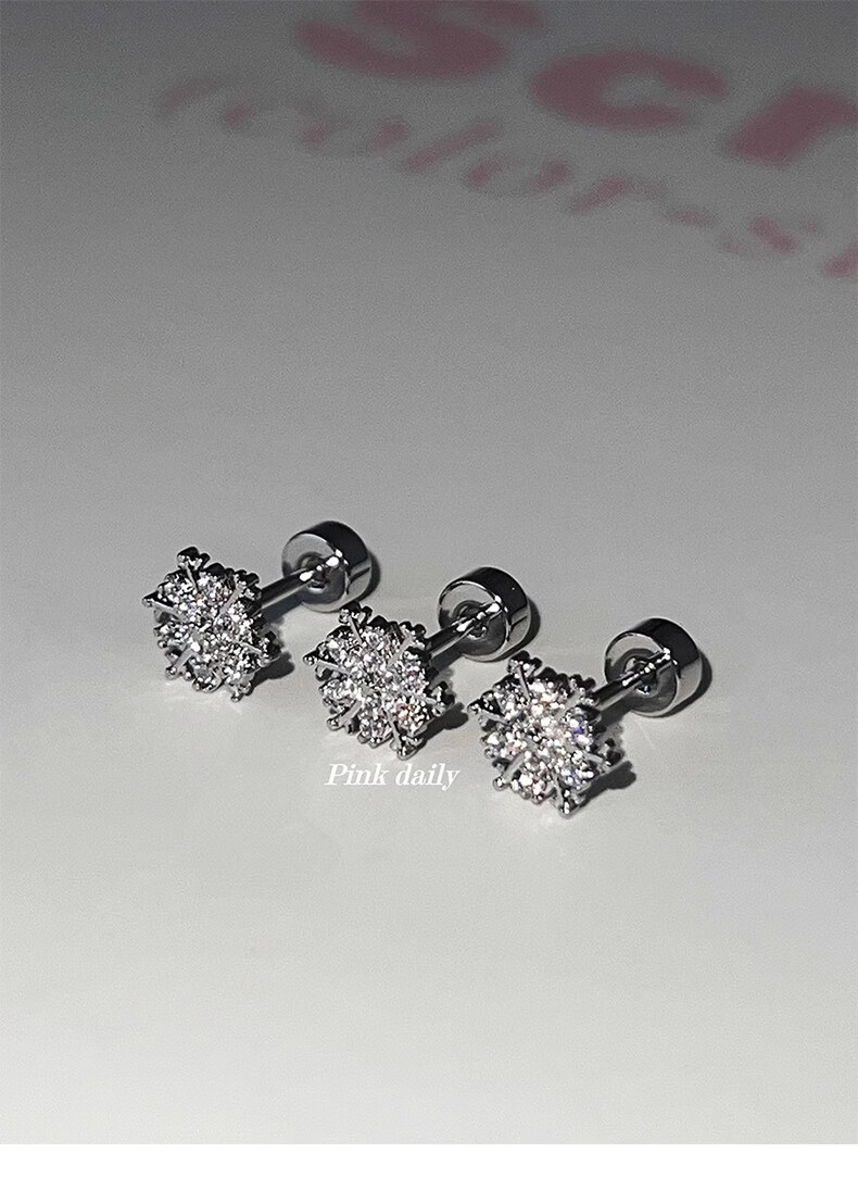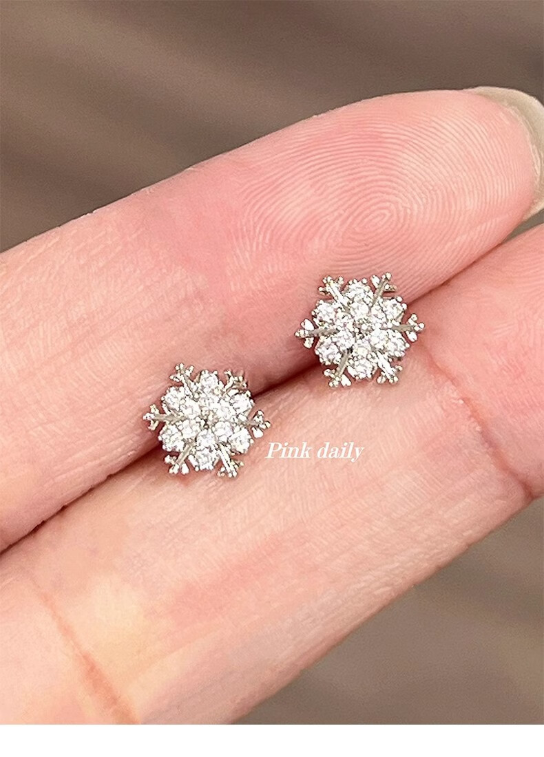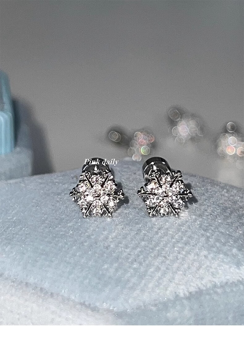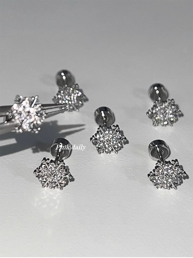 RSRDDY Old Phoenix Winter Snowflake Zircon Earrings for Women Sterling Silver 9999 Explosive Ear Bone Nails and Cochlear Nails New Style Sleeping Winter Snowflake Zircon Earrings Pair