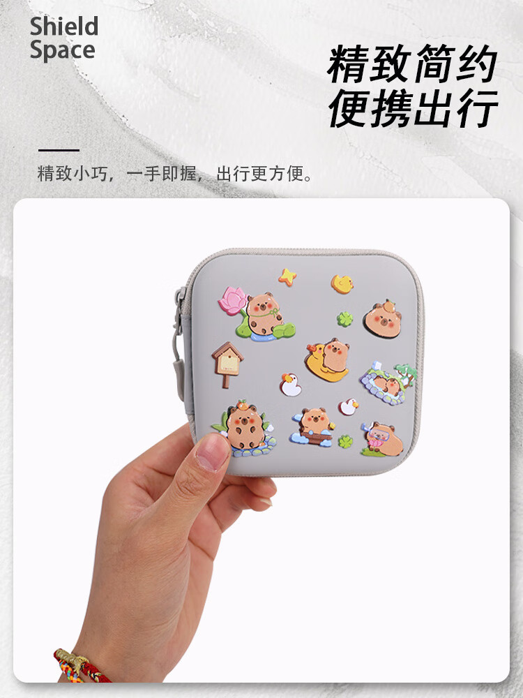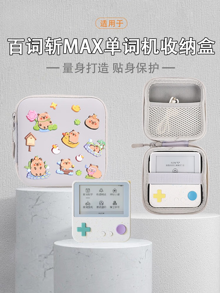 Jingmengyuan is suitable for Baicizhan MAX word machine storage bag, hard-shell waterproof and shockproof portable storage bag, PU leather waterproof multi-purpose portable multi-functional storage box small bag with PU gray storage box + panda index sticker + high-definition film