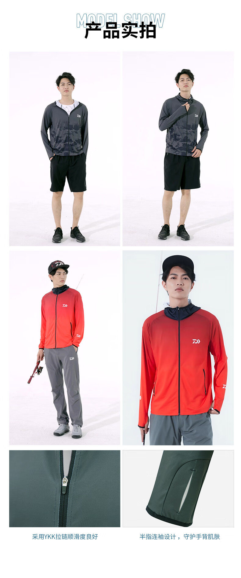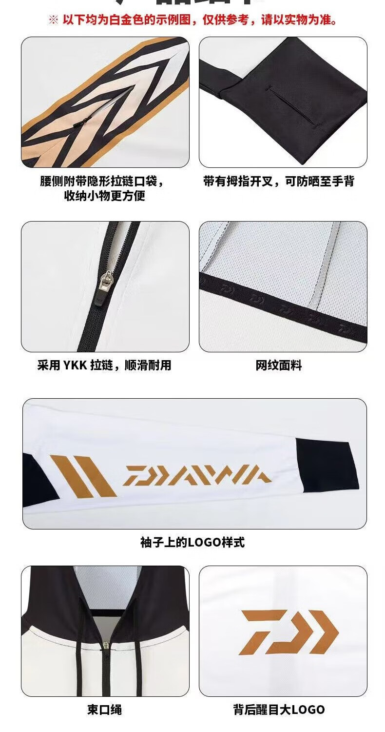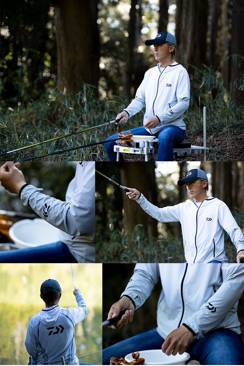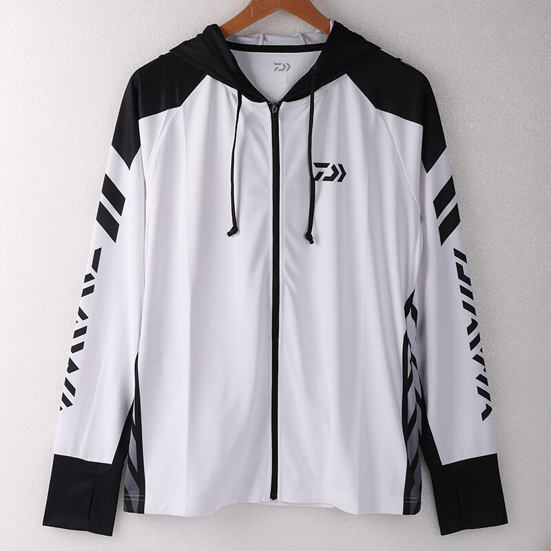 DAIWADAIWA Dayiwa sun protection clothing fishing clothing hoodie ice silk fishing men's sweat-absorbent quick-drying clothing Luya clothing new white and black M